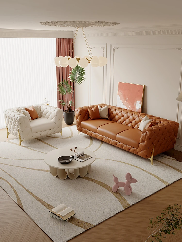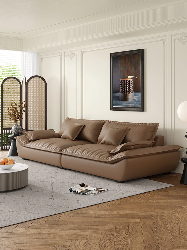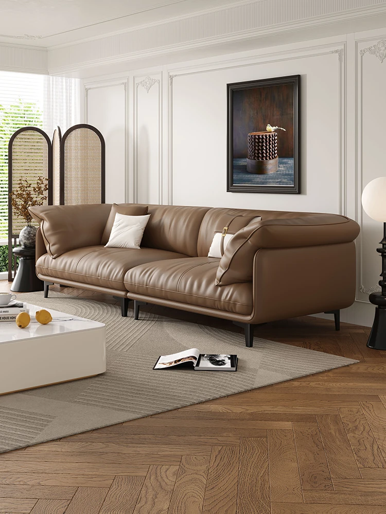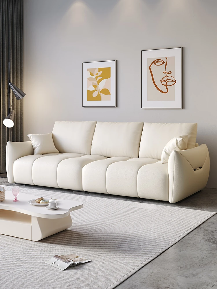 イタリアンミニマリズム防水キャットグラブ皮革ソファ—現代的なシンプルスタイル、コンパクトな小型住宅にぴったり、三人掛け・四人掛け対応で軽やかなラグジュアリー感を演出!