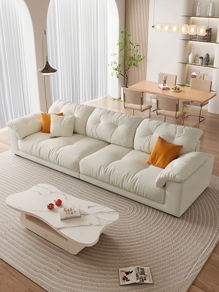 フレンチクリーム風の猫爪フリース生地クラウドソファ|モダンシンプルな羽毛コットンマシュマロデザイン|小型リビングにぴったりなストレートスタイル!快適さとスタイルを両立した極上の居心地を体験してください。