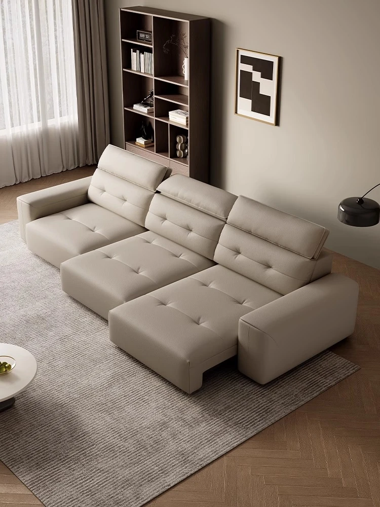 イタリアンミニマルデザインの多機能本革ソファ - 電動調整可能な3人掛けファーストクラスソファセットで、リビングをスタイリッシュに演出!快適さと機能性を兼ね備えた贅沢な空間をお楽しみください。