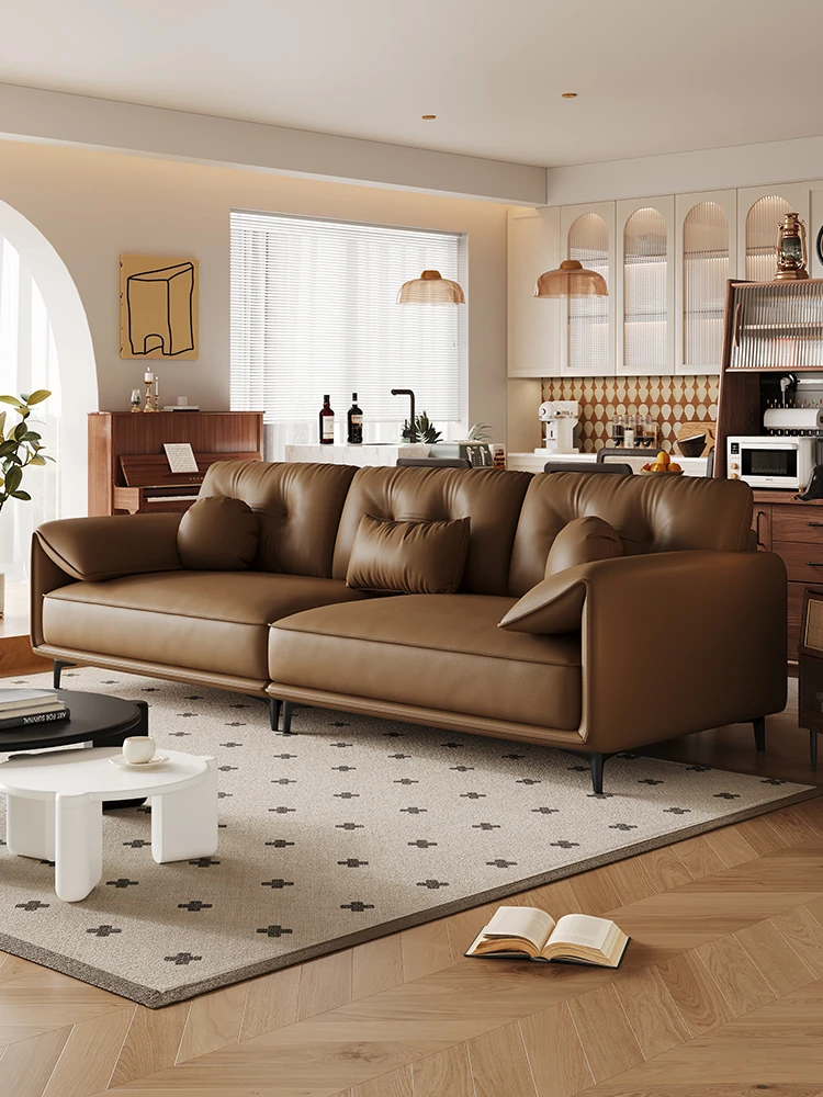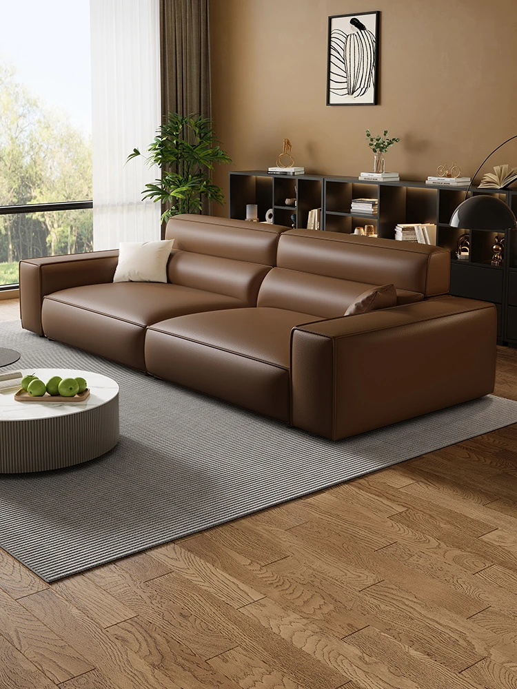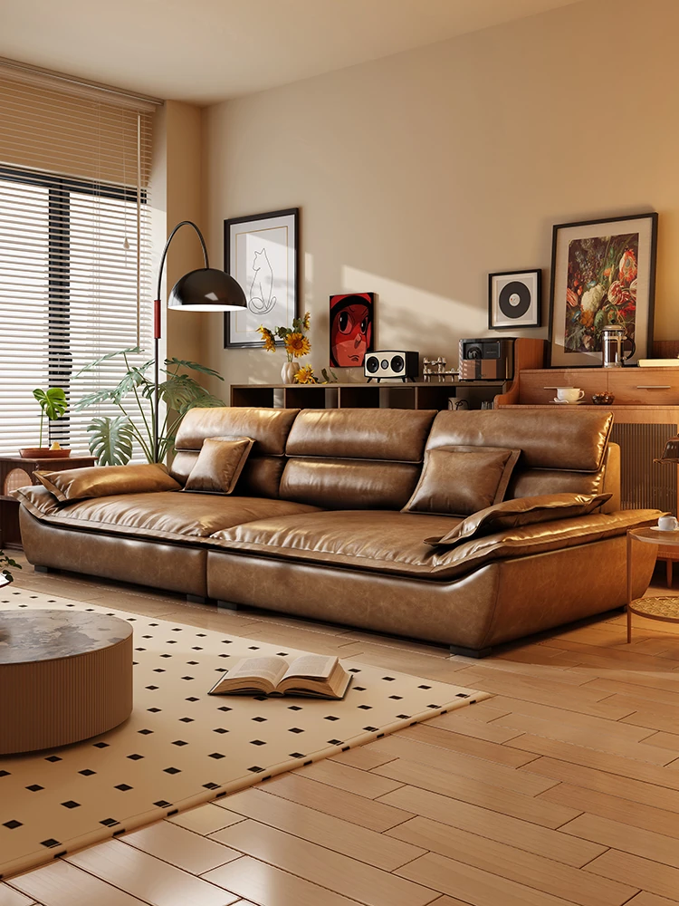 2025年新作!レトロオイルワックスレザー大黒牛ソファー - イタリアンラグジュアリー、ヴィンテージ感漂うブラウン本革ソファー。リビングにぴったりのスタイリッシュな直線デザイン。あなたの空間を格上げする一品!