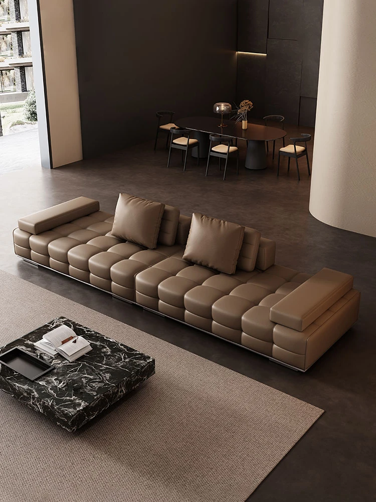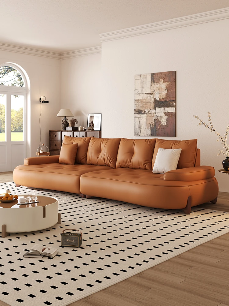 2025年新作!イタリアンミニマリズムの本革トーフブロックソファ - レトロスタイルの小型リビング向け、軽やかな贅沢を楽しむ直線デザインソファ!