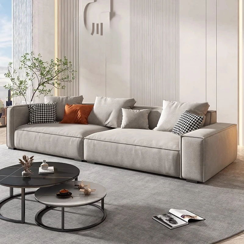 イタリアンミニマリズムの肌触り抜群なスエードソファ、豆腐型デザインで小型リビングにも最適!シンプルでスタイリッシュ、3〜4人掛けの直線的なスタイルで、居心地の良い空間を演出します。