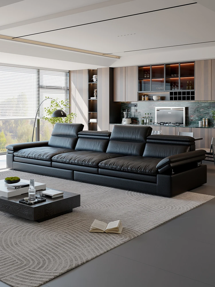 イタリアンミニマルデザインの本革調整可能なハイバックソファ | リビングにぴったりのラグジュアリーな直線的デザイン | 大小様々な空間にフィットする広々とした座面で、快適なひとときをお届けします。