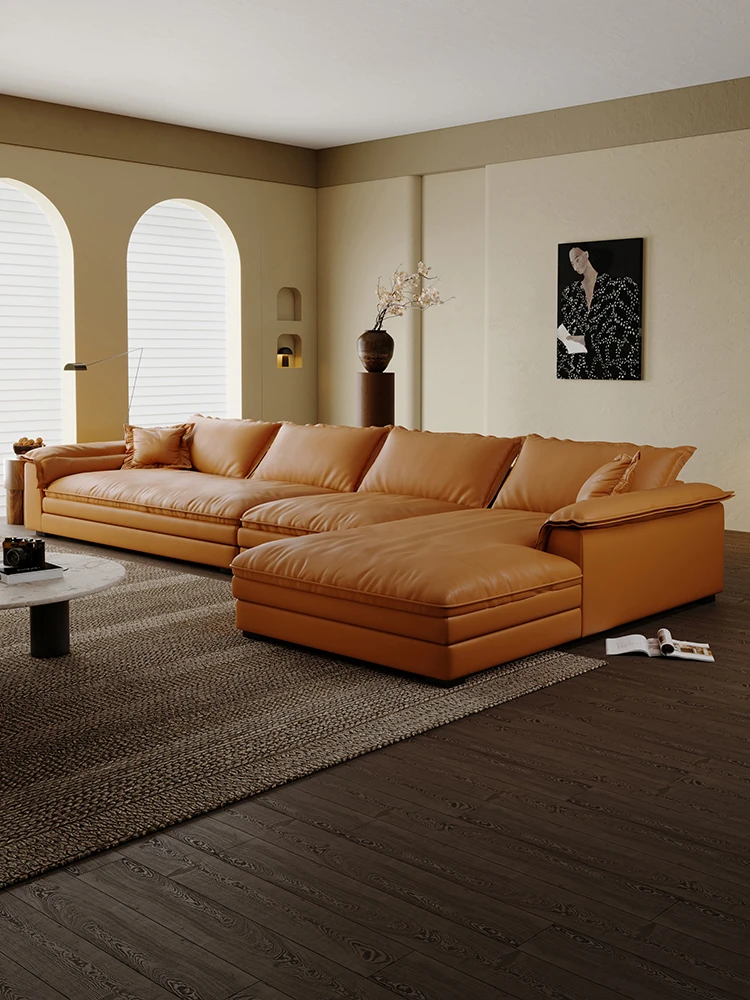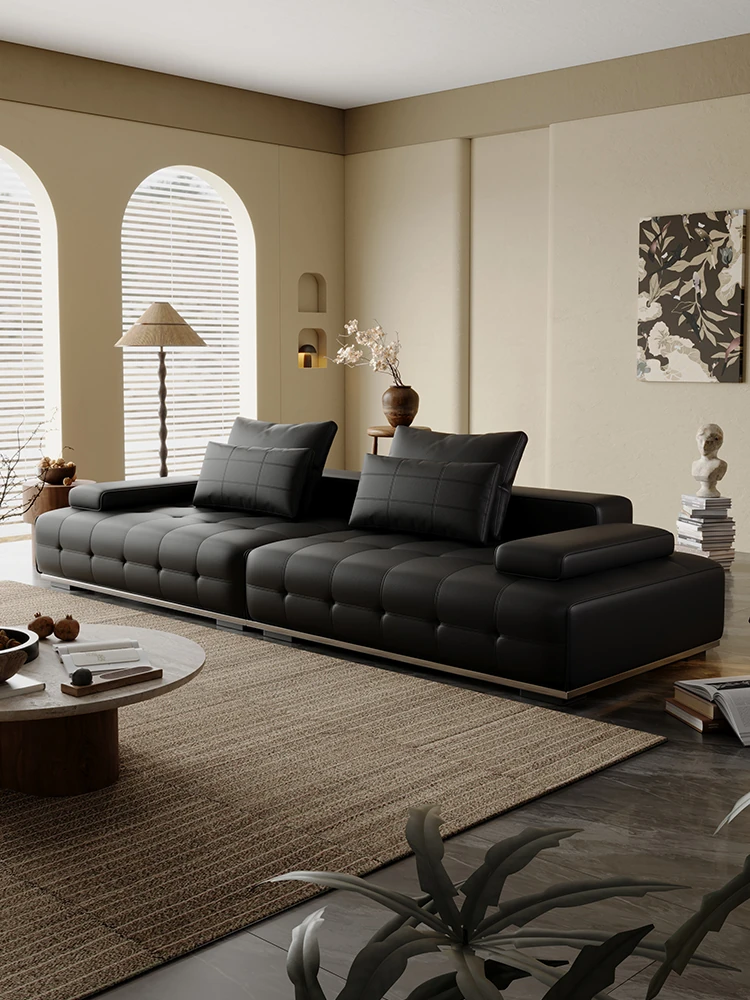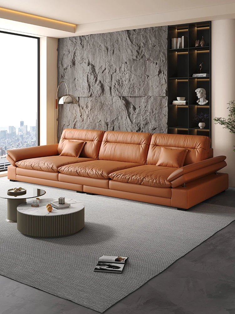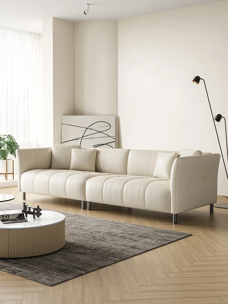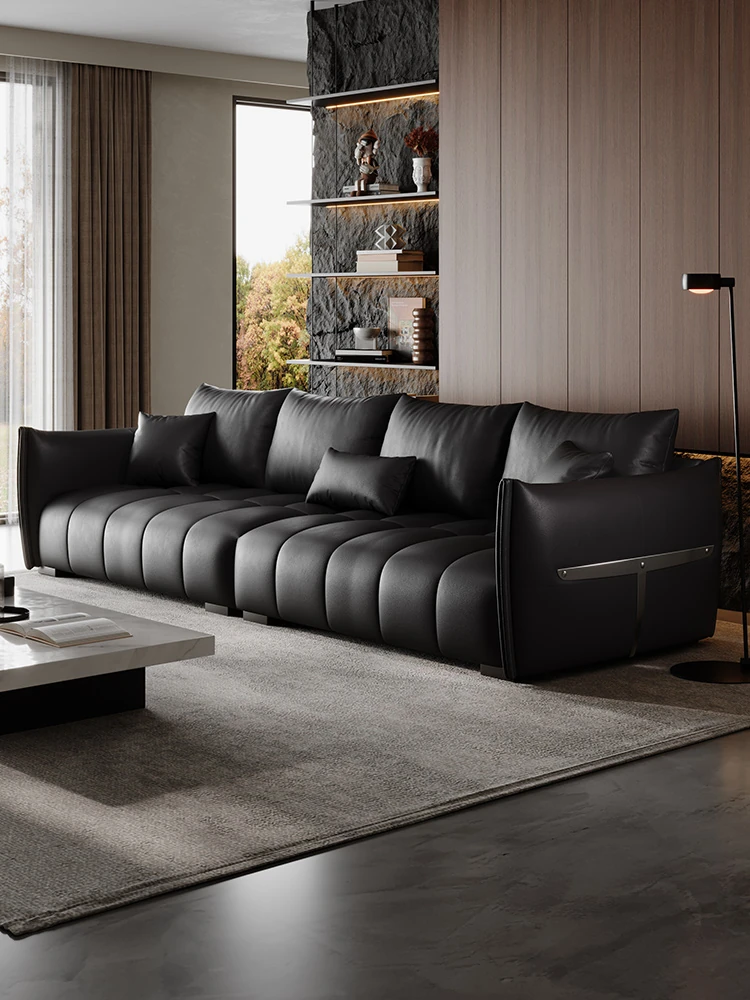 イタリアンミニマリズムのローレンス直線デザイン、本革製ソファ - リビングルームや別荘に最適な広々とした大空間用デザイナー皮革ソファ。高級感溢れるスタイルで、あなたの空間を格上げします!