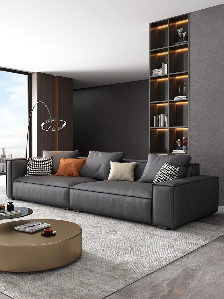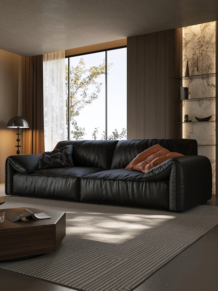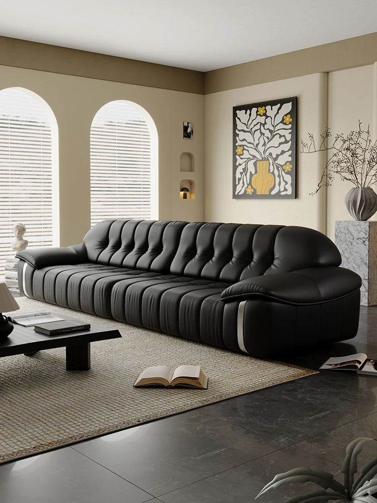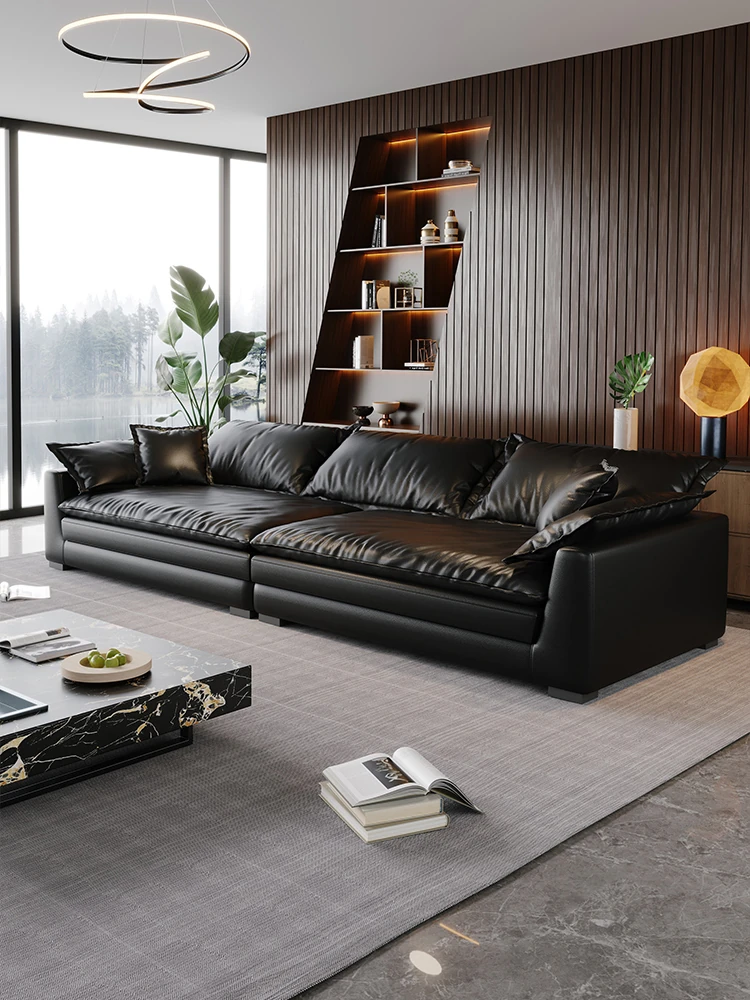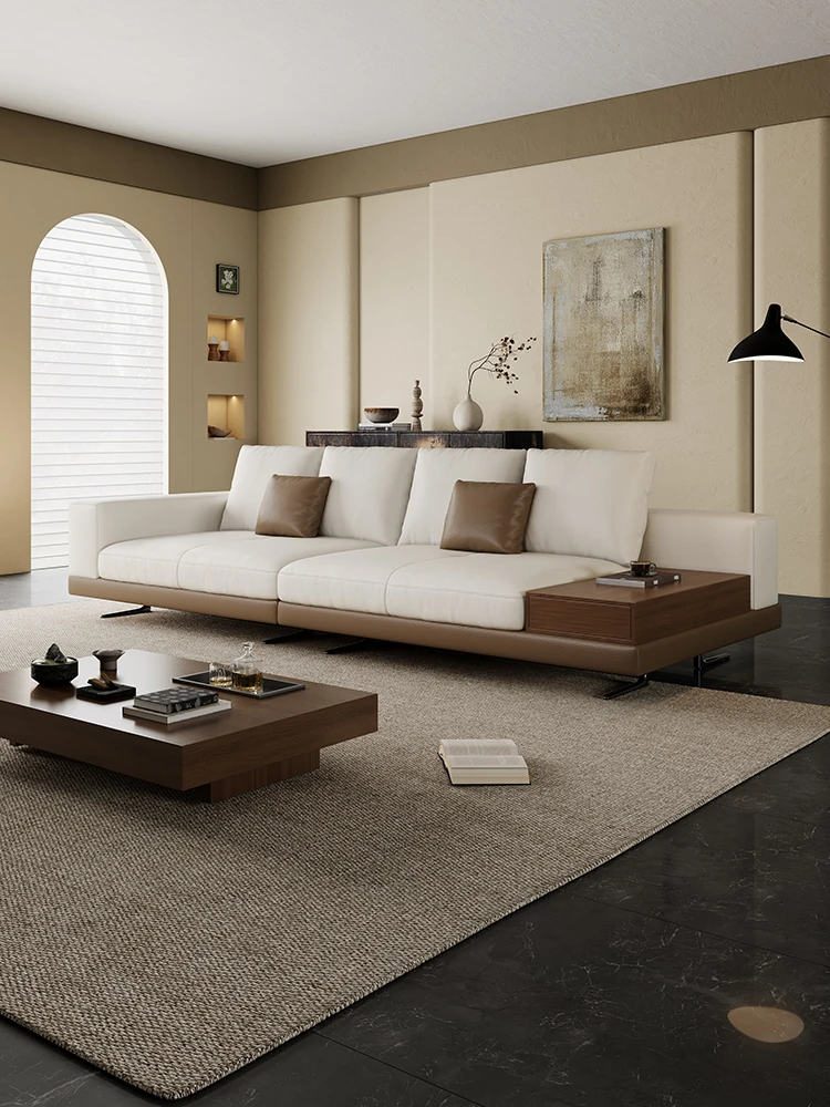 イタリアンミニマリズムのローレンス直線デザイン、本革製ソファ - リビングルームや別荘に最適な広々とした大空間用デザイナー皮革ソファ。高級感溢れるスタイルで、あなたの空間を格上げします!
