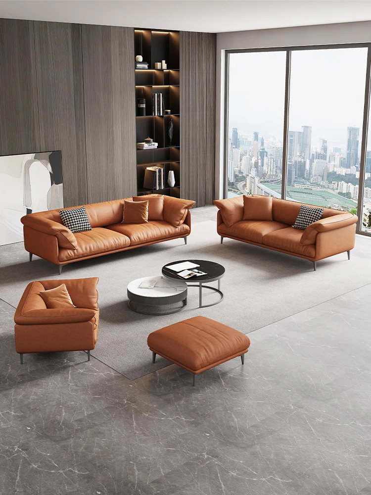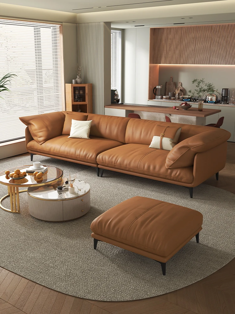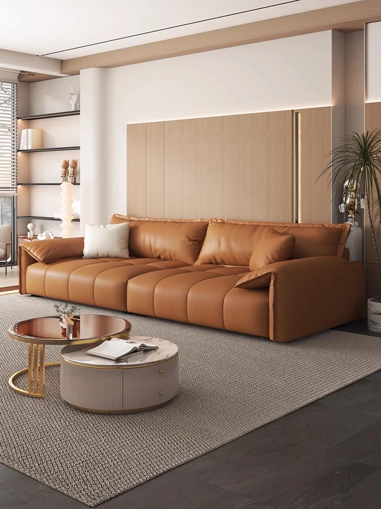 イタリアンミニマリスト キャットグラブ ソファー モダンでシンプルなラグジュアリー 高級レザー仕上げ 小型住宅に最適なストレートコンビネーション!あなたのリビングに洗練されたスタイルを!