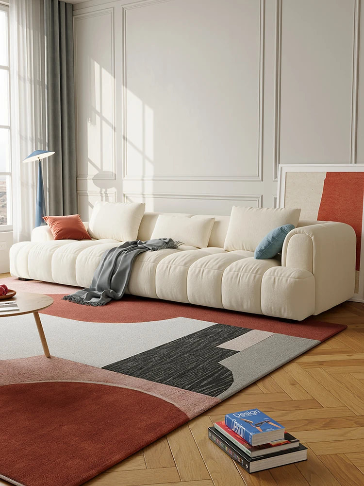 イタリアンミニマリズムの洗練されたテクノロジー布製トーフブロックソファ。モダンで軽やかなデザイン、3〜4人用、小型住宅に最適なストレートタイプ。お部屋をスタイリッシュに演出し、快適なひとときを提供します!