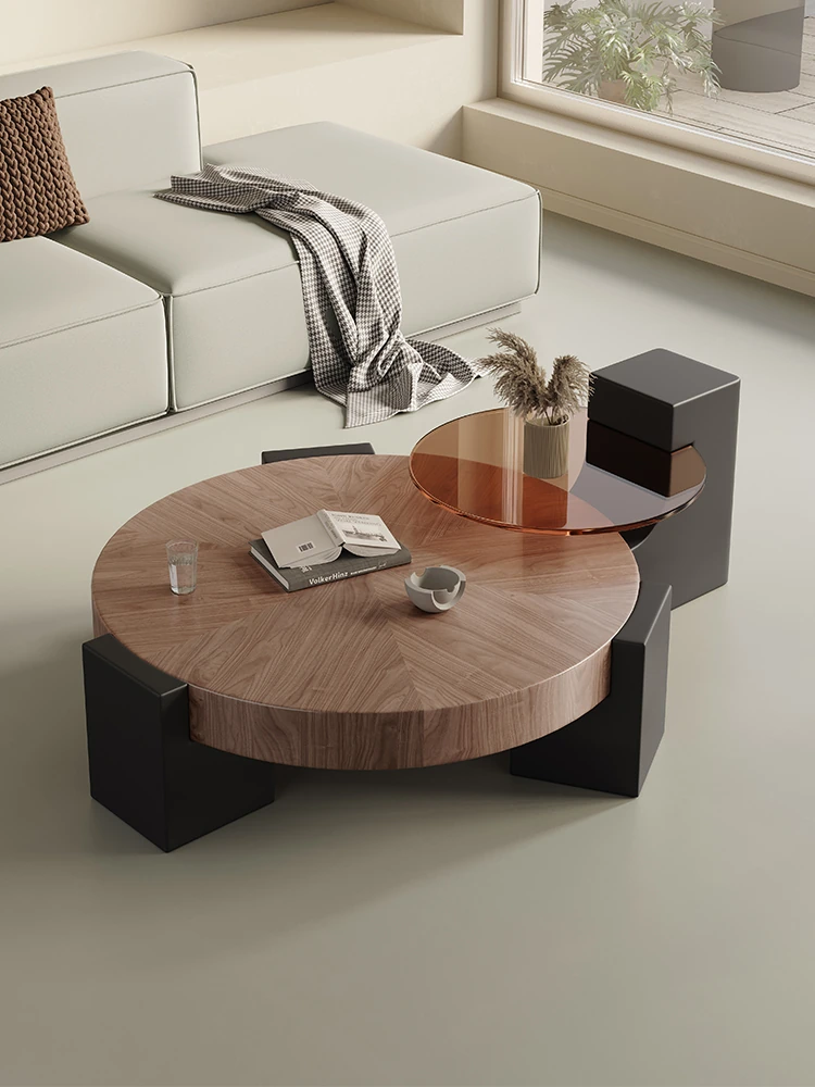 2025年新作!リビングにぴったりな軽やかでラグジュアリーな現代的シンプルデザインのサークルテーブル。小さなお部屋でも使いやすく、洗練された雰囲気を演出するクリエイティブなティーテーブル。
