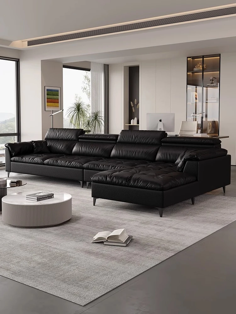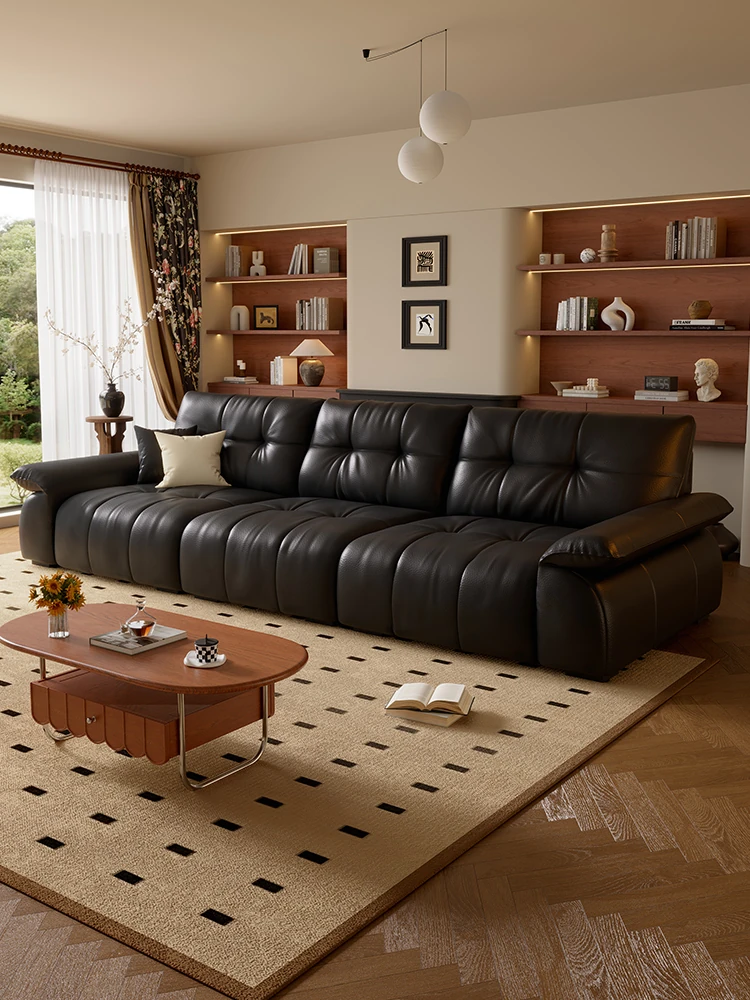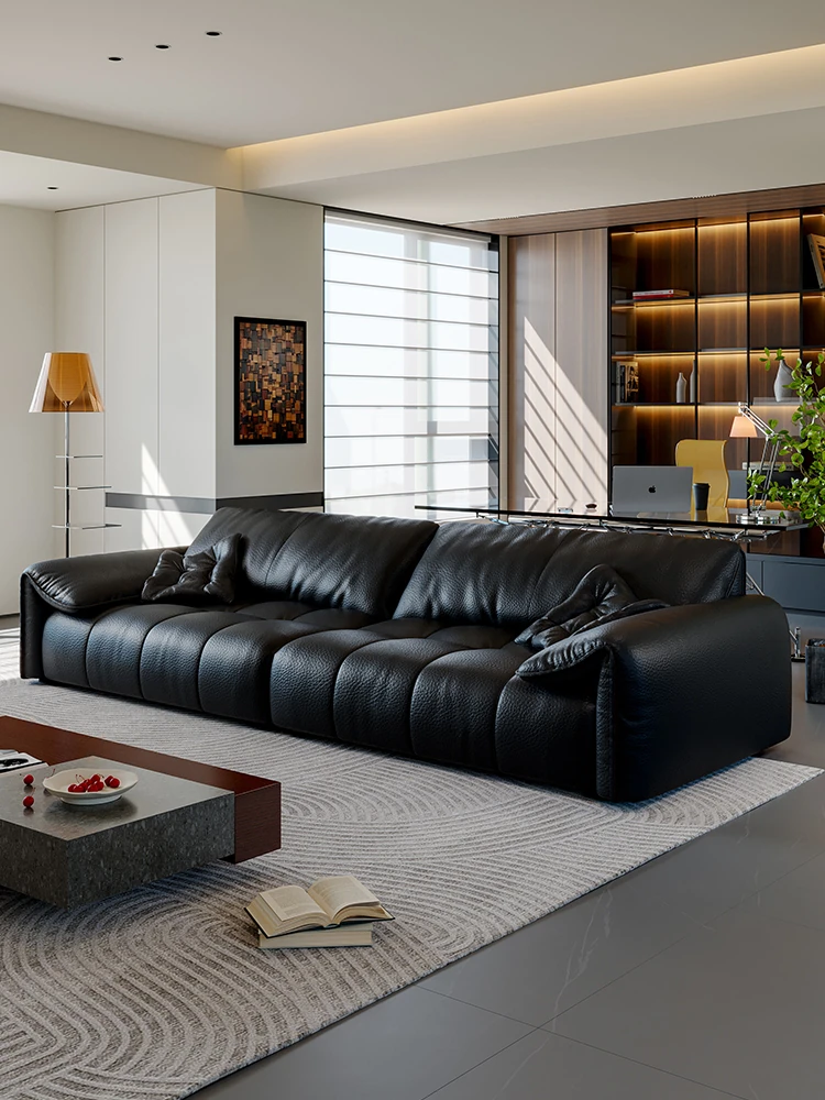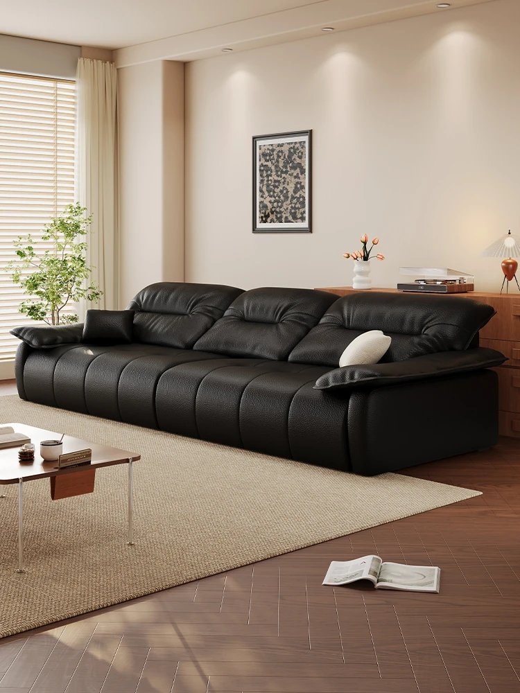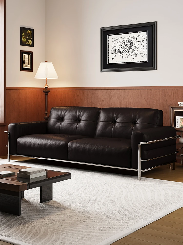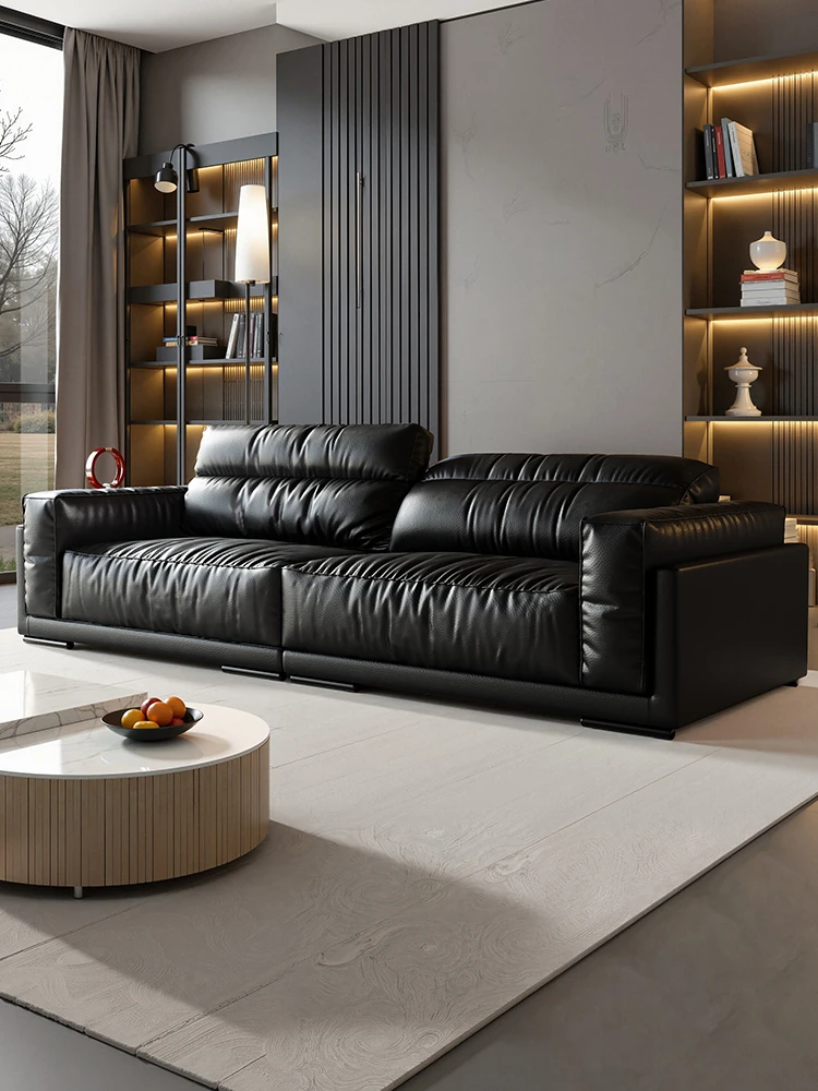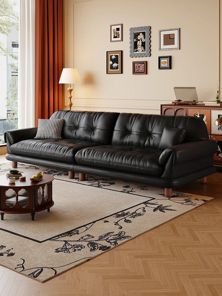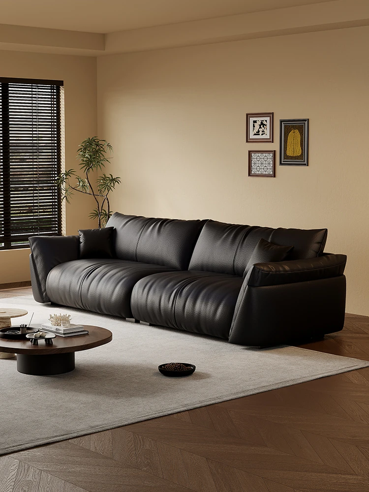 2025 New Italian Minimalist Designer Leather Sofa – Retro Black Leather Sofa for Small Living Rooms