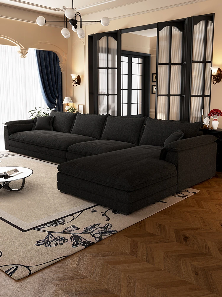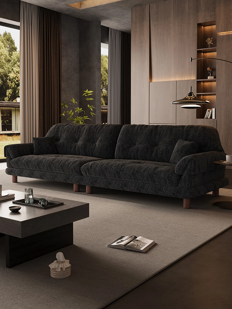 Italian Luxury Genuine Leather Big Black Bear Sofa – Vintage Villa High-End High Back Black Straight Sofa for Elegant Living Rooms