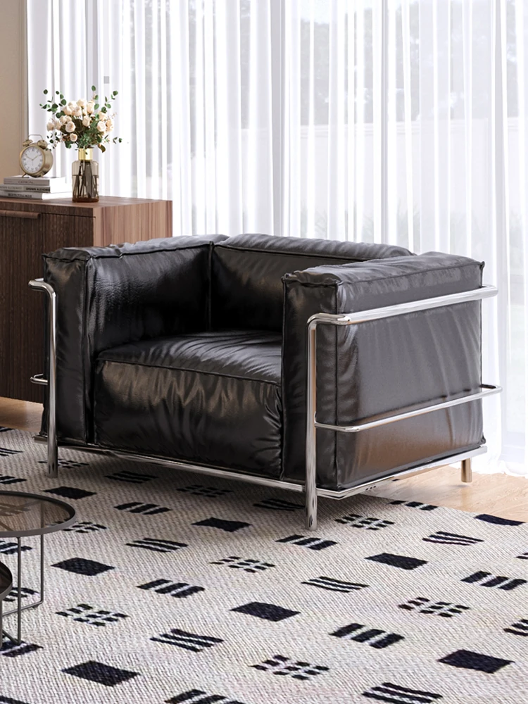 Italian Minimalist Cassins Le Corbusier Single Sofa - Vintage Bauhaus Top-Grain Leather Lounge Chair for Living Room