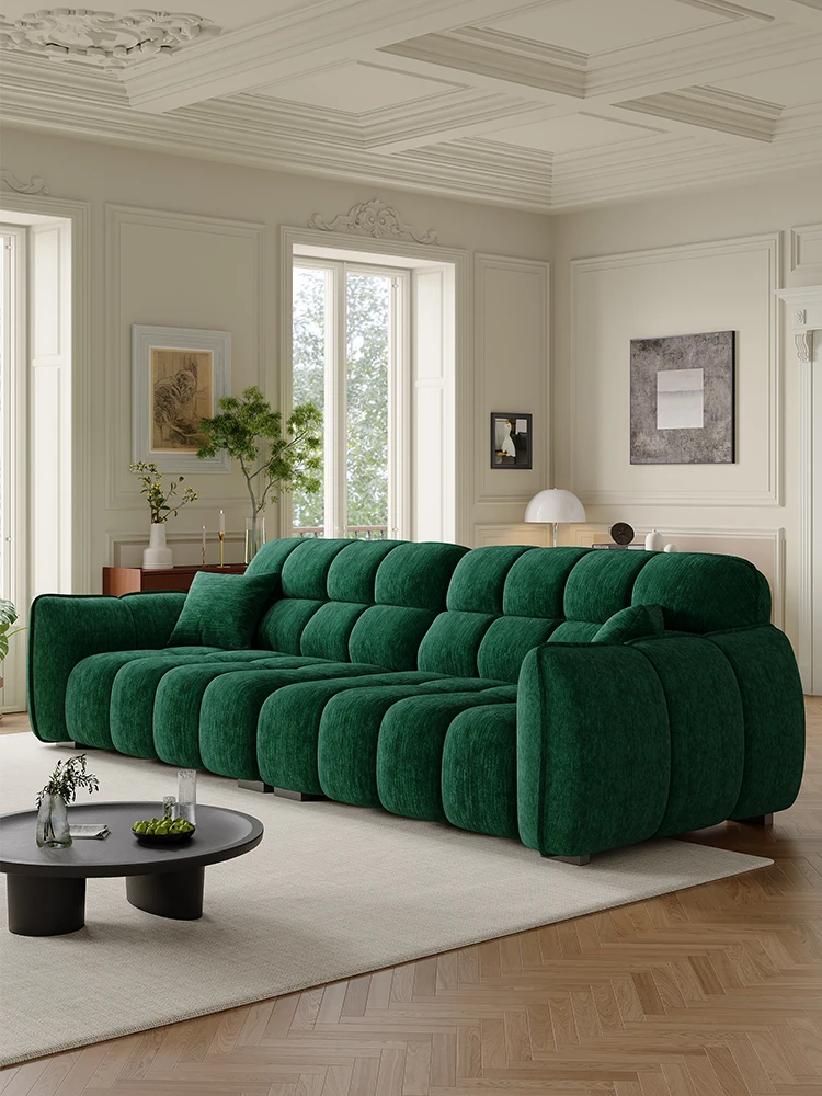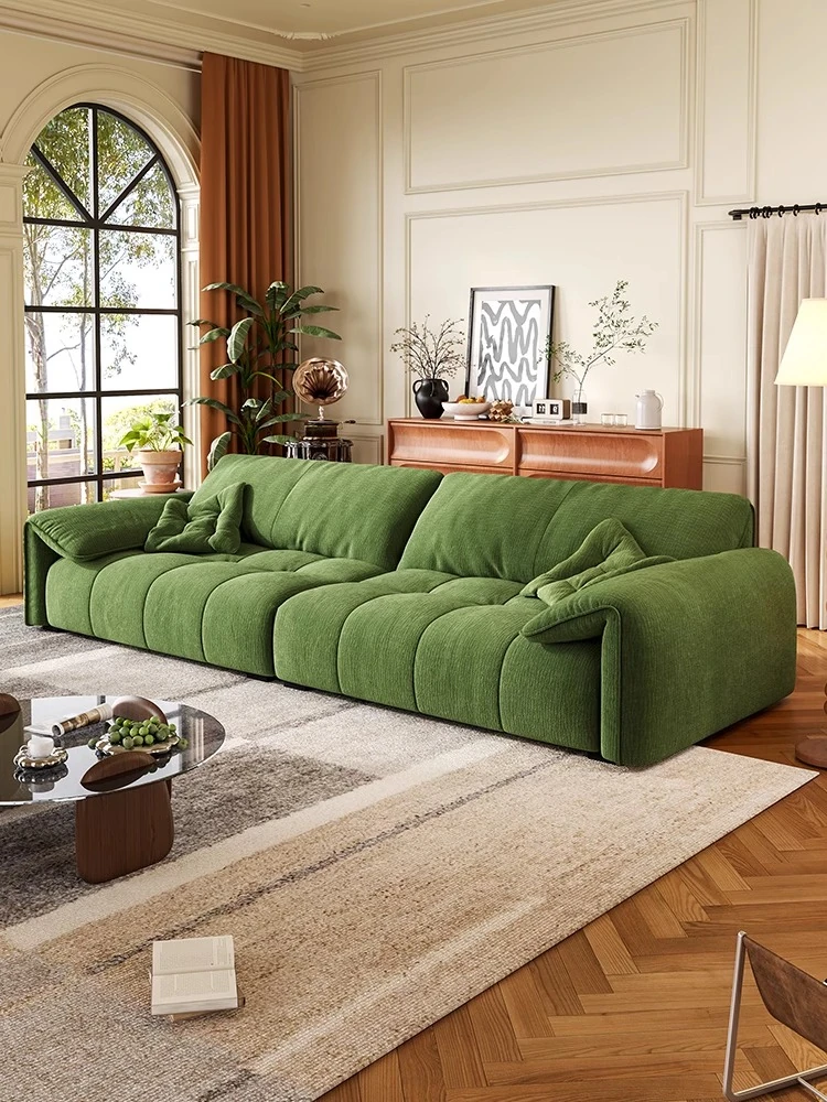French Vintage Chenille Cotton Candy Straight Sofa - Creamy Puff Cloud Sofa for Small Living Rooms, Perfect for Cozy Spaces and Chic Décor.