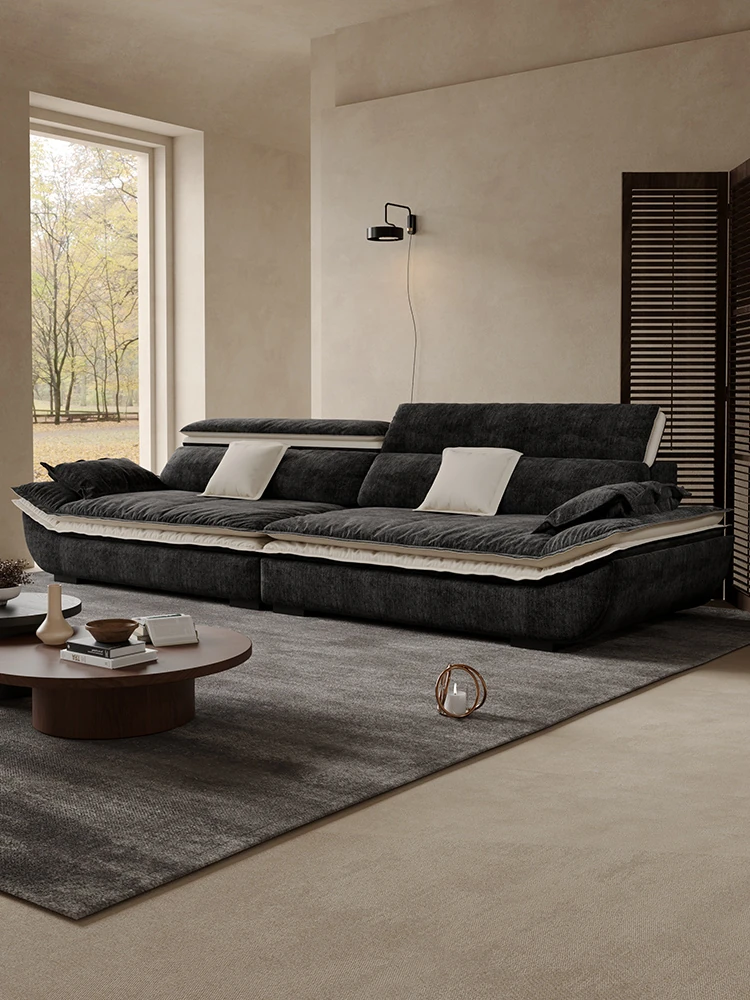 Italian Minimalist Chenille Sofa – Adjustable Deep Seat Sailboat Chaise Lounge, Vintage Removable Fabric Sofa for a Stylish Living Room