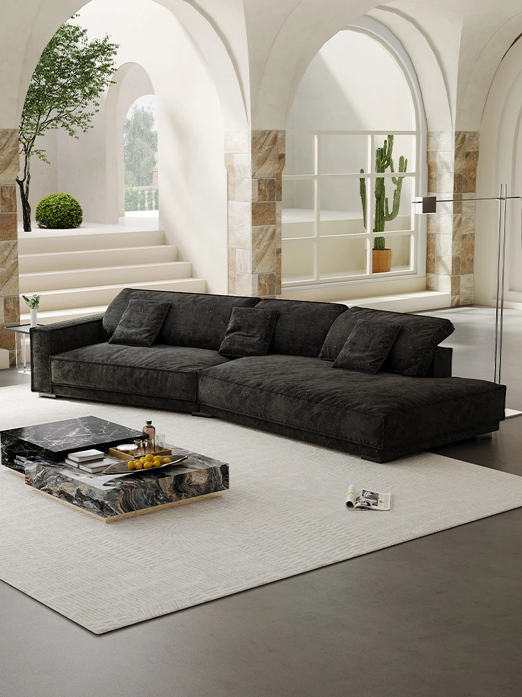 Italian Minimalist Chenille Velvet Budapest Chaise Lounge - Spacious Corner Sofa with Deep Down Fill for Luxurious Living Room Comfort