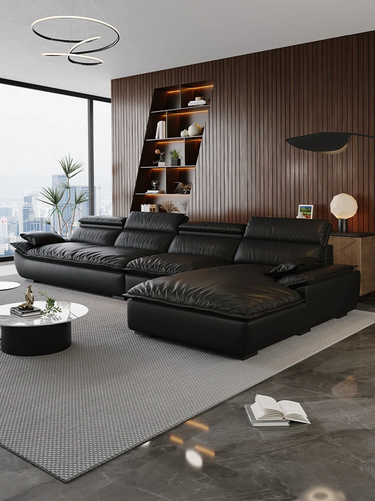 Italian Minimalist Genuine Leather Adjustable High-Back Sofa - Luxurious Deep Seat for Living Room, Perfect for Small and Medium-Sized Spaces