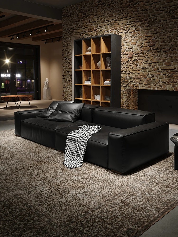Italian Minimalist Top-Grain Leather Black Obsidian Sofa - Vintage Style Adjustable Headrest Block Sofa for Living Room