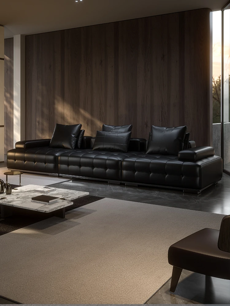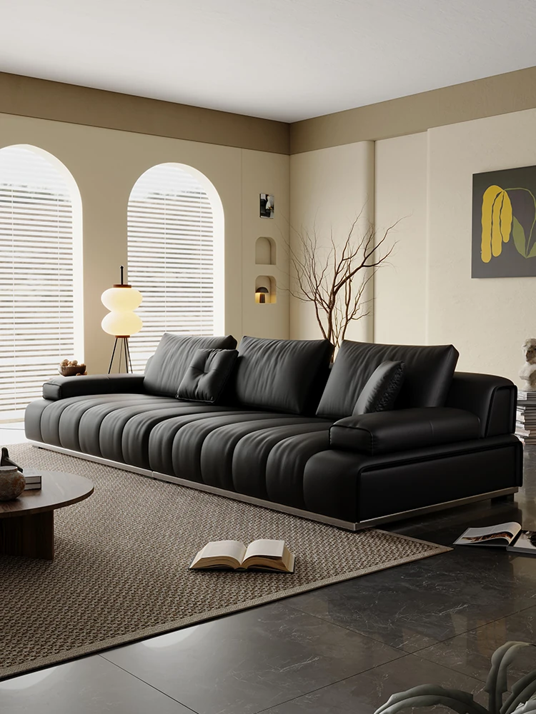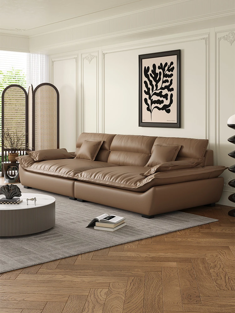 2025 New Italian Luxury Genuine Leather Ultra-Deep Wide Sofa - Minimalist Straight Sailboat Design for Your Living Room