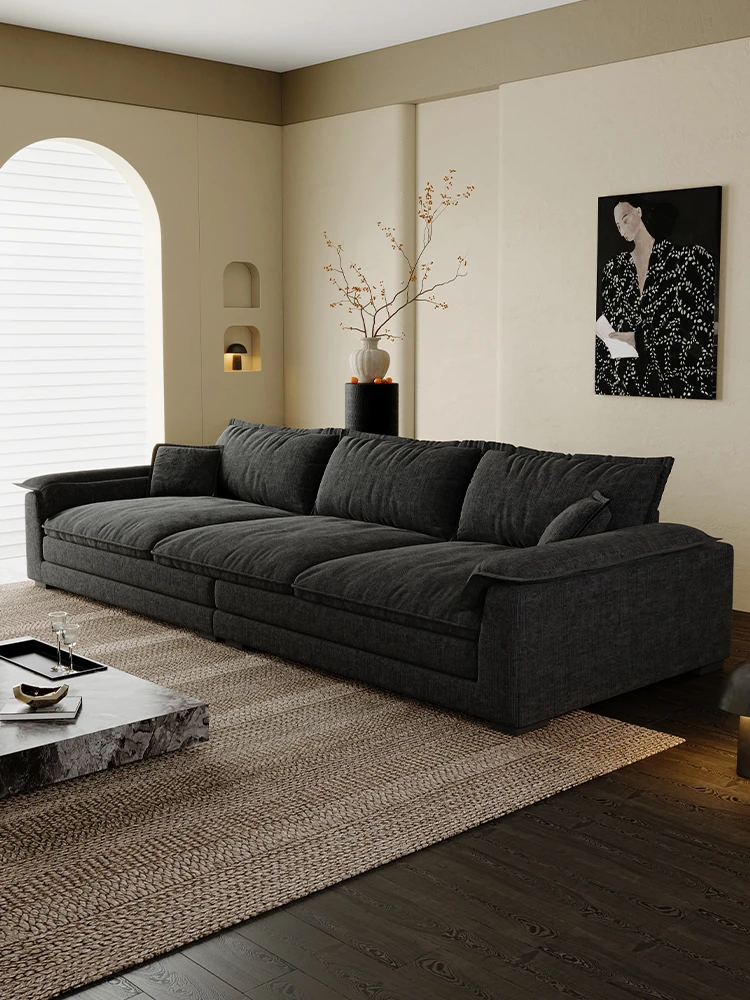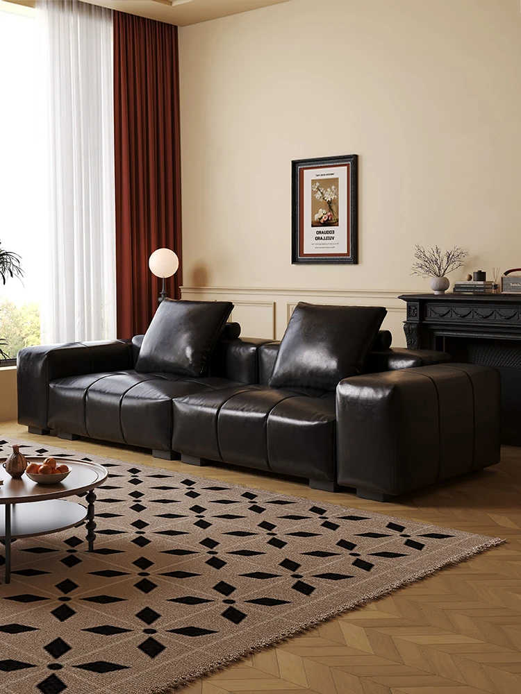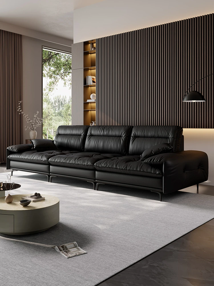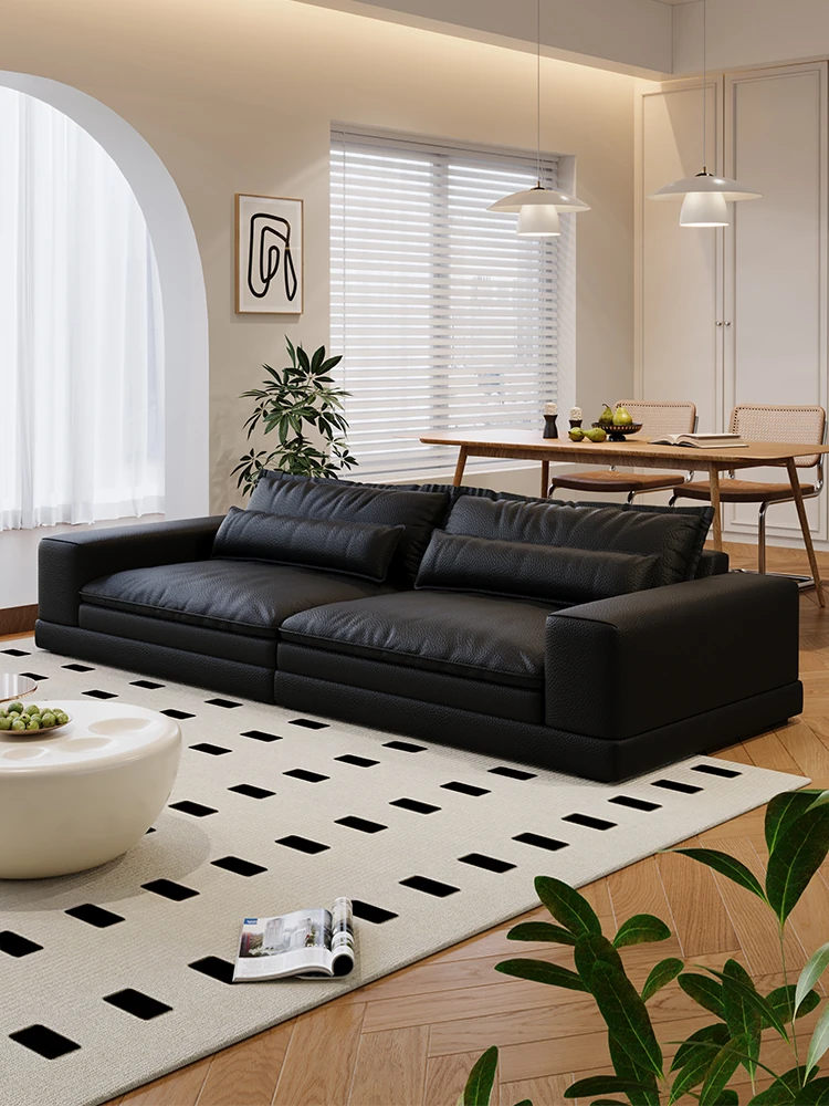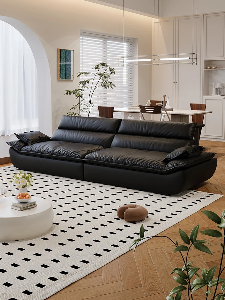 2025 New Italian Luxury Modern Black Sugar Cloud Sofa - Premium Leather, Minimalist Design for Small Spaces, Perfect for Stylish Living Rooms