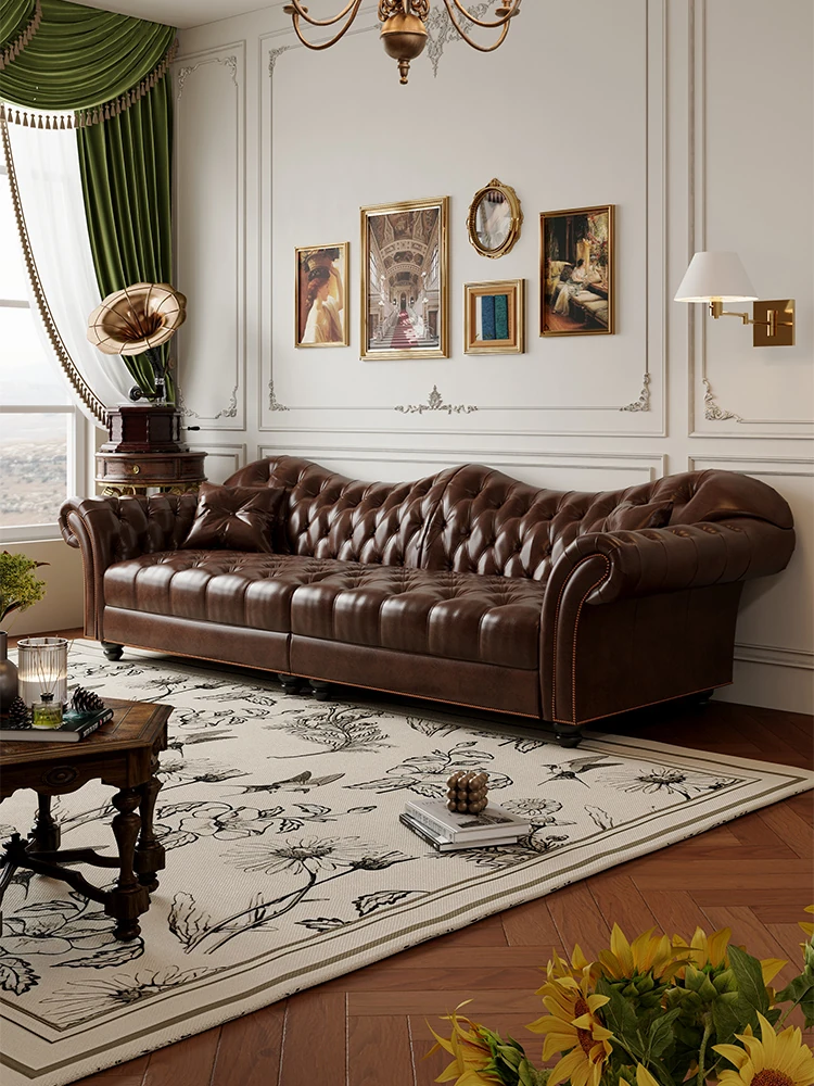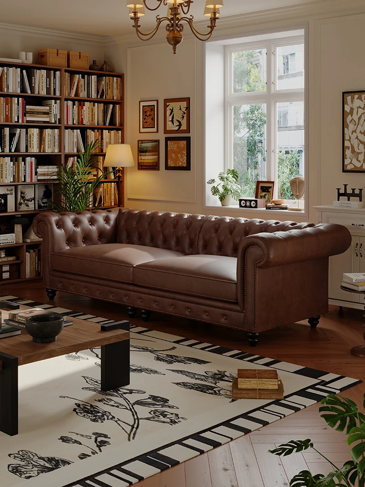 Classic American Leather Sofa Set - Vintage Waxed Leather 3-Seater for Luxury Living Room Furniture - Timeless Design, Superior Comfort, and High-End Quality