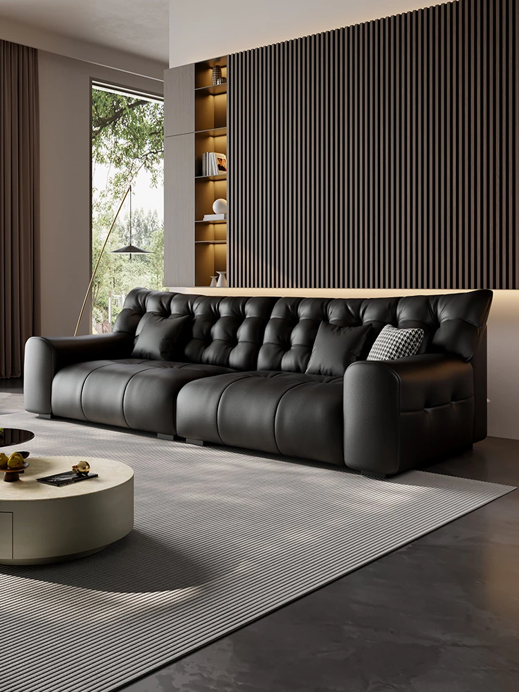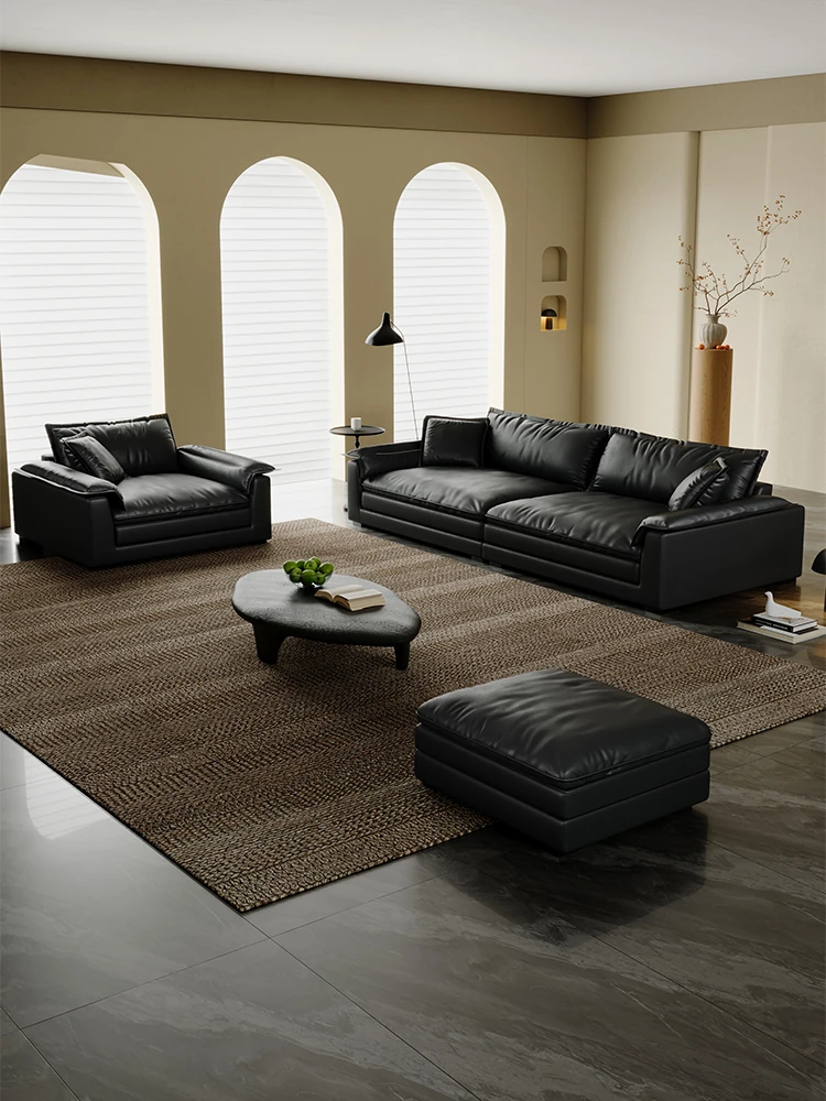 2025 New Italian Luxury Black Genuine Leather Big Bear Sofa - Modern Minimalist Design for Small Living Rooms, Featuring Cozy Down Filling and Sleek Lines.