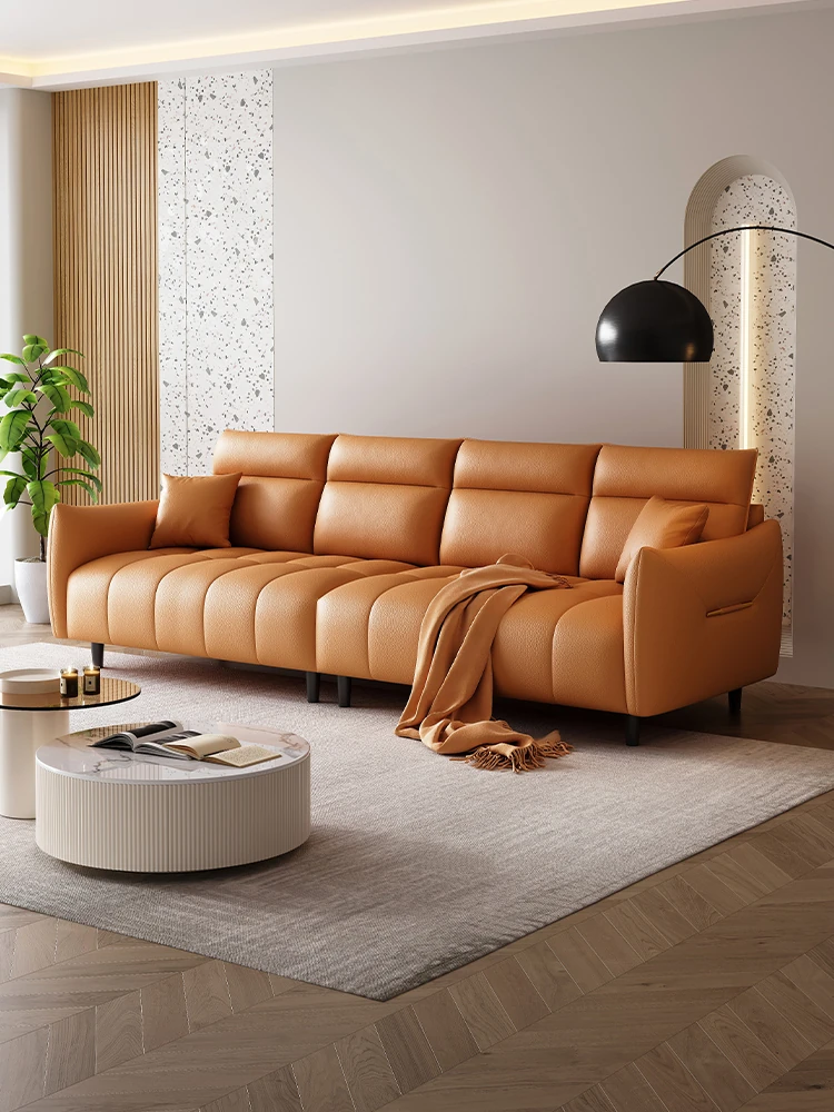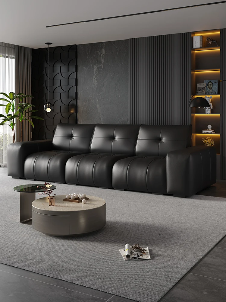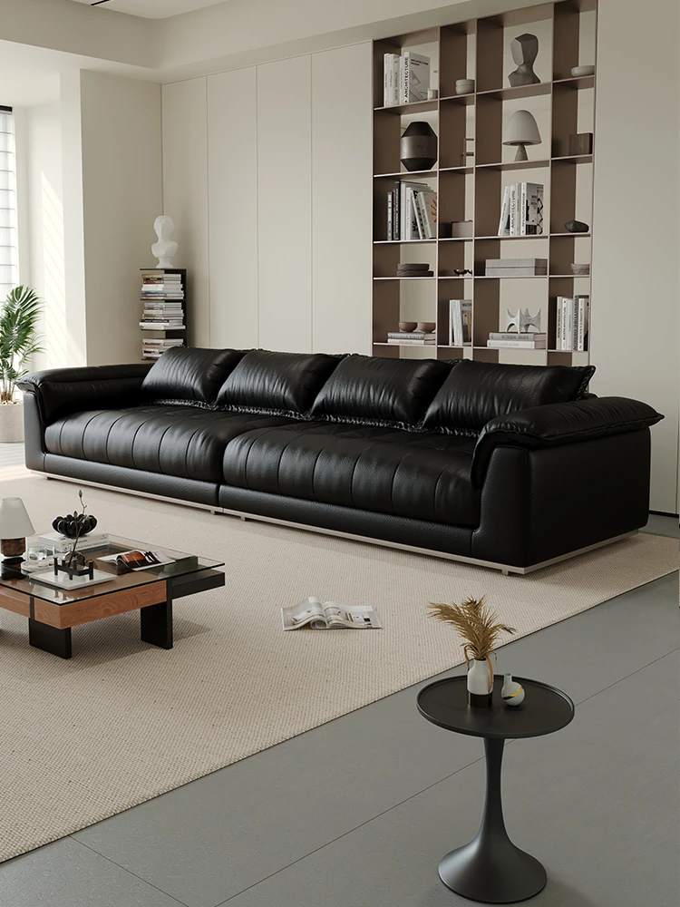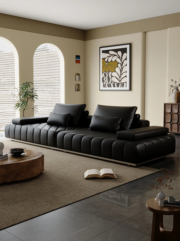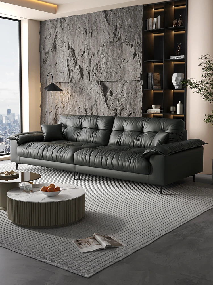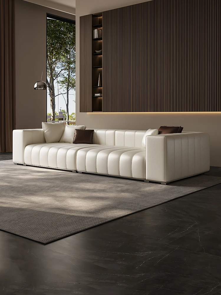 Modern Italian Minimalist Genuine Leather Sofa Set - High Back Cushion for Small Living Rooms, Chic and Luxurious Design with Straight Chaise Lounge. Perfect for Contemporary Spaces!