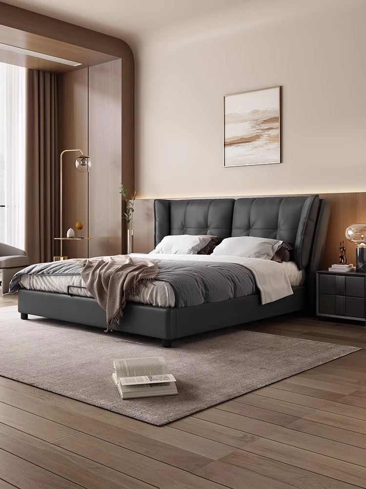 Italian Luxury Genuine Leather Elephant Ear Floating Bed - Modern Minimalist Design for Master and Guest Bedrooms, Double Soft-Pack Marriage Bed