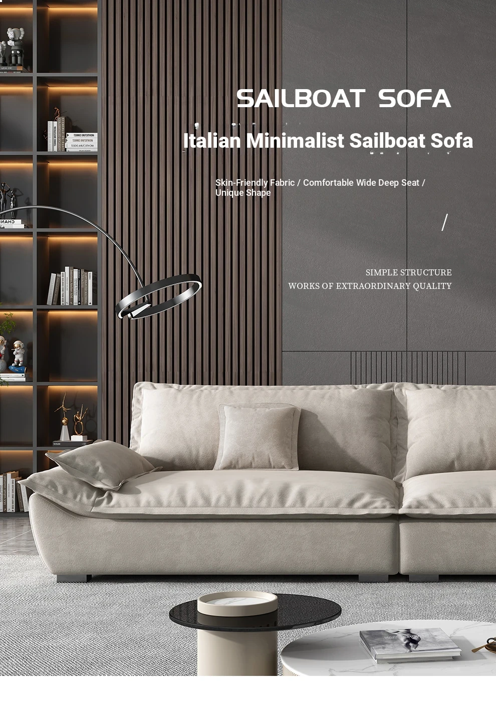 Italian Luxe Velvet Upholstered Sofa - Extra Wide and Deep Sailboat Design for Small Spaces, Featuring Cozy Down Fill and Chic Matte Fabric
