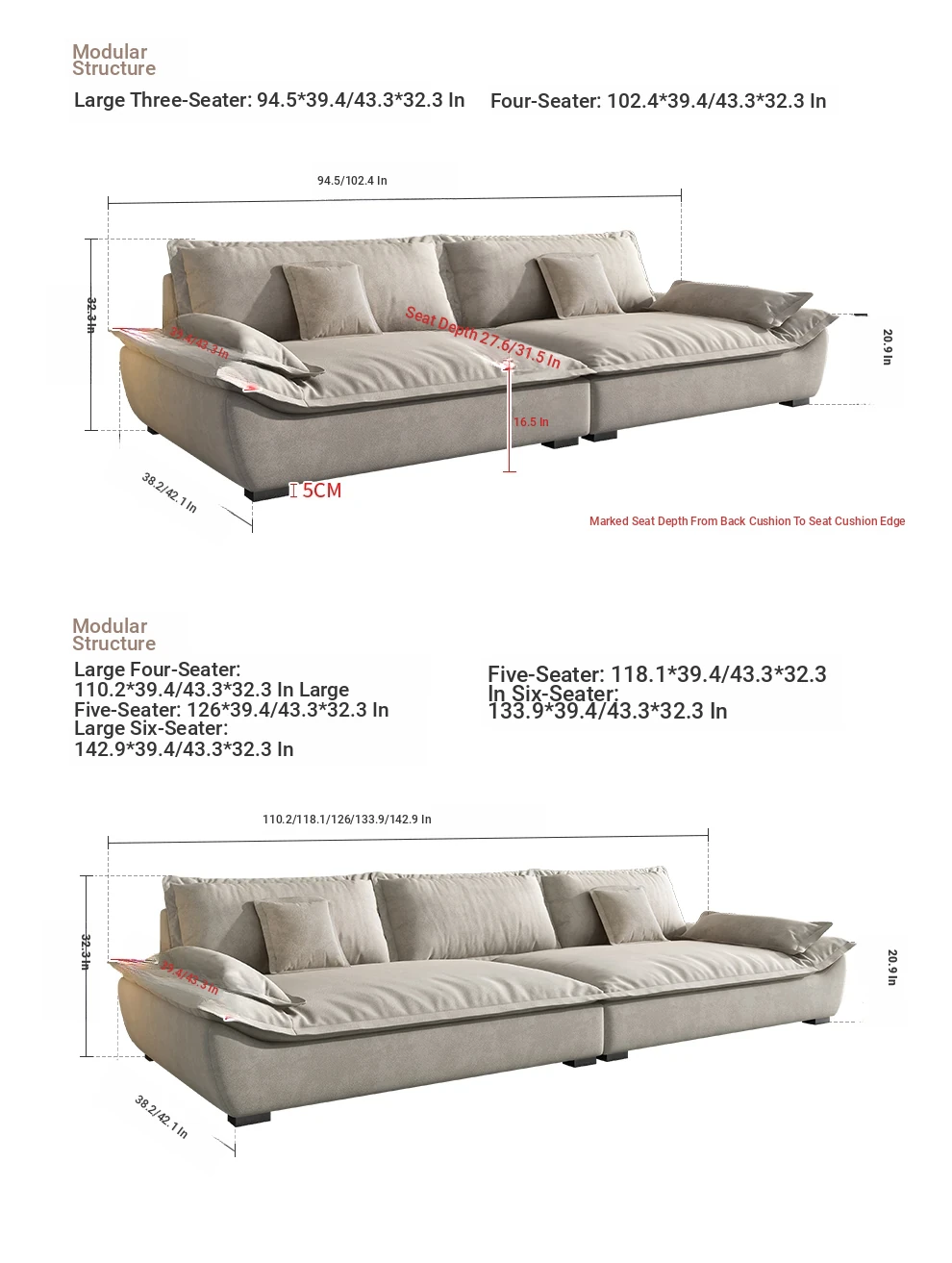 Six people 133.86 ins [width 39.37 in] Import larch base
