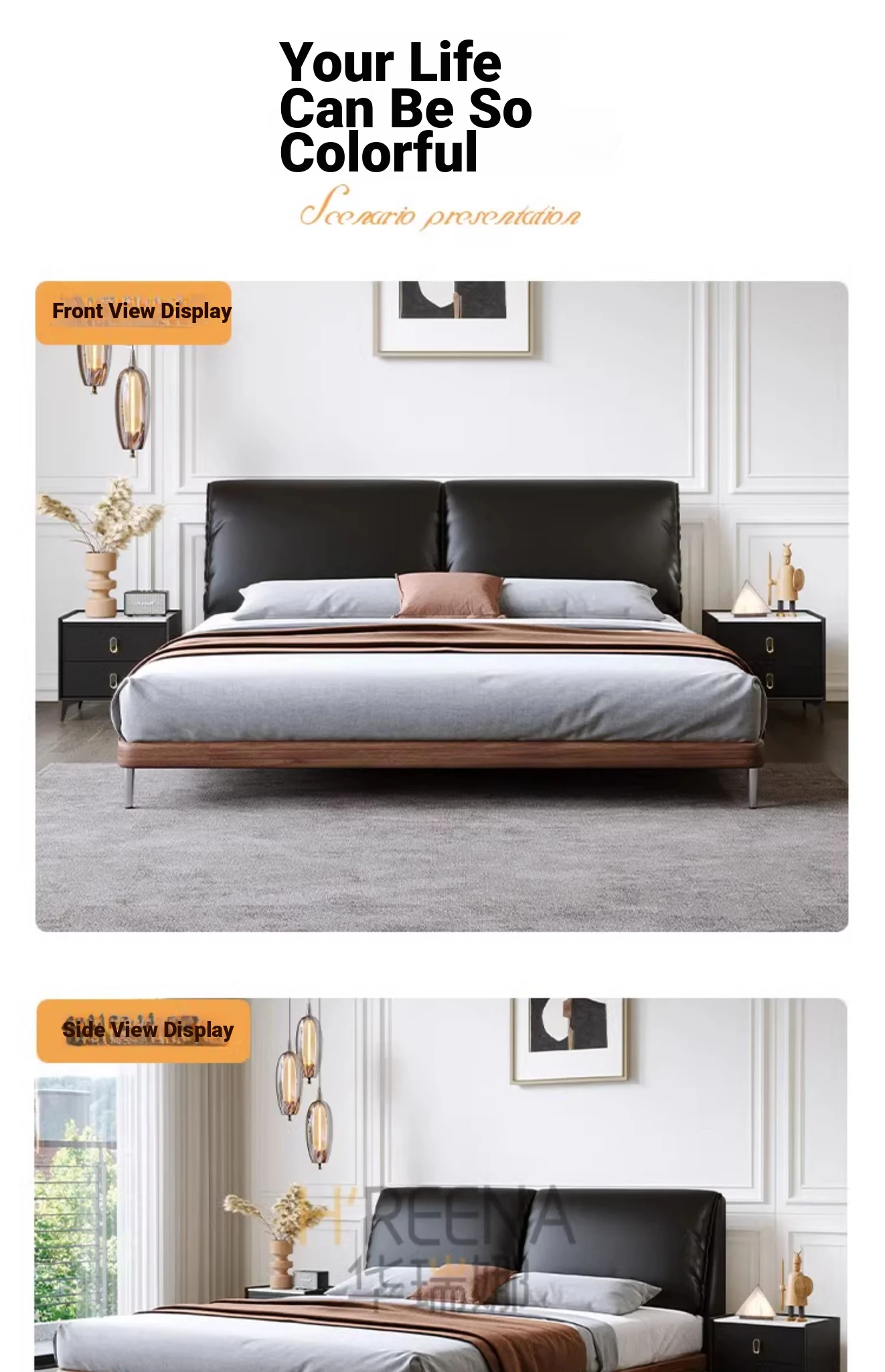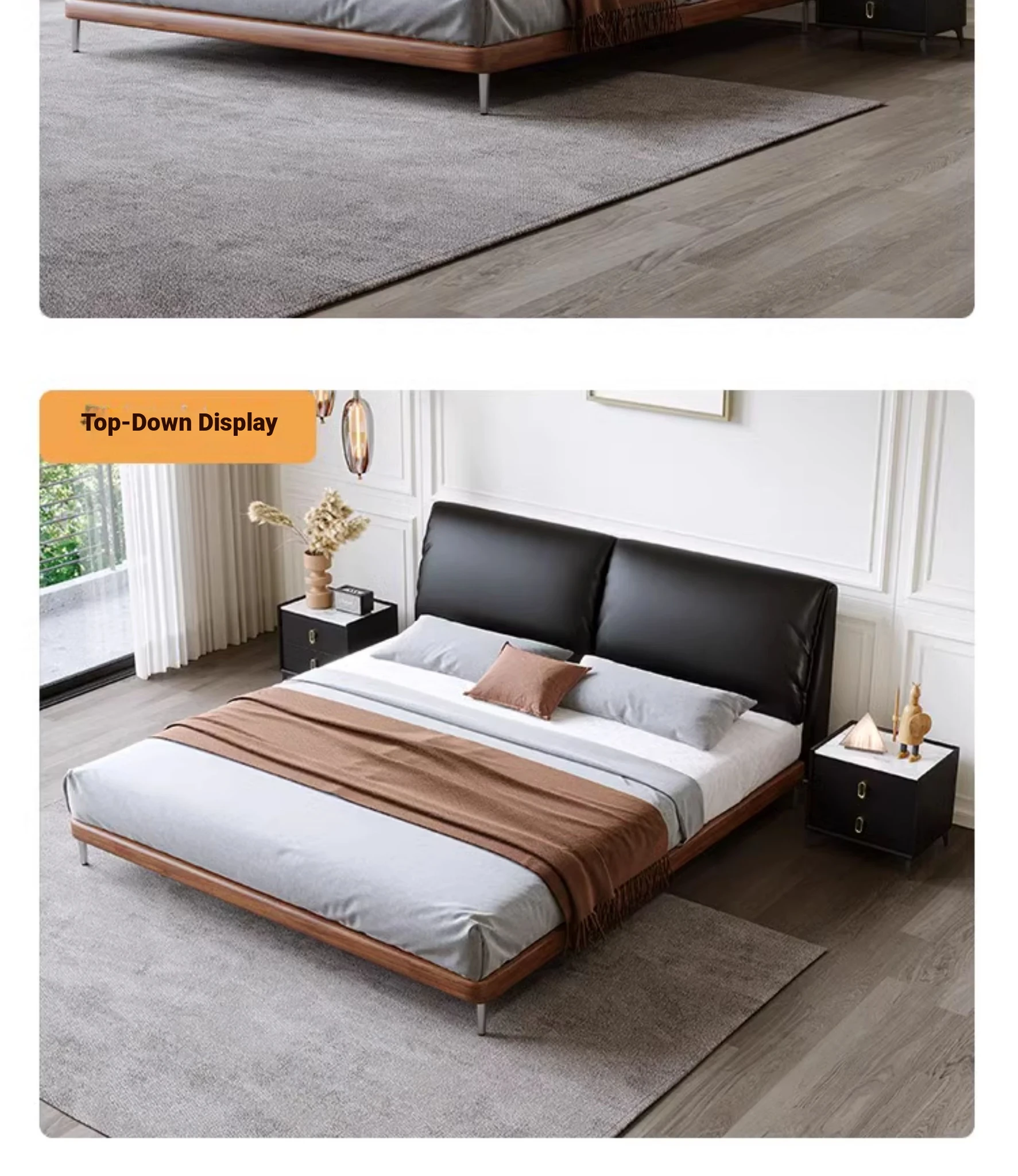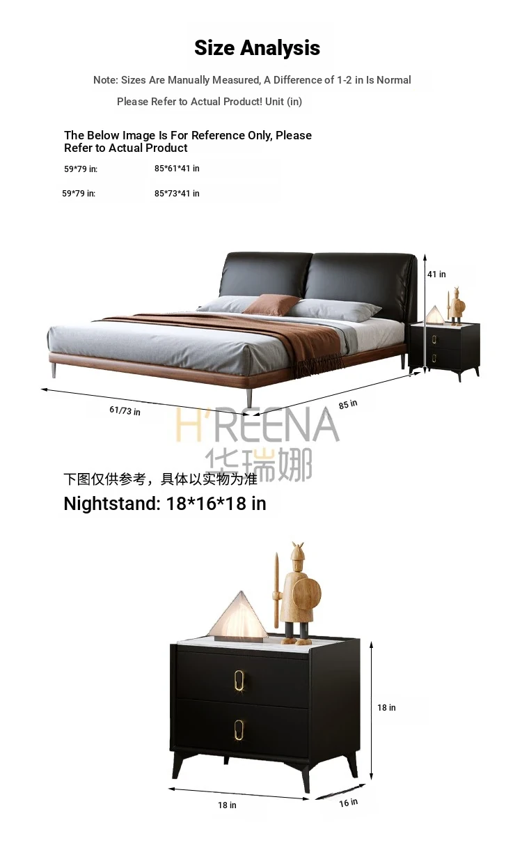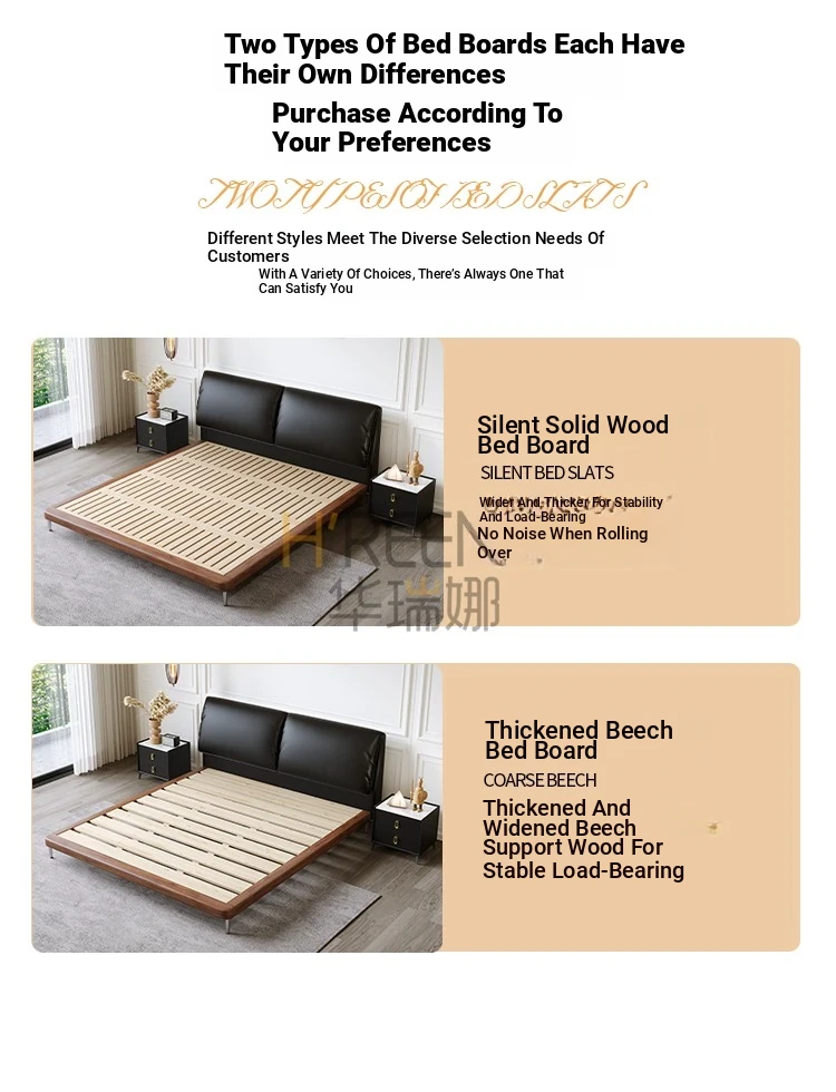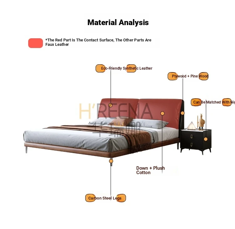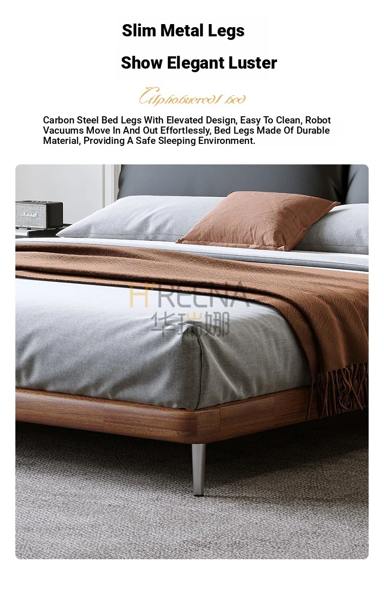 Italian Minimalist Eco-Friendly Genuine Leather Elephant Ear Soft Bed – Available in 1.5m and 1.8m Sizes, with Feather-Edged Design in Elegant Black for Master and Guest Rooms.