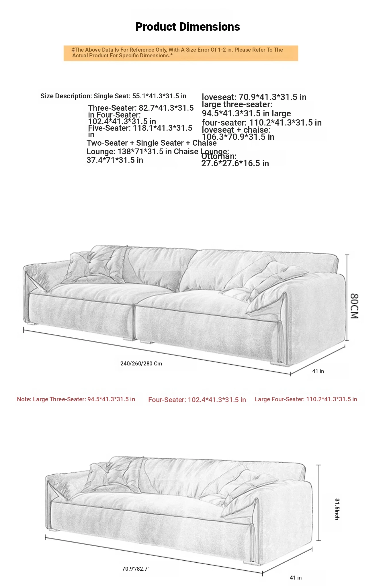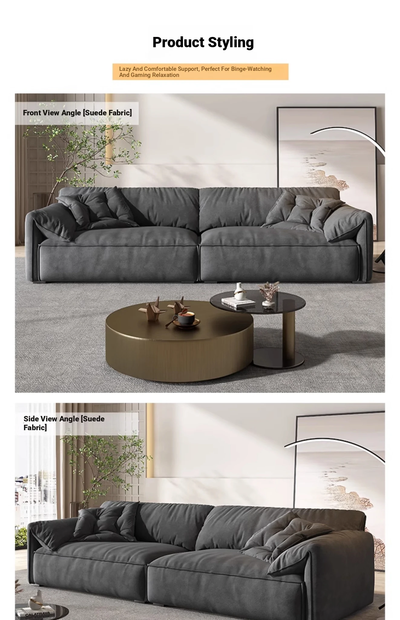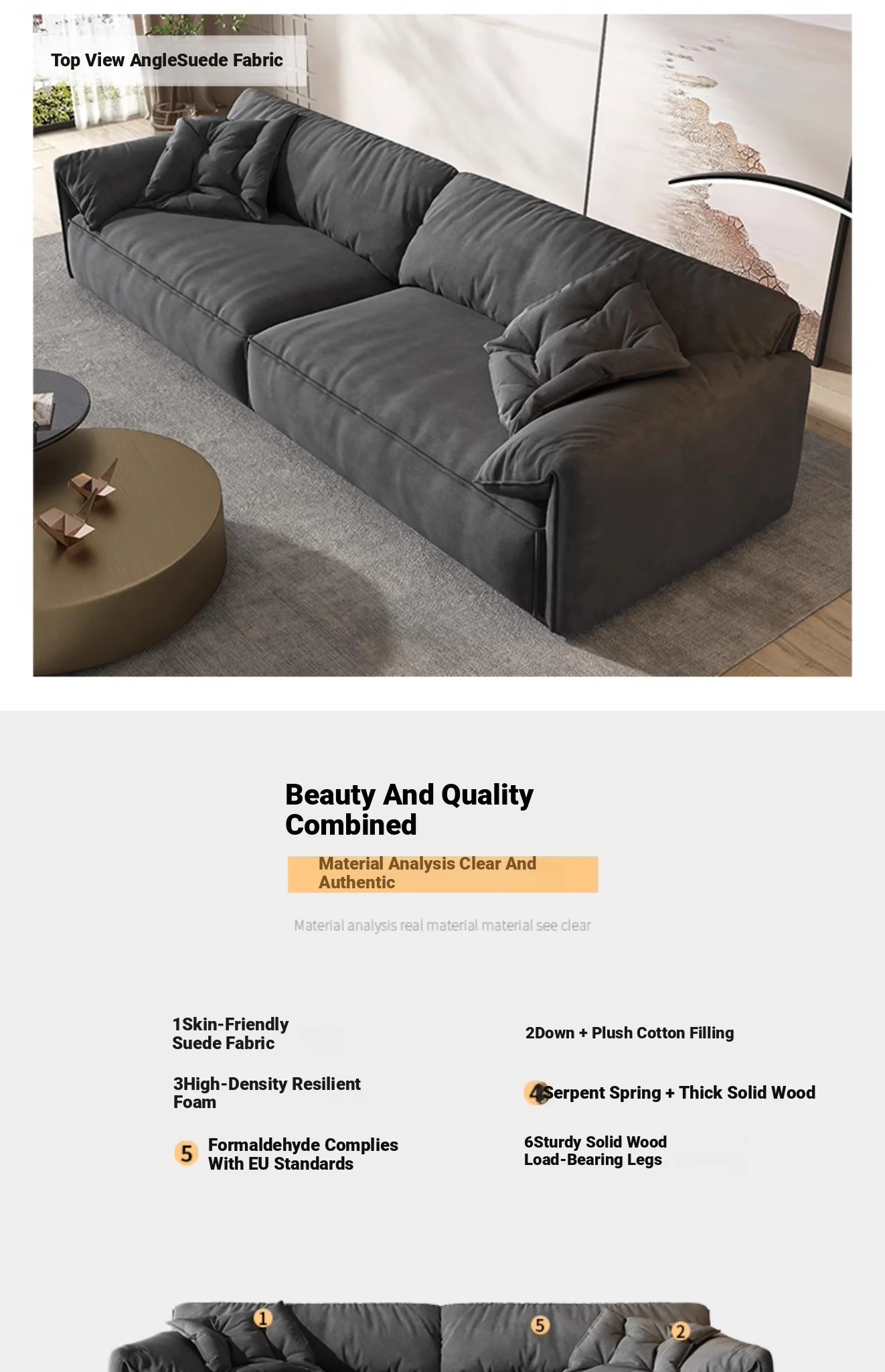 Modern Italian Minimalist Flannel Elephant Ear Fabric Sofa - Cozy Down Sofa for Small Living Spaces, Perfect for Lazy Days