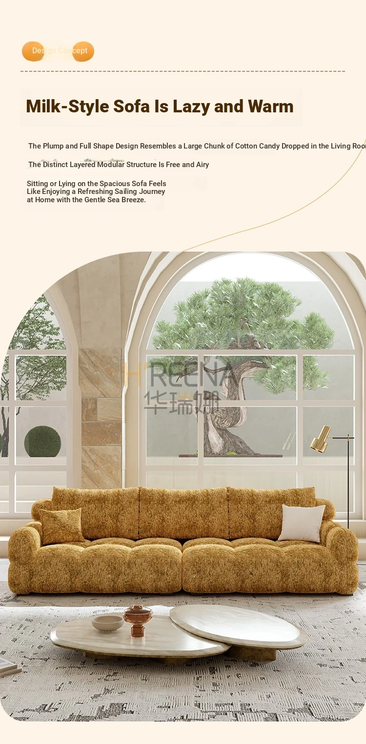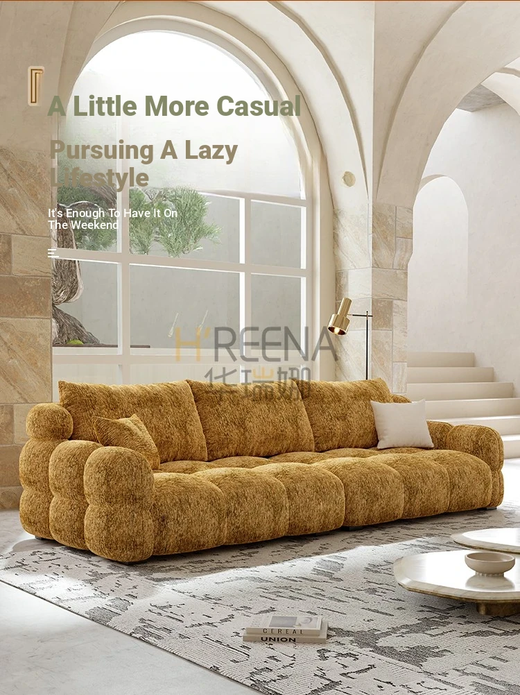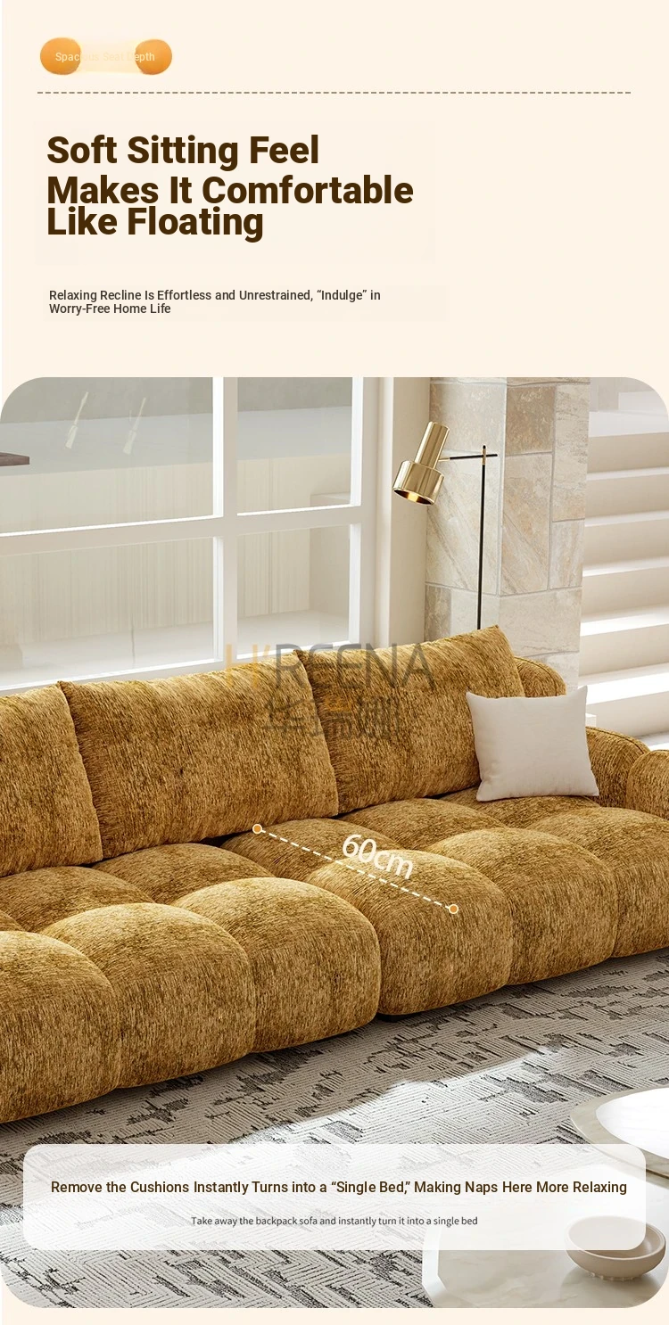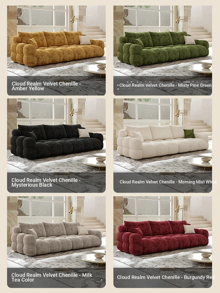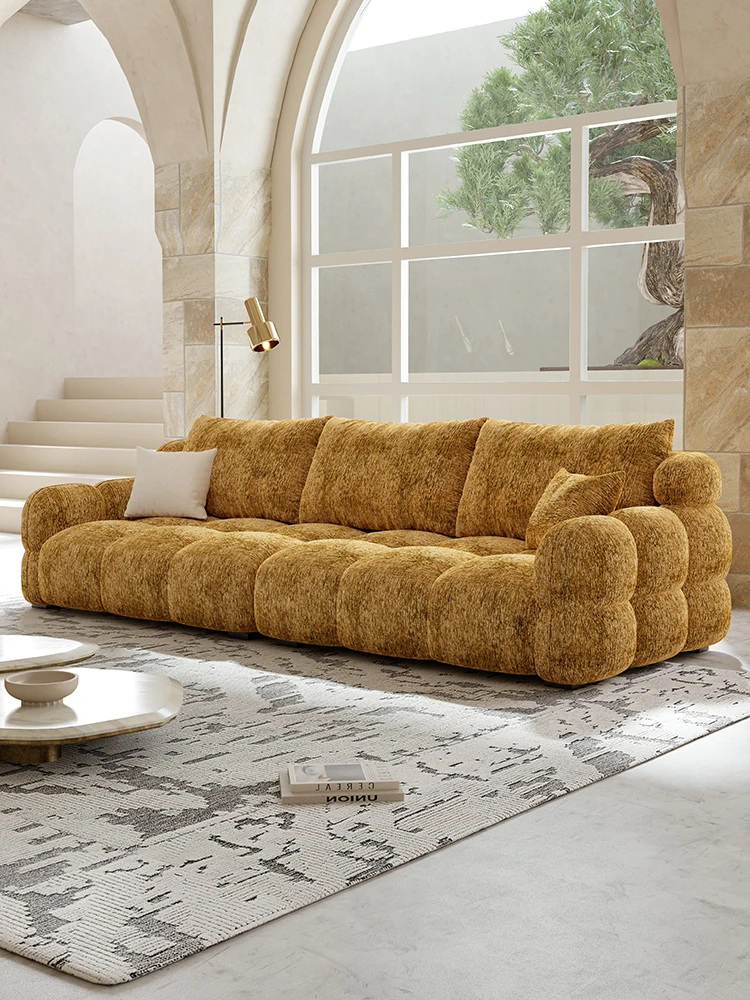 French Vintage Chenille Velvet Cotton Candy Puff Fabric Sofa – Creamy Style for Small Living Rooms, Perfect for Cozy Spaces!