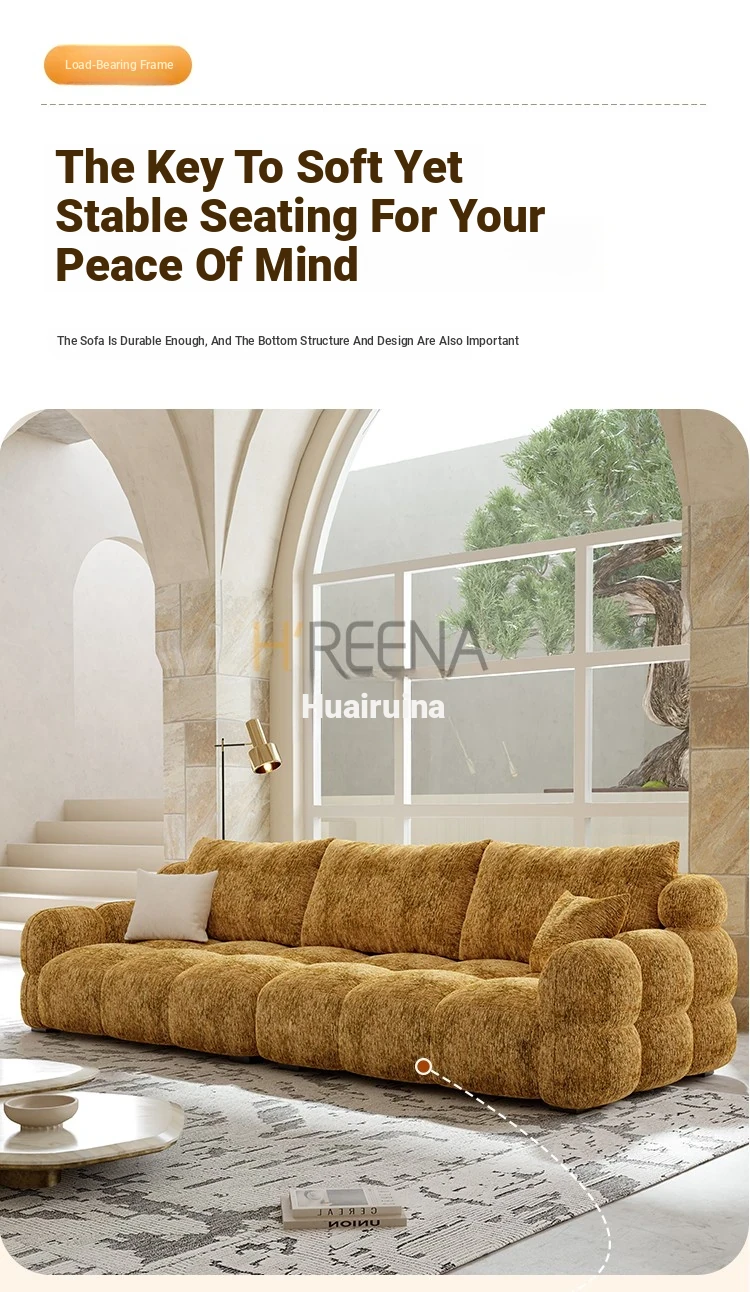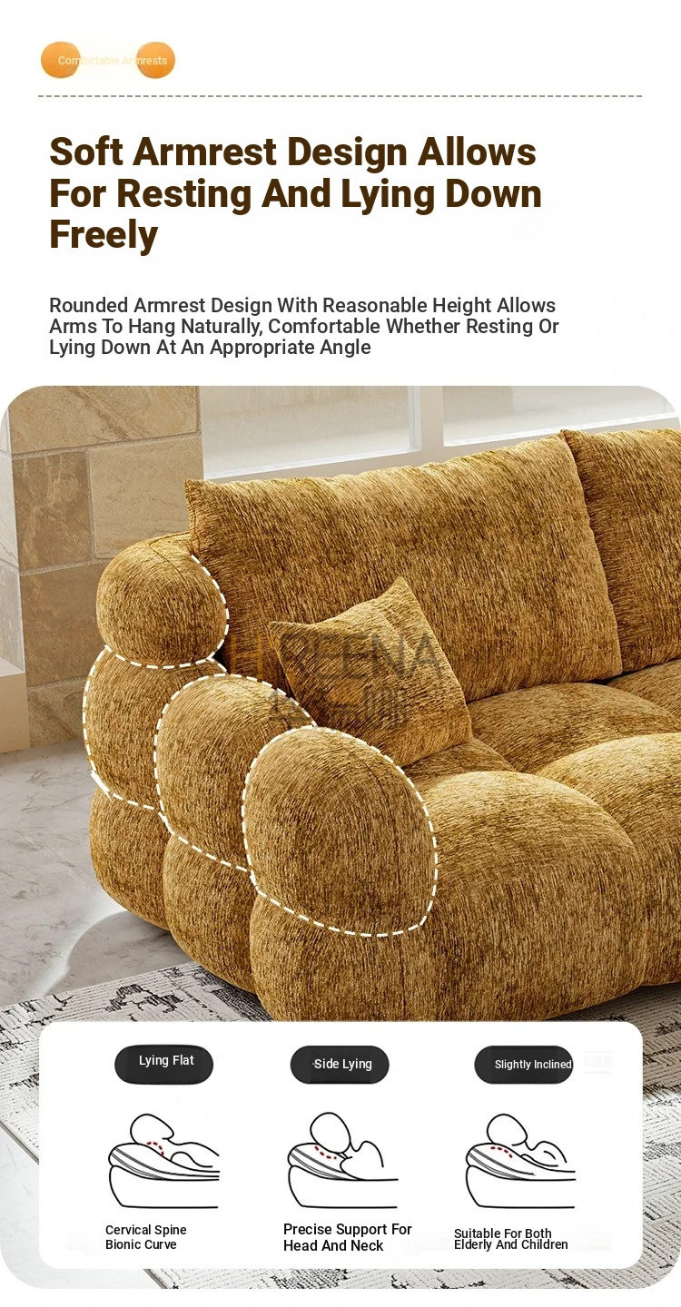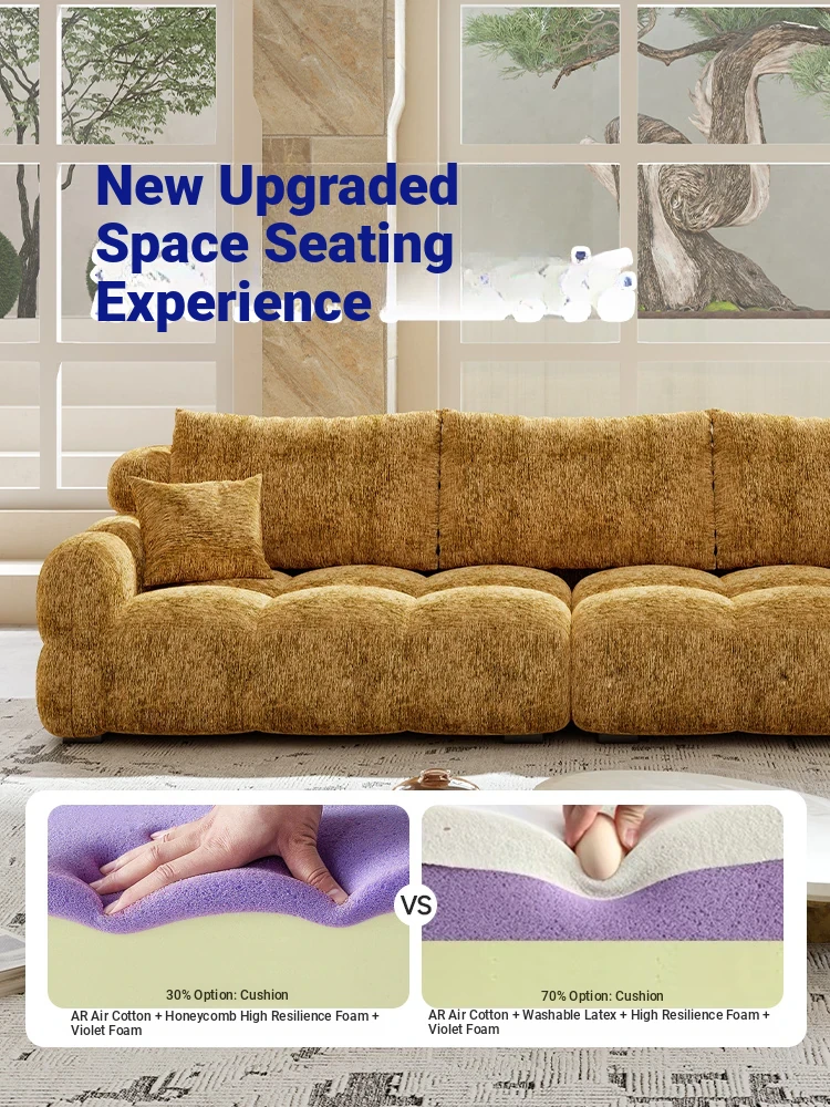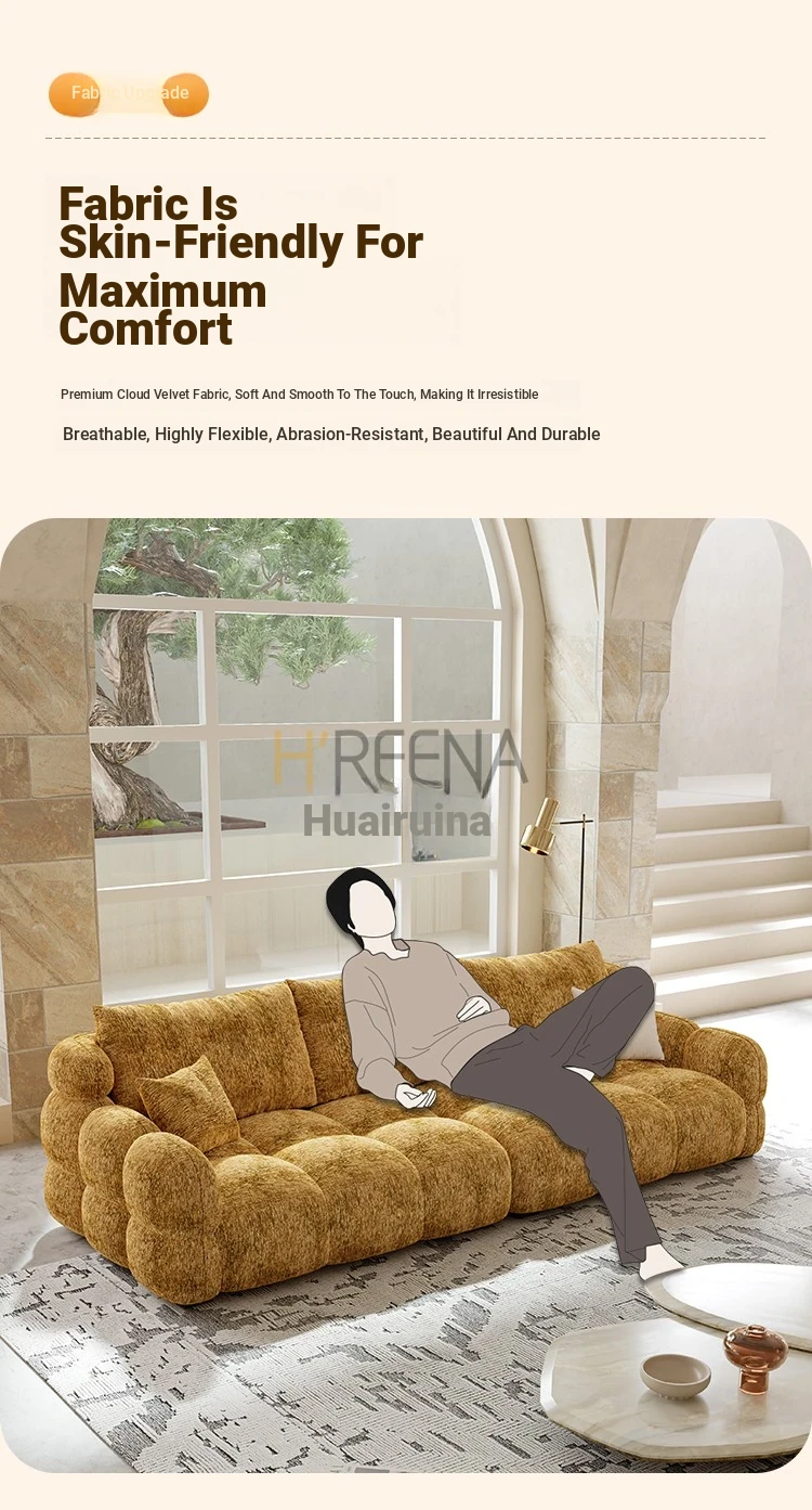 French Vintage Chenille Velvet Cotton Candy Puff Fabric Sofa – Creamy Style for Small Living Rooms, Perfect for Cozy Spaces!
