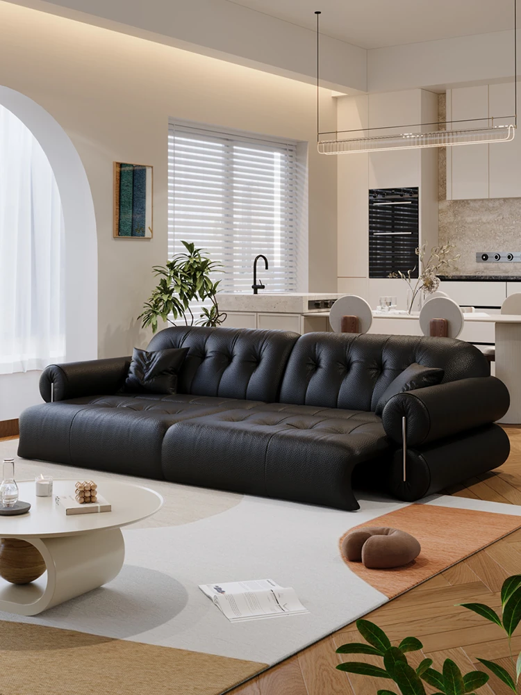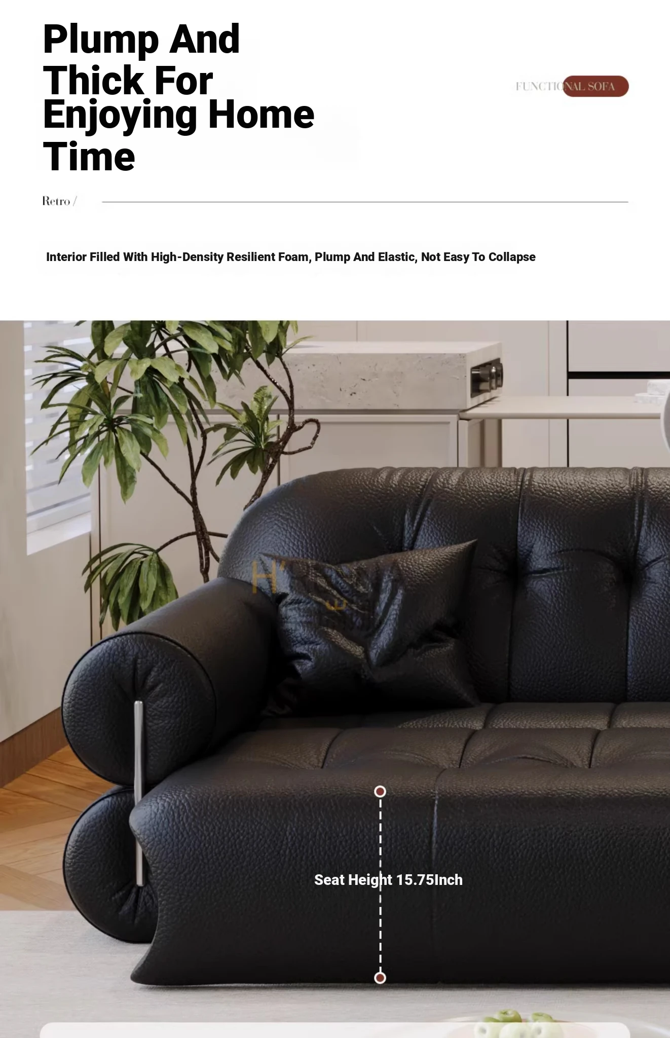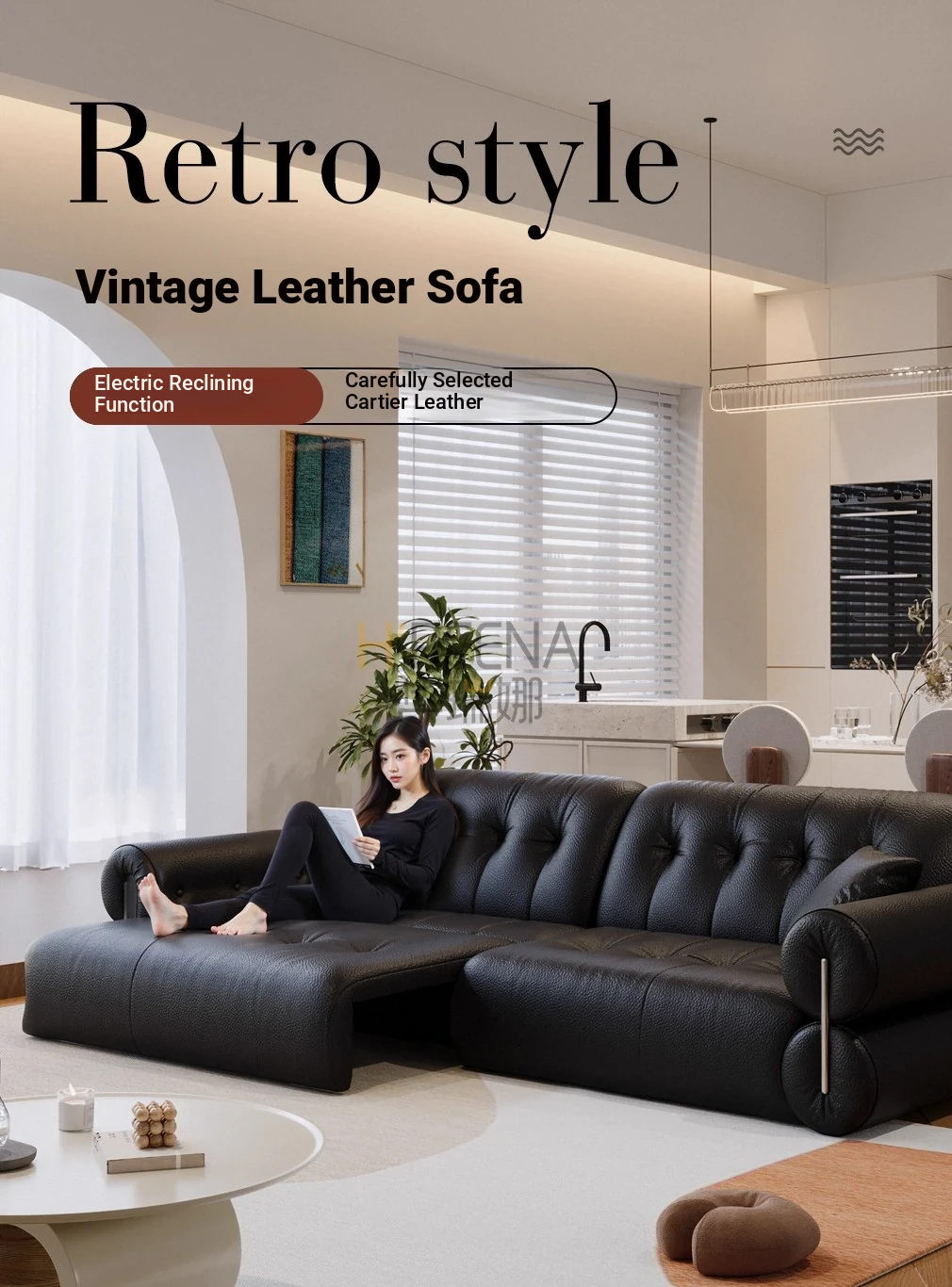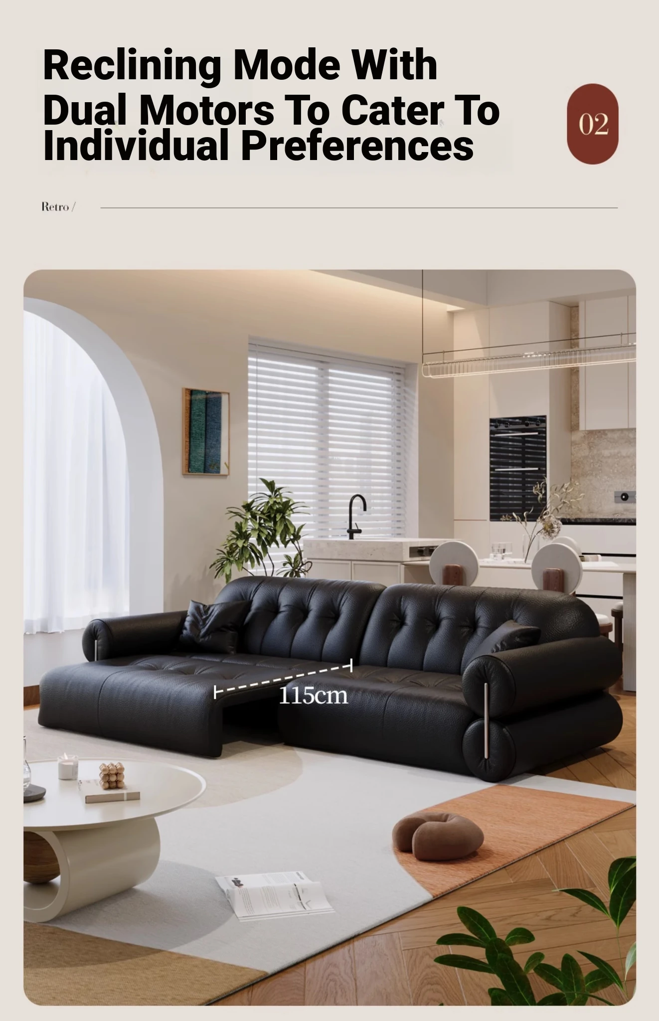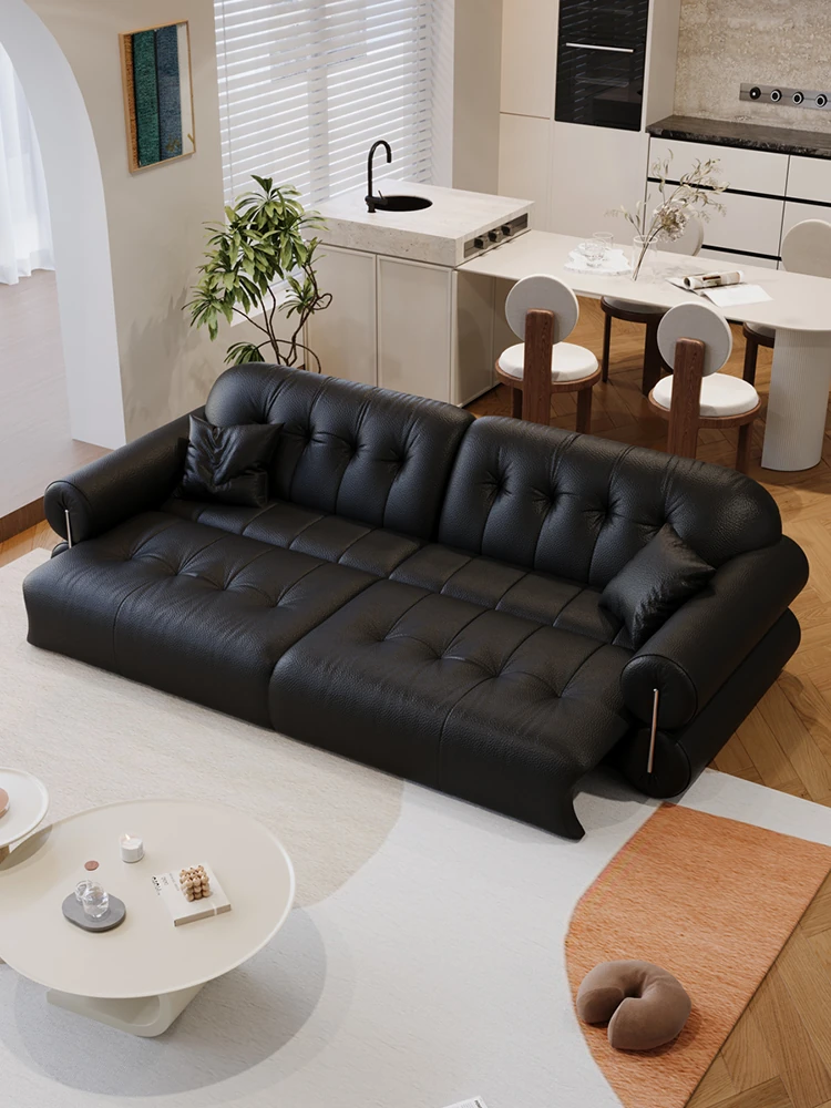 French Vintage Designer Electric Retractable First-Class Black Sugar Cloud Leather Chaise Lounge - Stylish Wall-Free Sofa for Ultimate Comfort