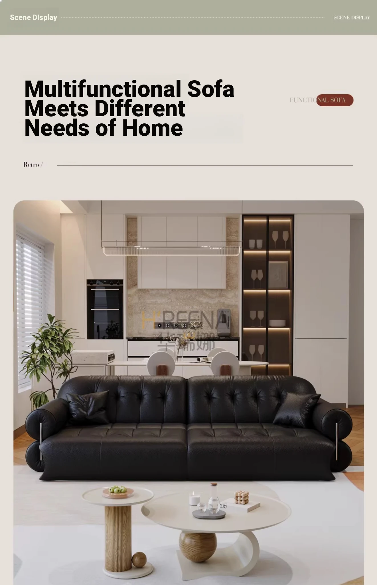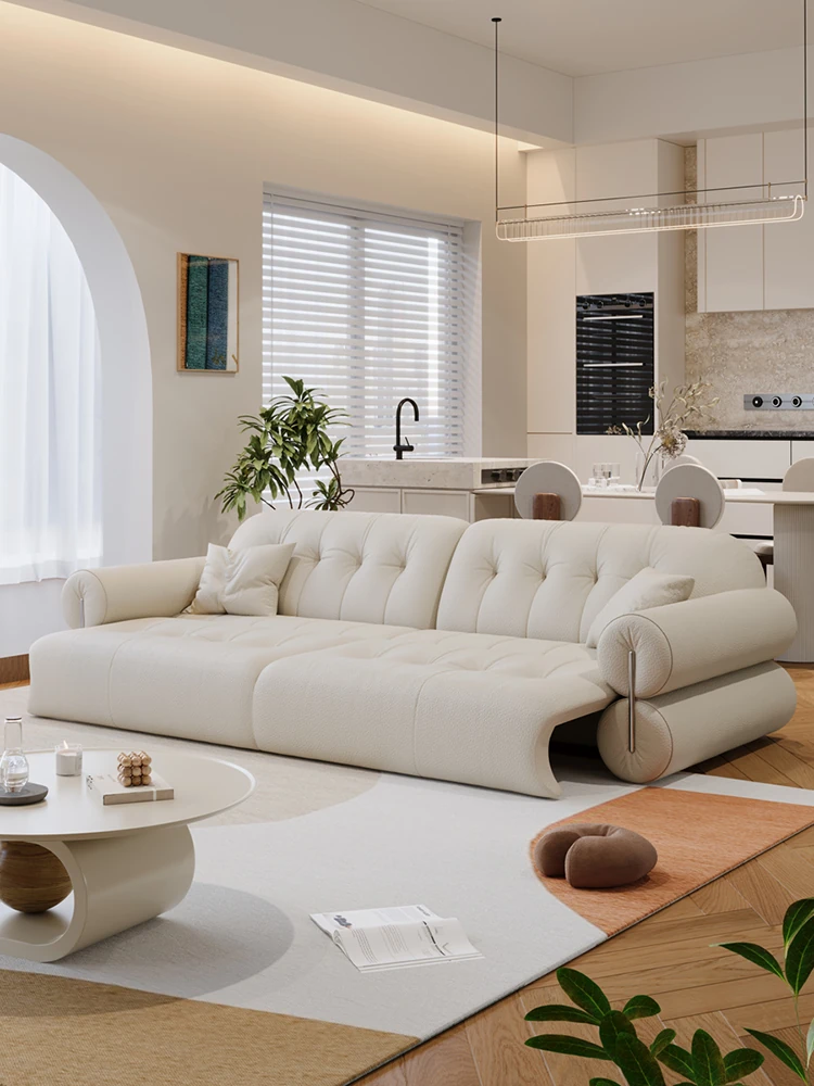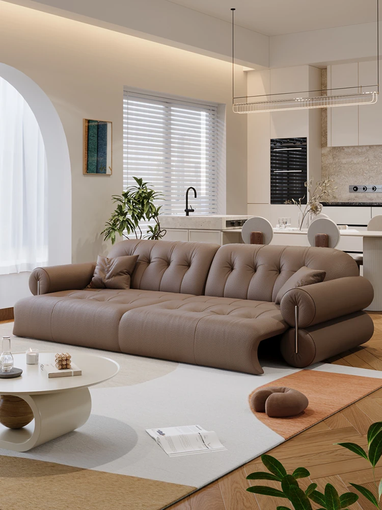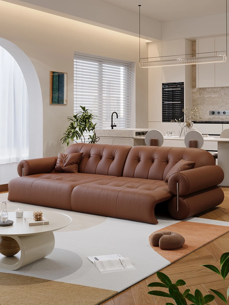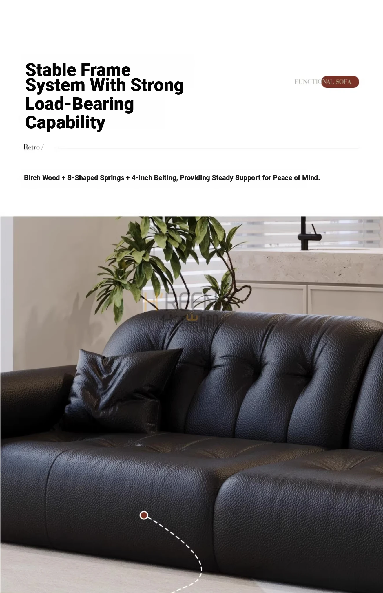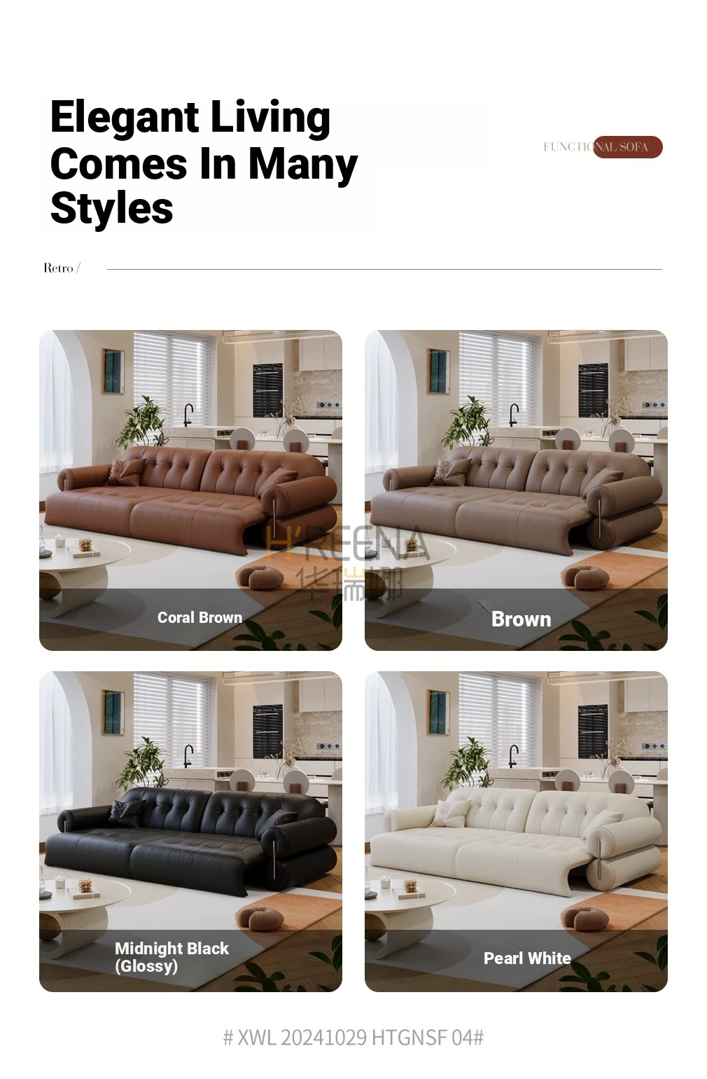 French Vintage Designer Electric Retractable First-Class Black Sugar Cloud Leather Chaise Lounge - Stylish Wall-Free Sofa for Ultimate Comfort