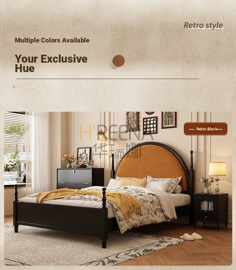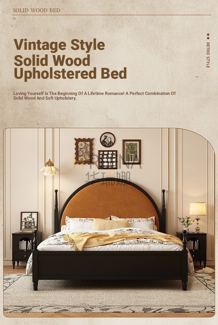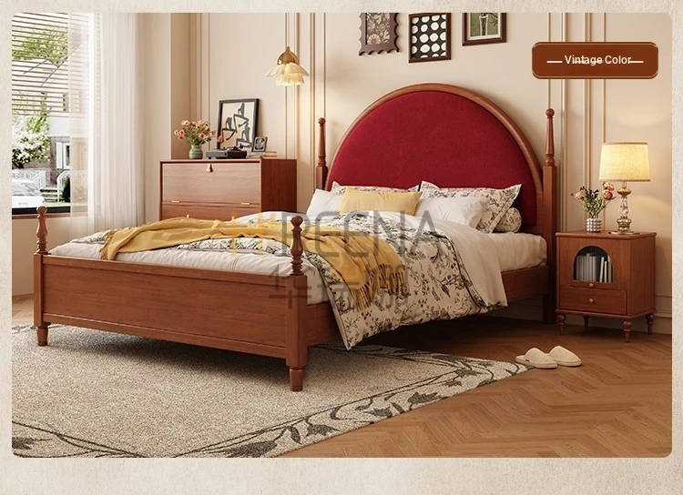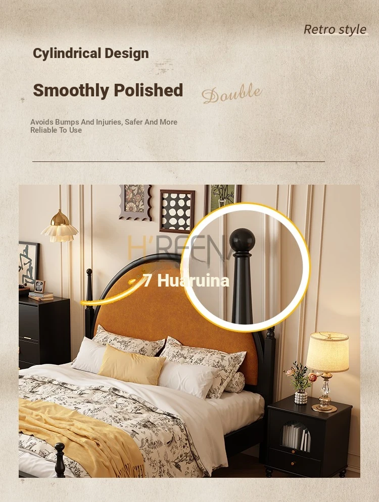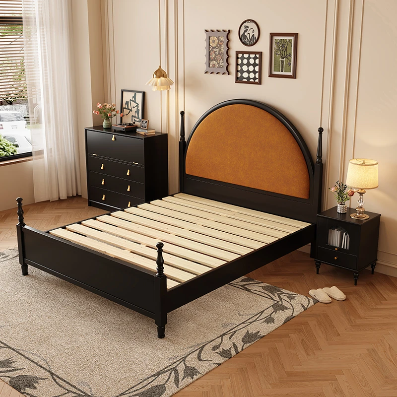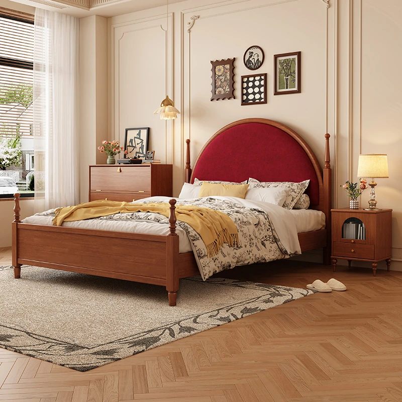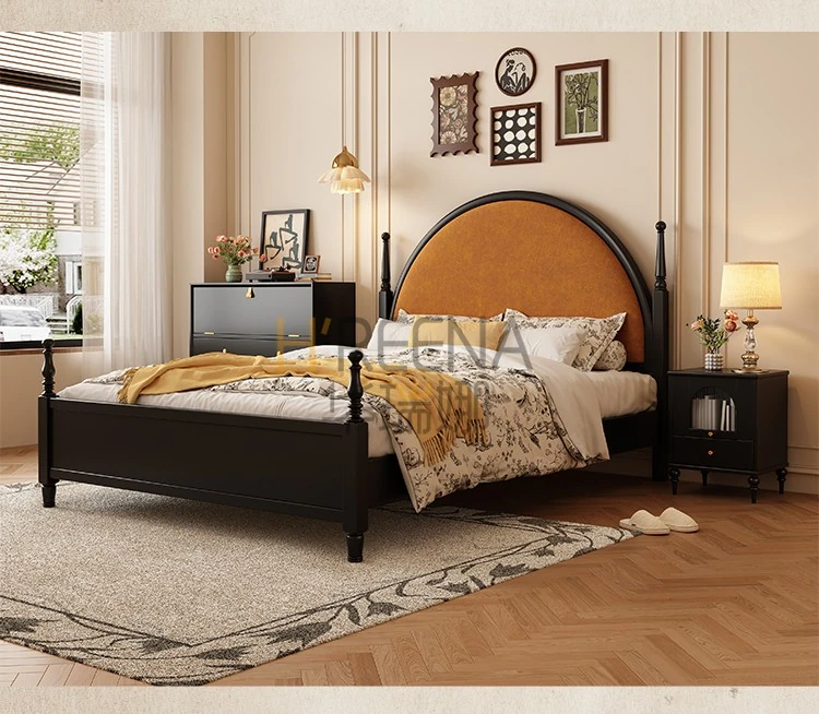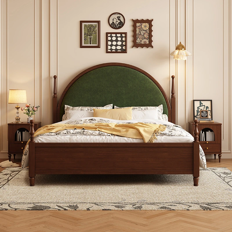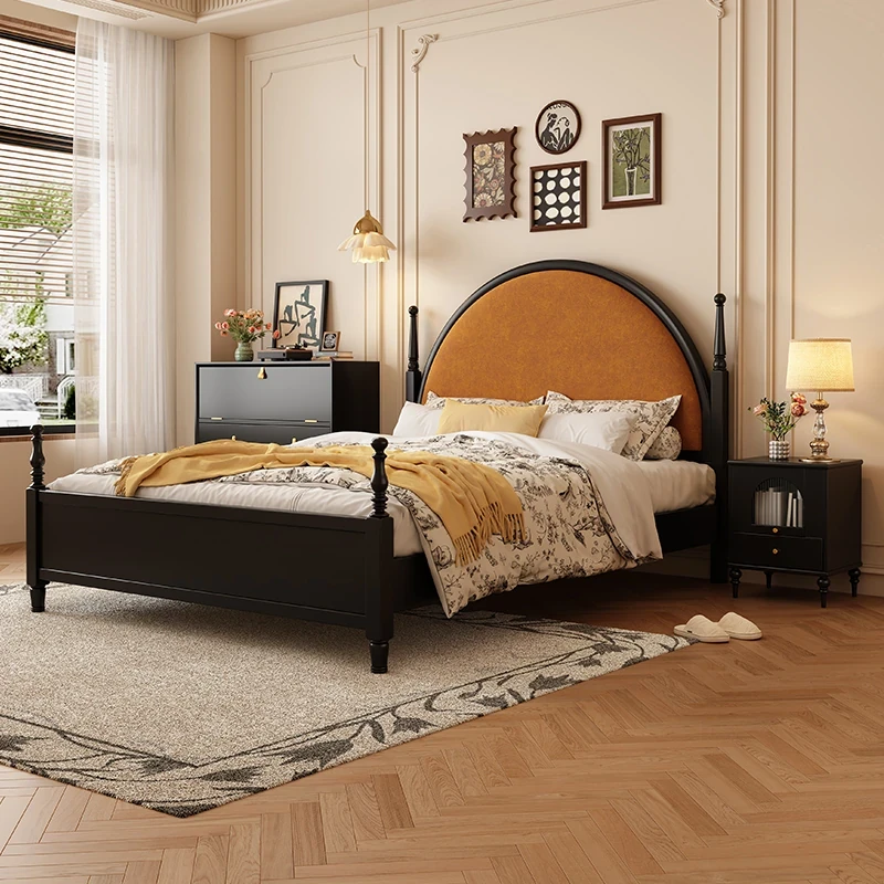 French Vintage Solid Wood Round Moon Soft Pack Roman Column Bed - Perfect for Small Spaces, Ideal for Master and Guest Bedrooms, Luxurious Wedding Bed Design