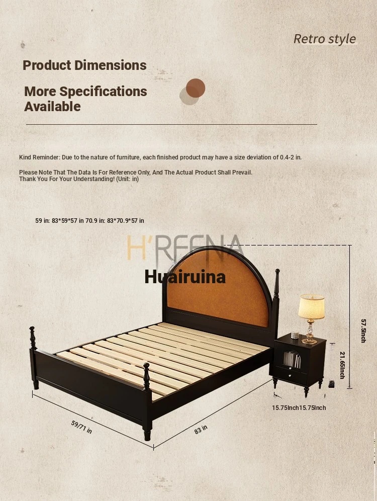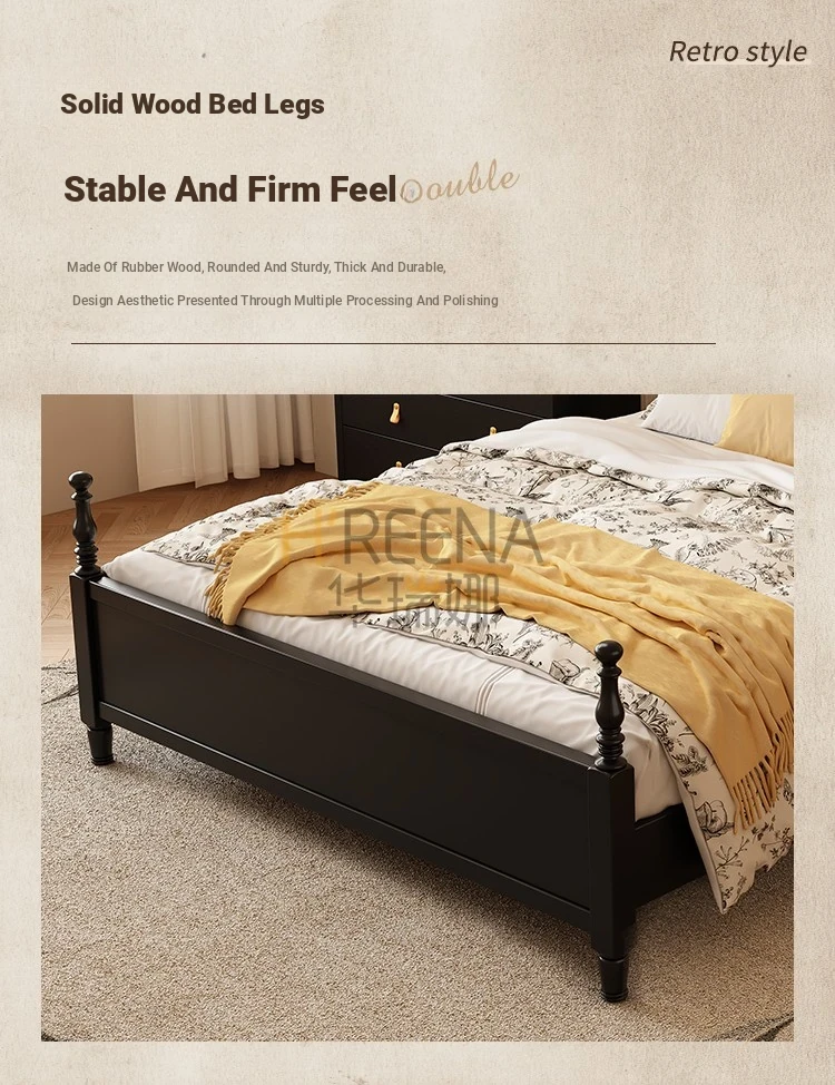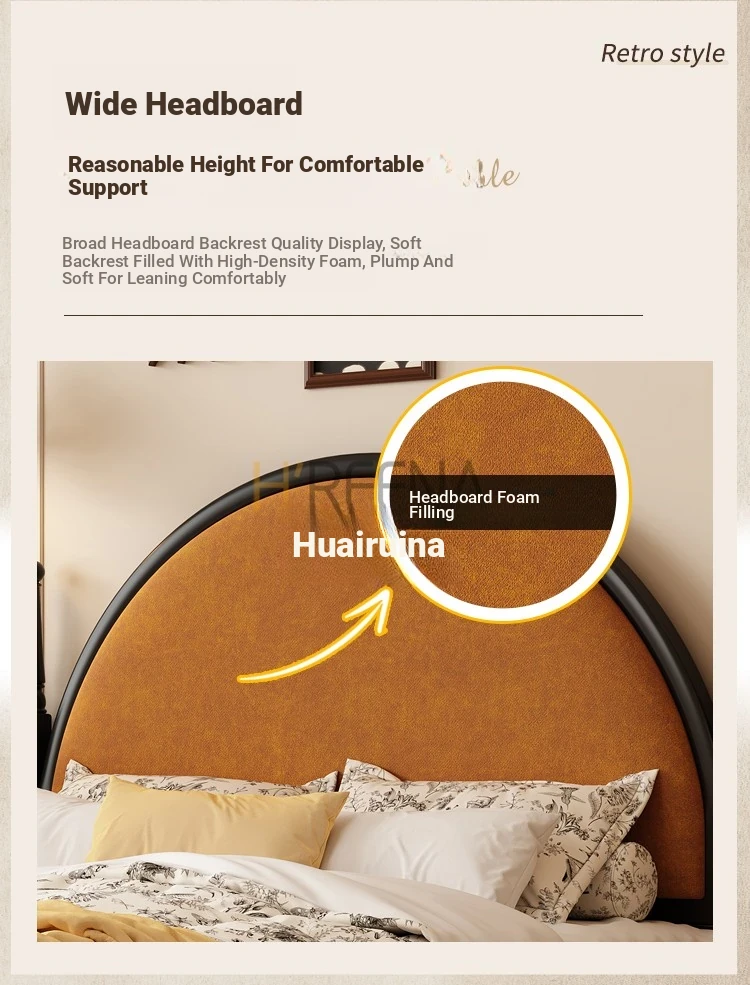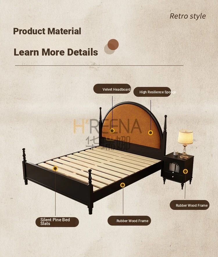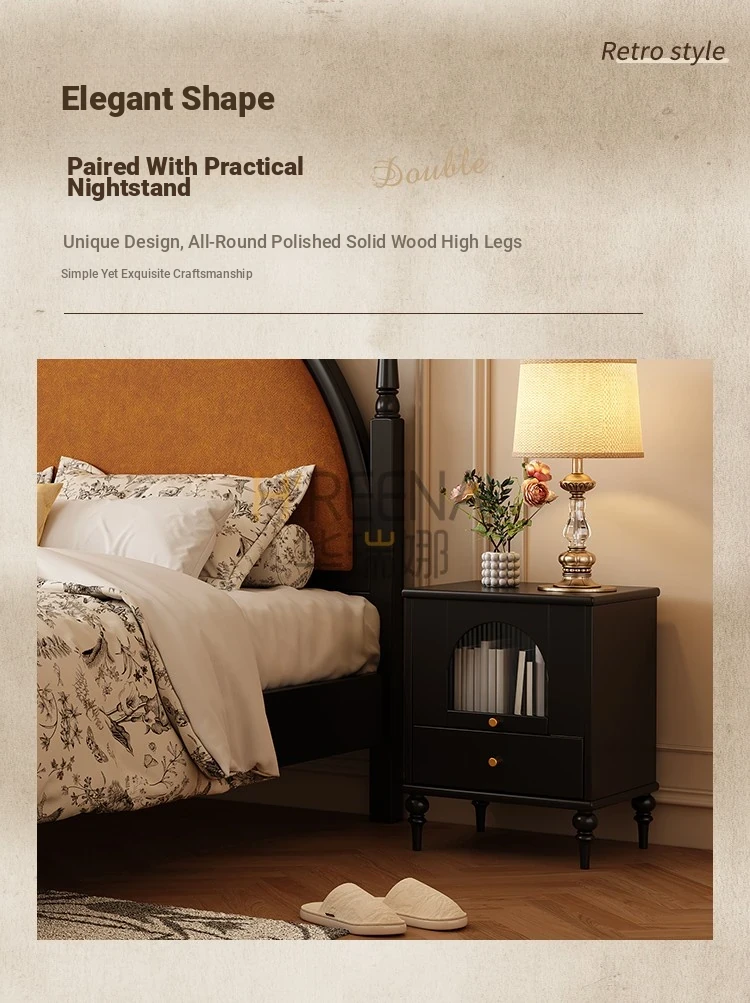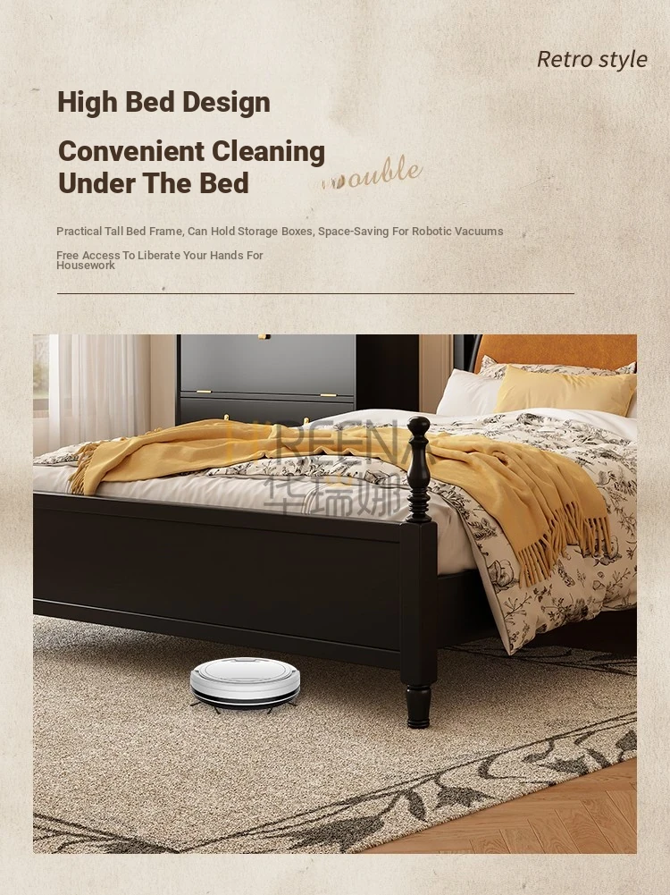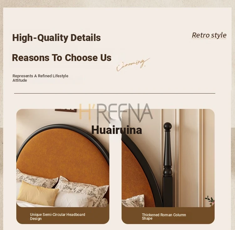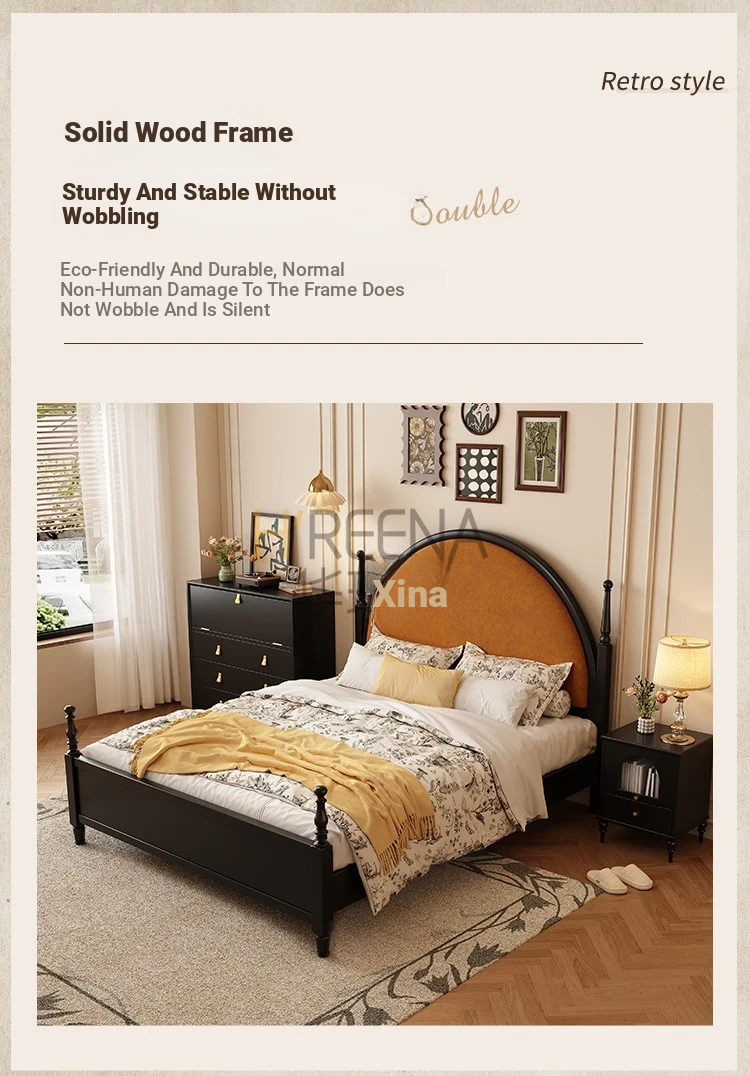 French Vintage Solid Wood Round Moon Soft Pack Roman Column Bed - Perfect for Small Spaces, Ideal for Master and Guest Bedrooms, Luxurious Wedding Bed Design