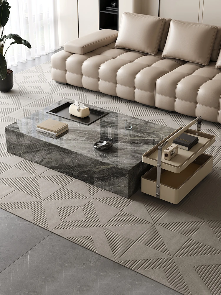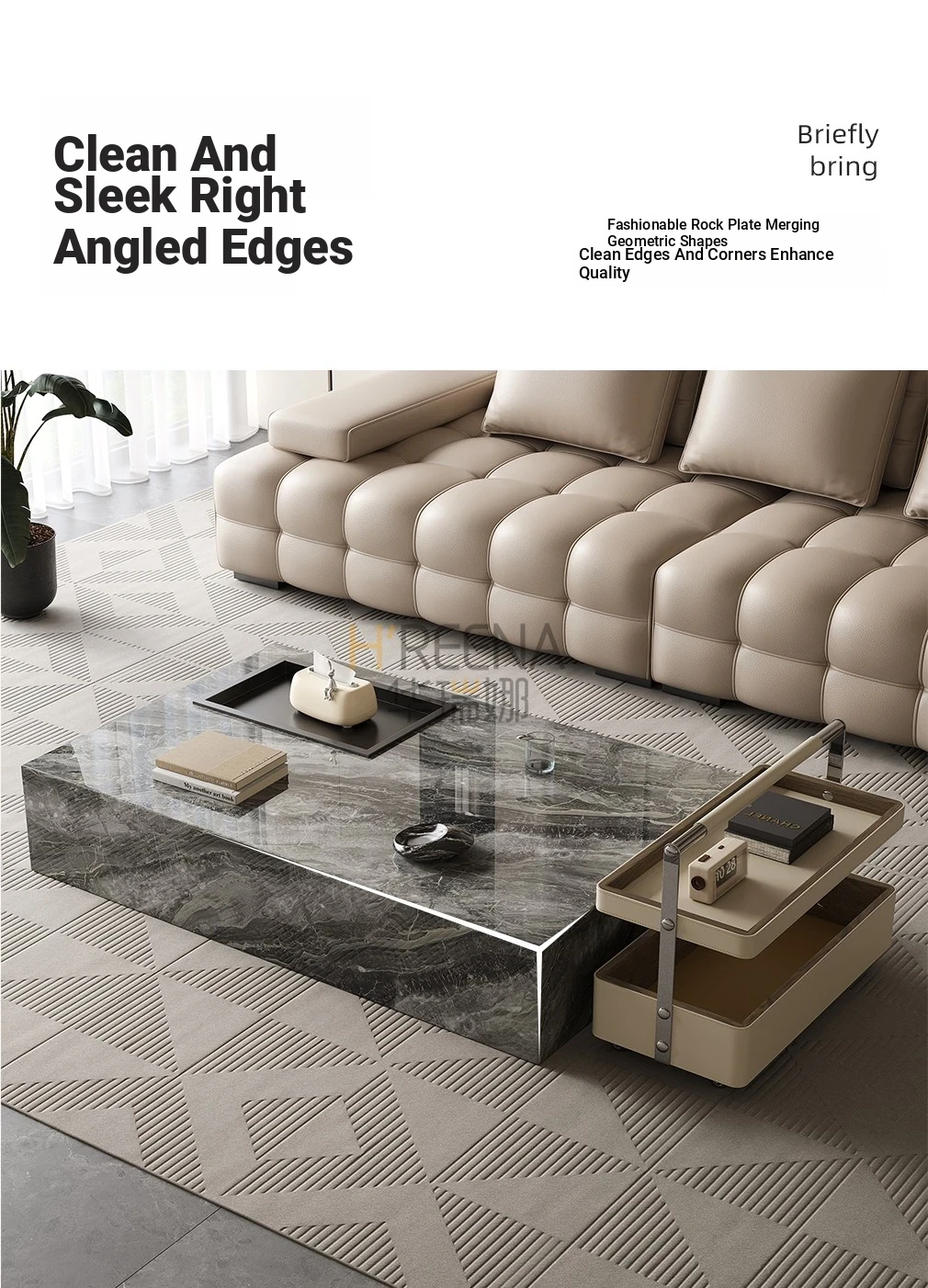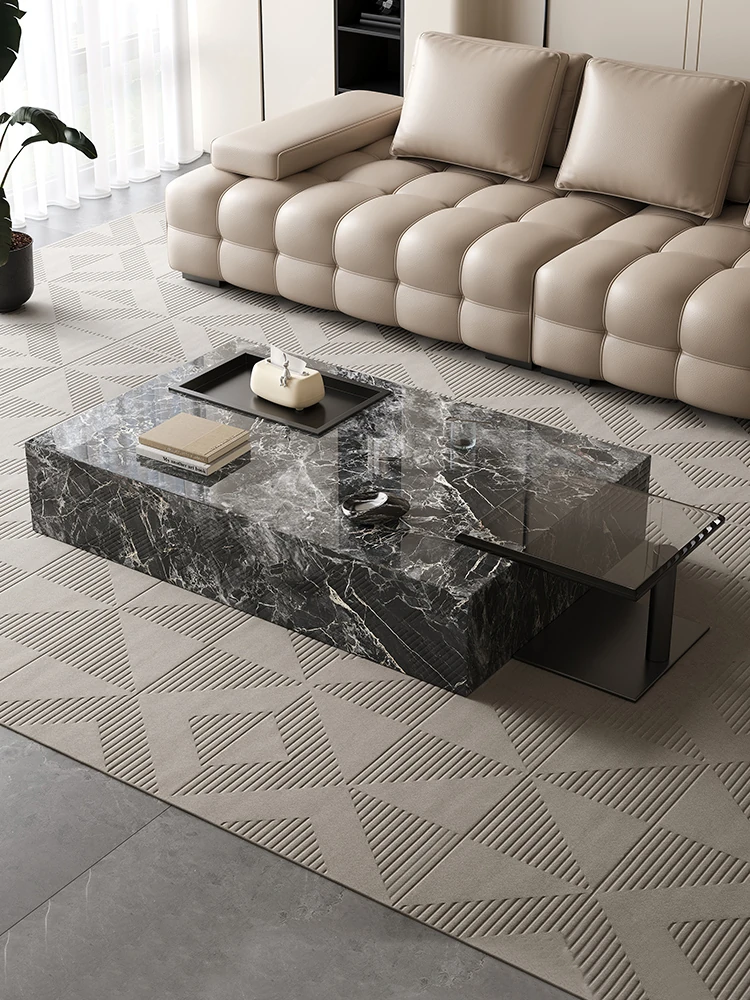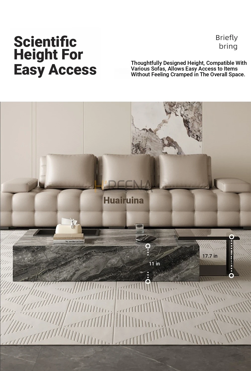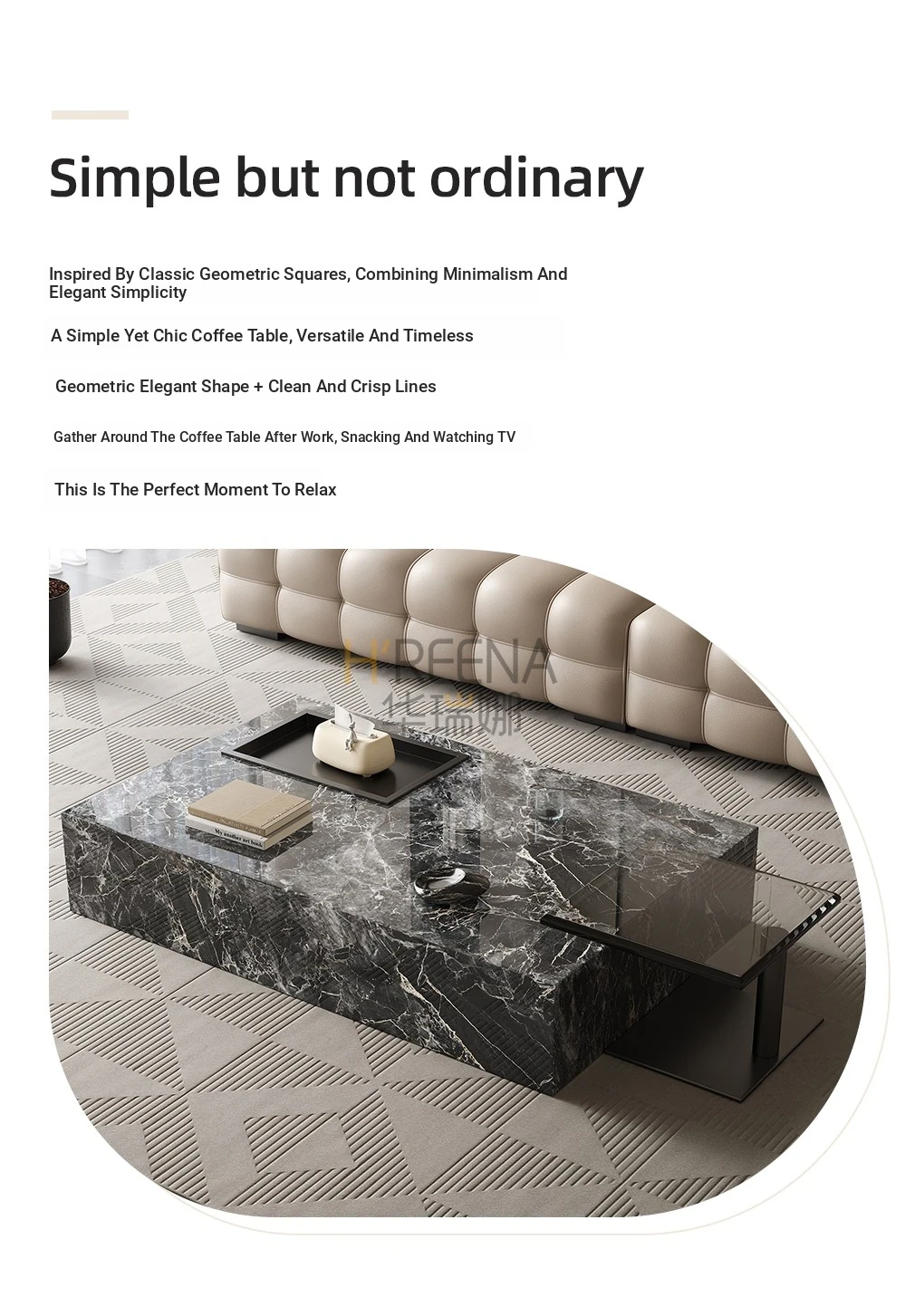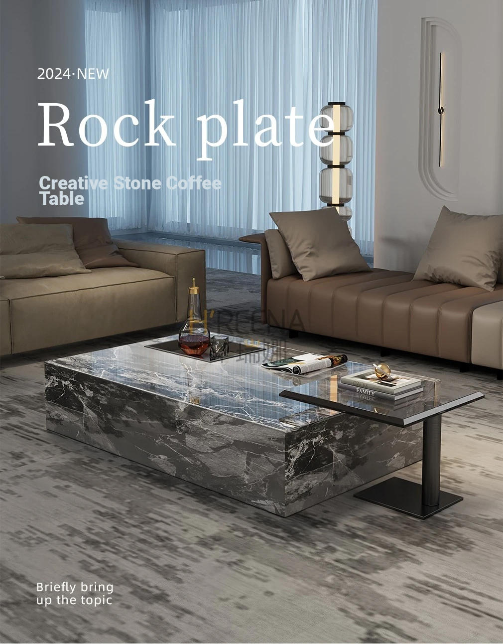 Italian Minimalist Designer Coffee Table – Luxurious Rectangular Floor Coffee Table for Small Spaces – Perfect for Living Room and Home Decor with Elegant Stone Surface
