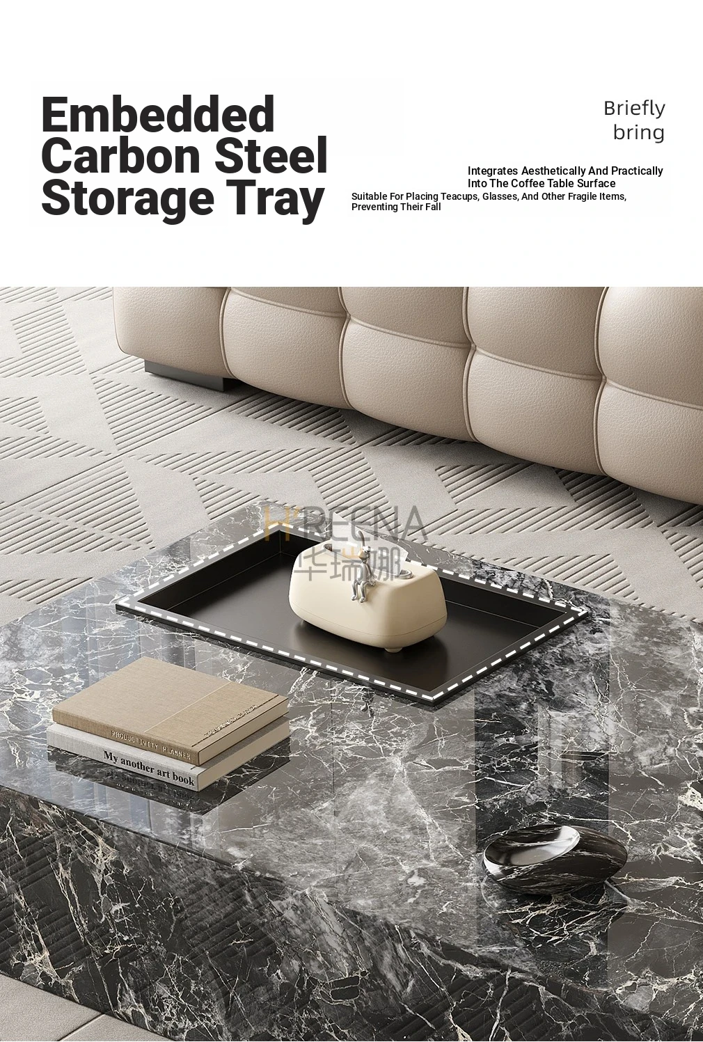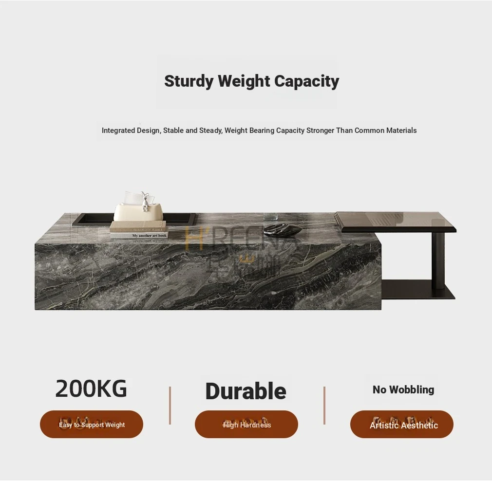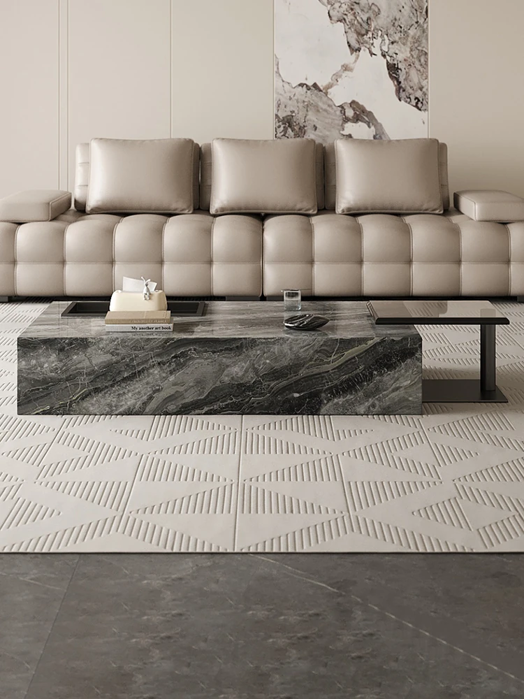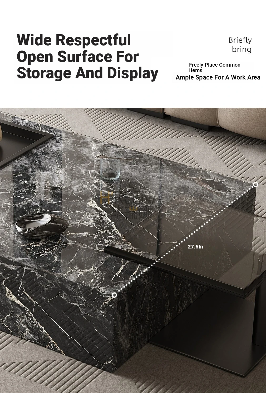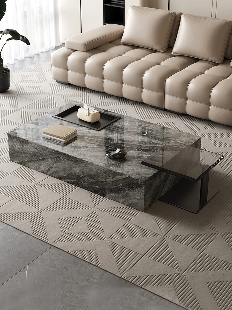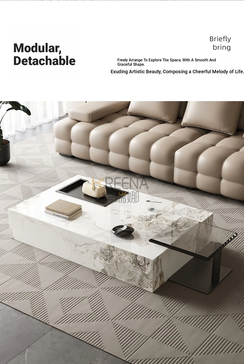 Italian Minimalist Designer Coffee Table – Luxurious Rectangular Floor Coffee Table for Small Spaces – Perfect for Living Room and Home Decor with Elegant Stone Surface