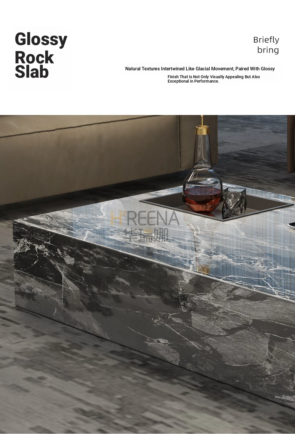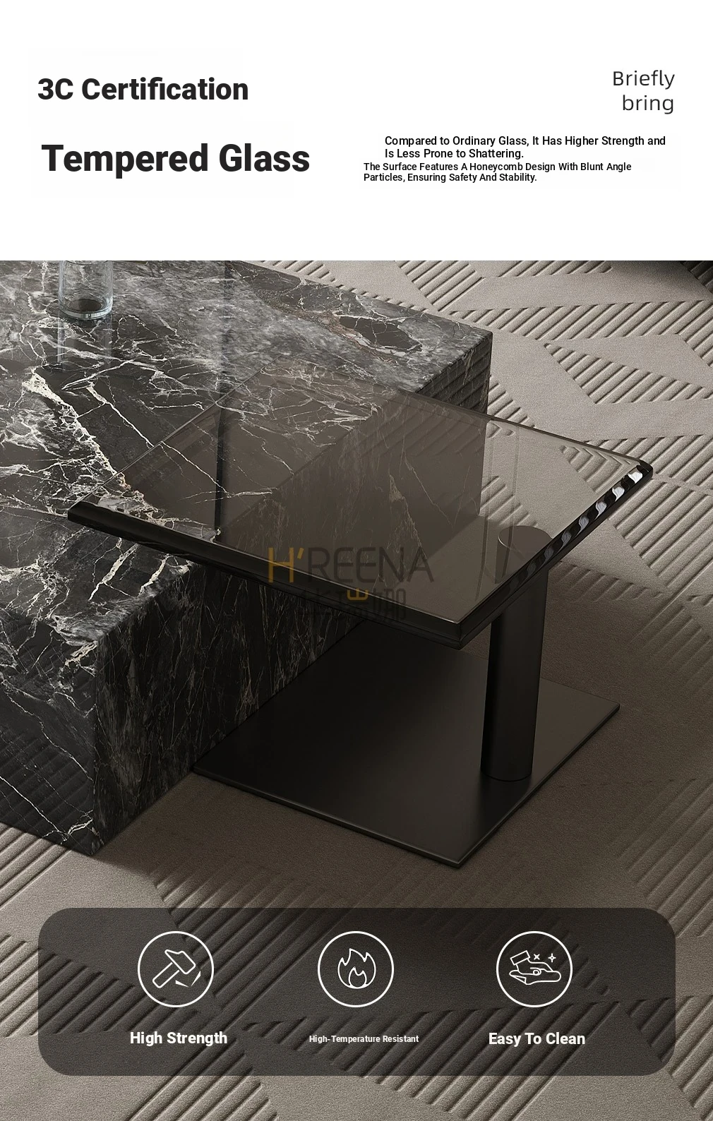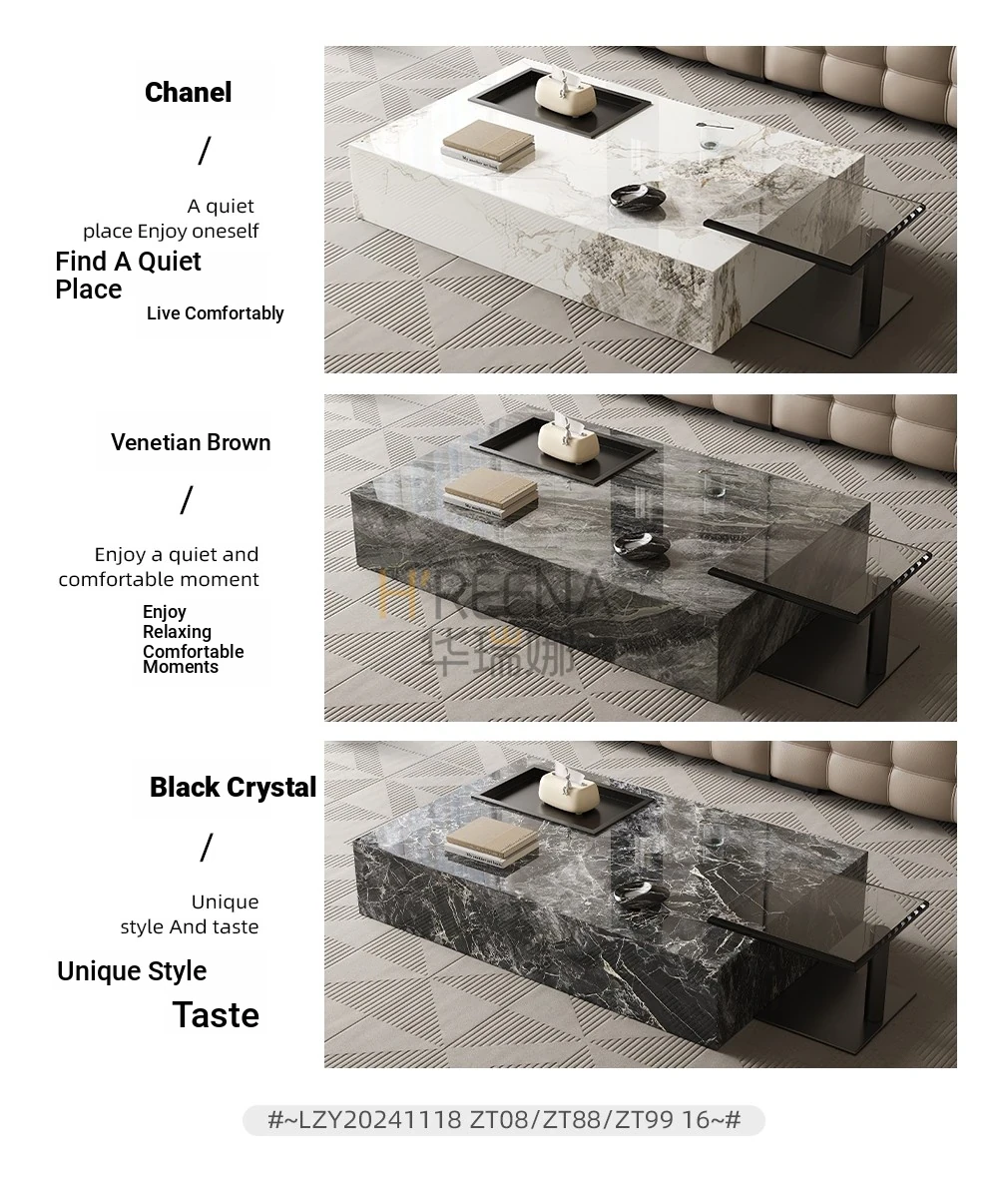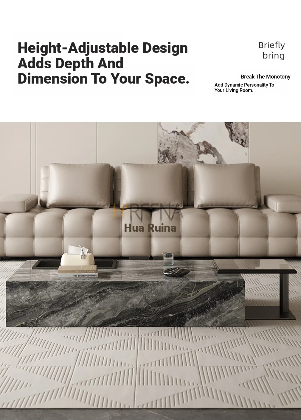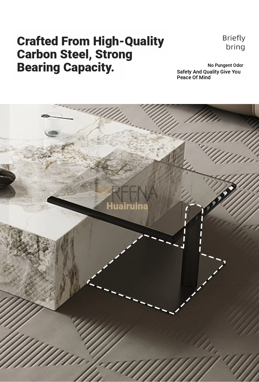 Italian Minimalist Designer Coffee Table – Luxurious Rectangular Floor Coffee Table for Small Spaces – Perfect for Living Room and Home Decor with Elegant Stone Surface