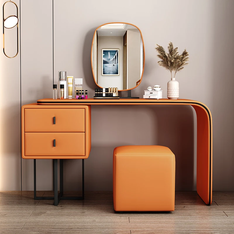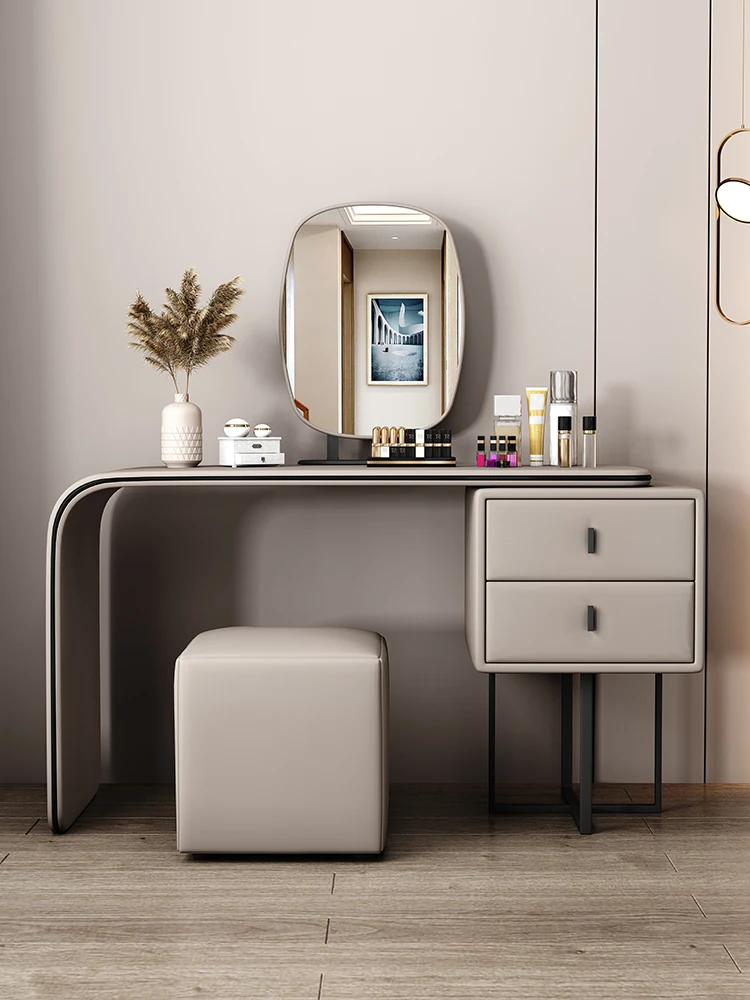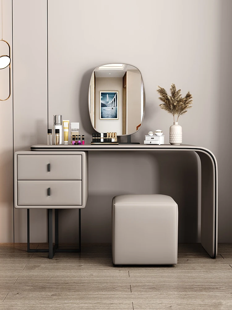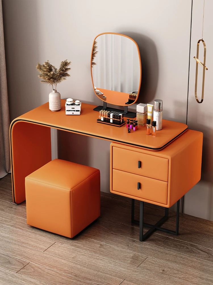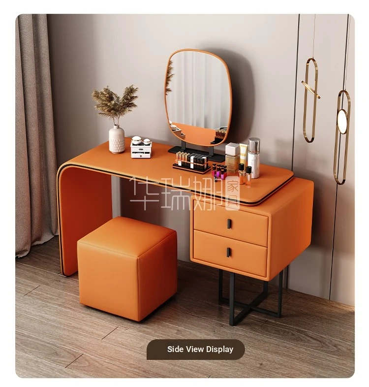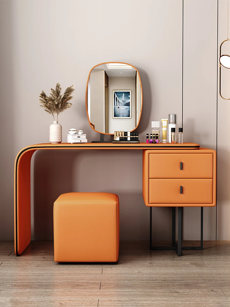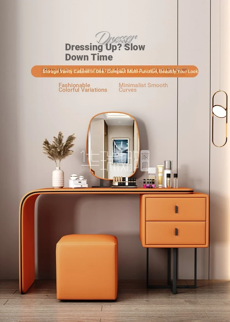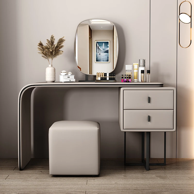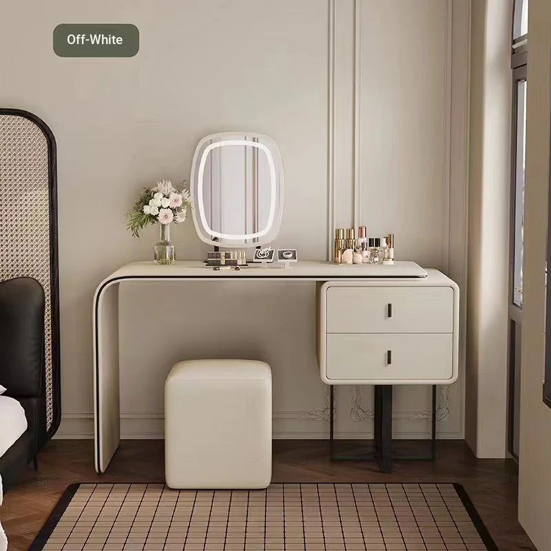 Modern Minimalist Cream Vanity with Integrated Expandable Storage - Sleek Dressing Table for Small Spaces, Perfect for Bedrooms and Chic Décor.