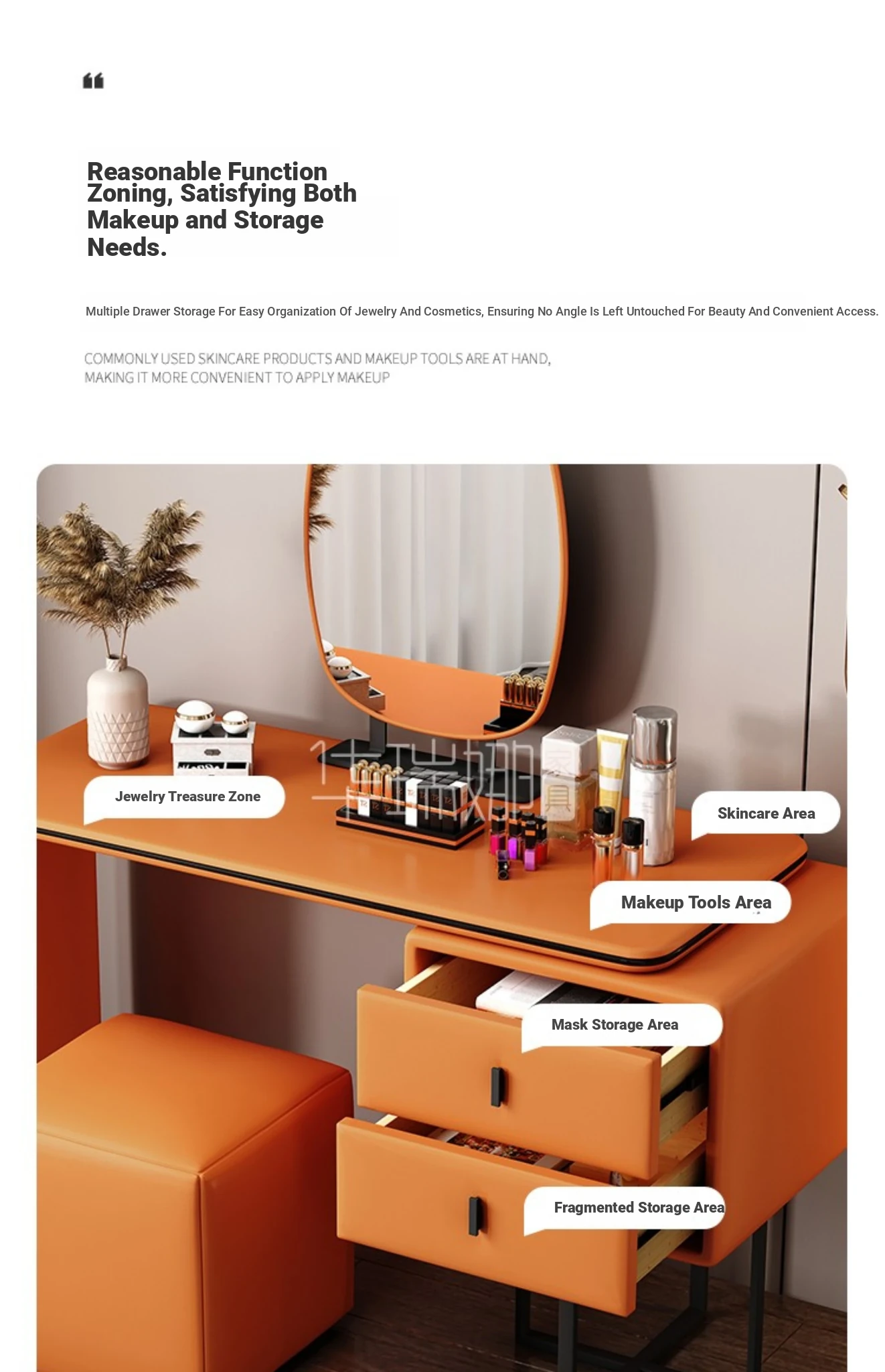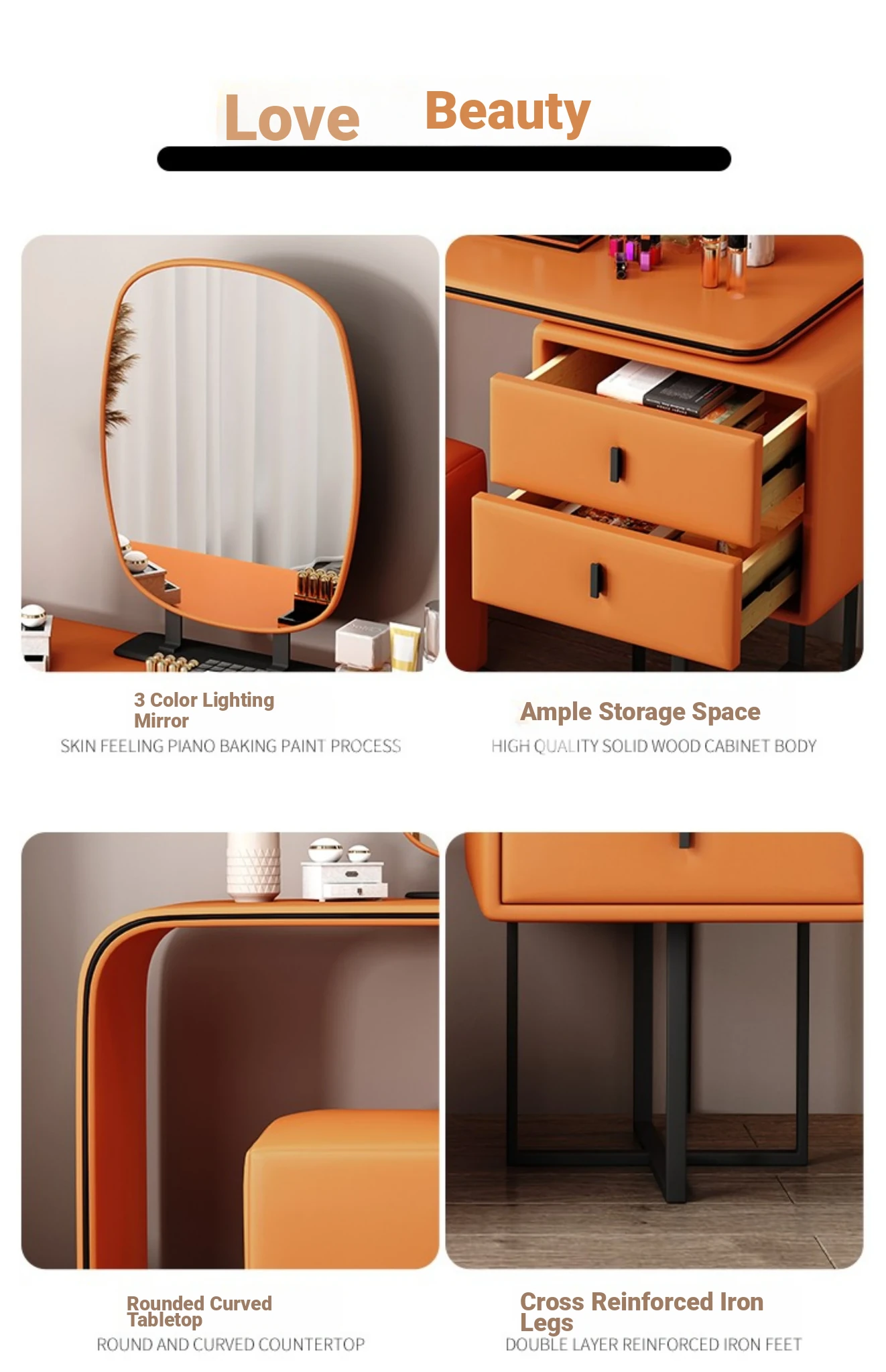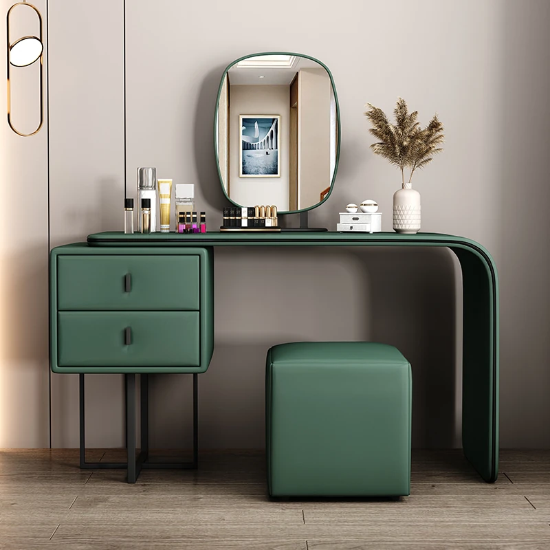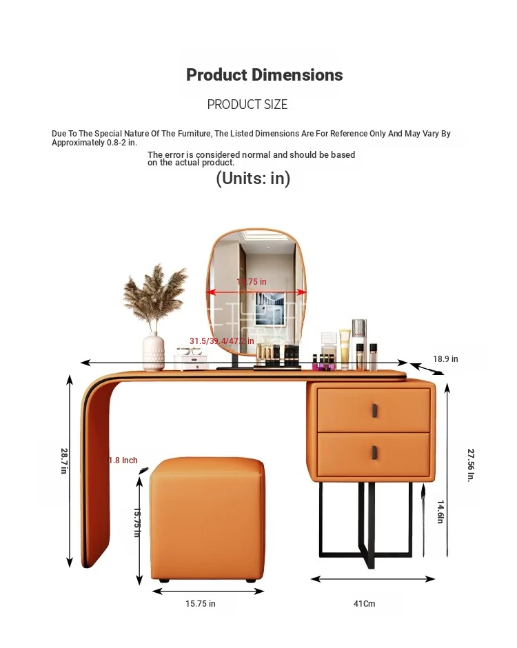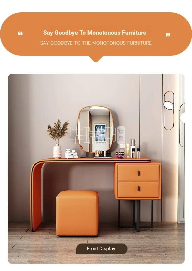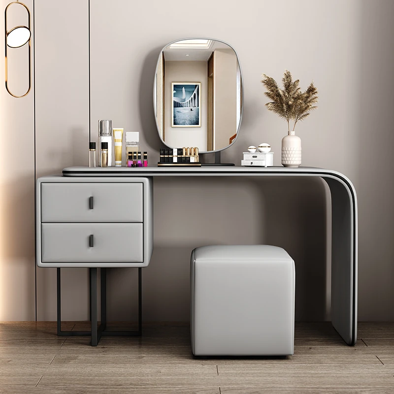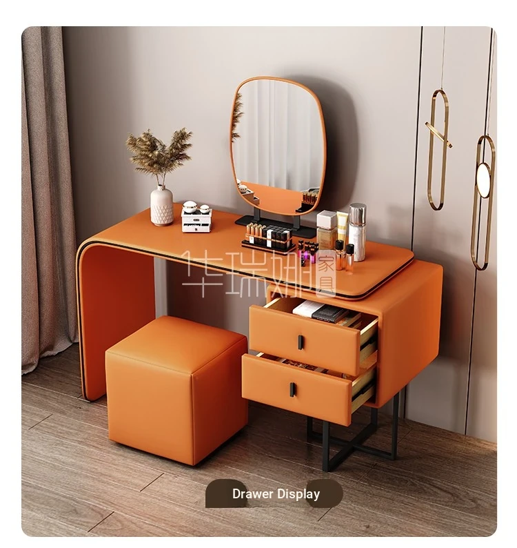 Modern Minimalist Cream Vanity with Integrated Expandable Storage - Sleek Dressing Table for Small Spaces, Perfect for Bedrooms and Chic Décor.
