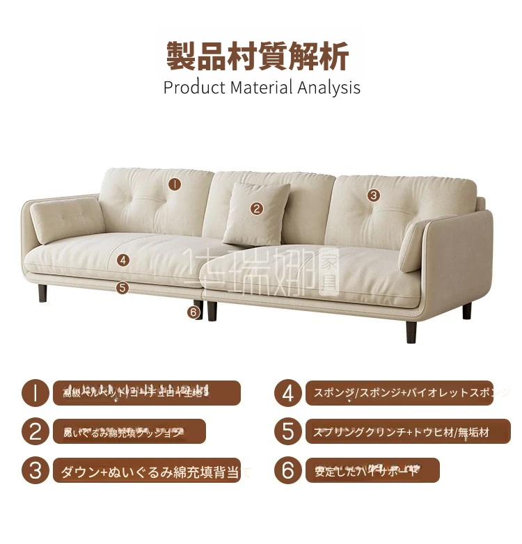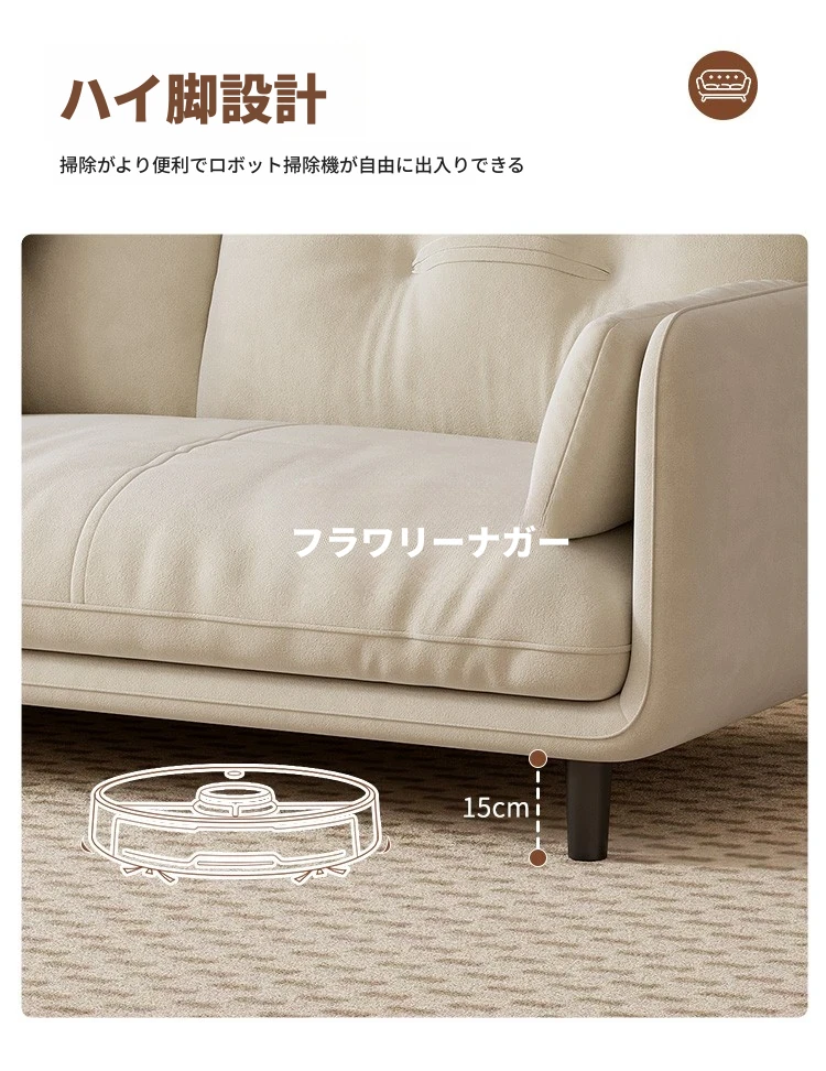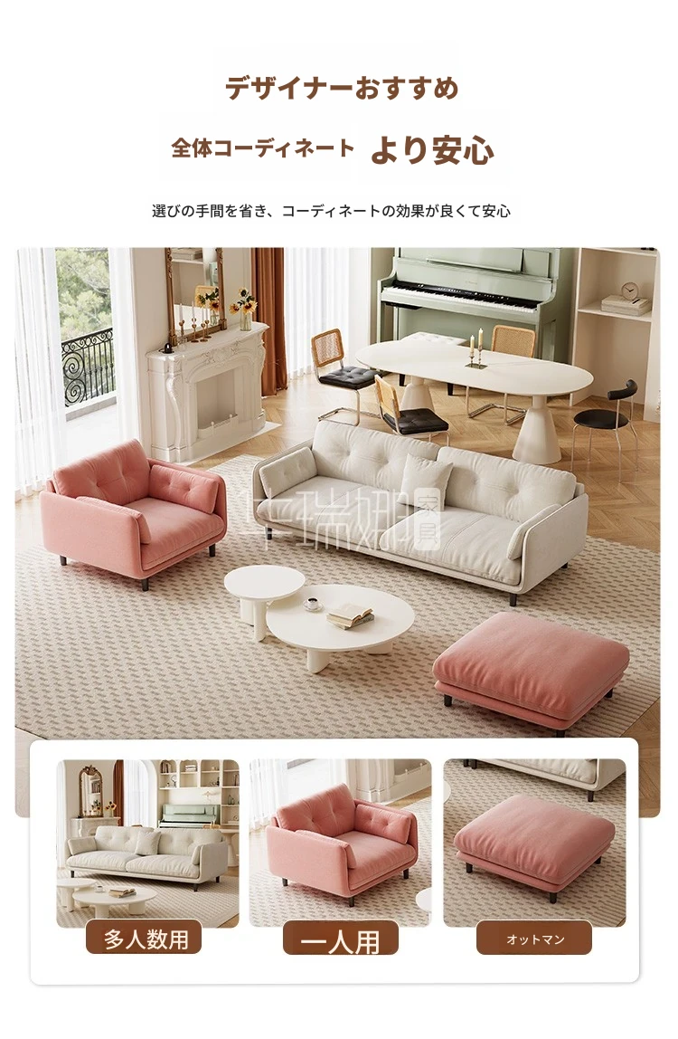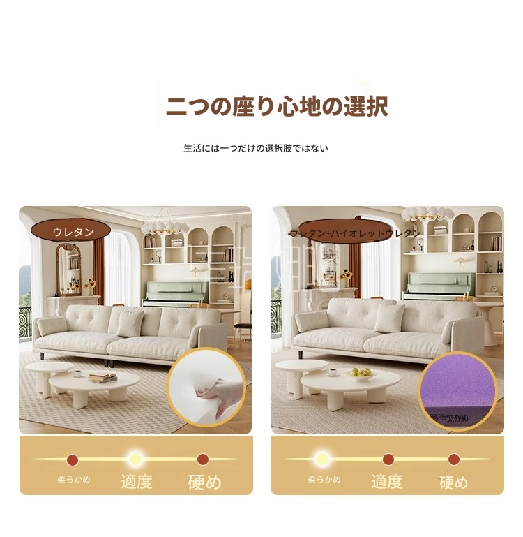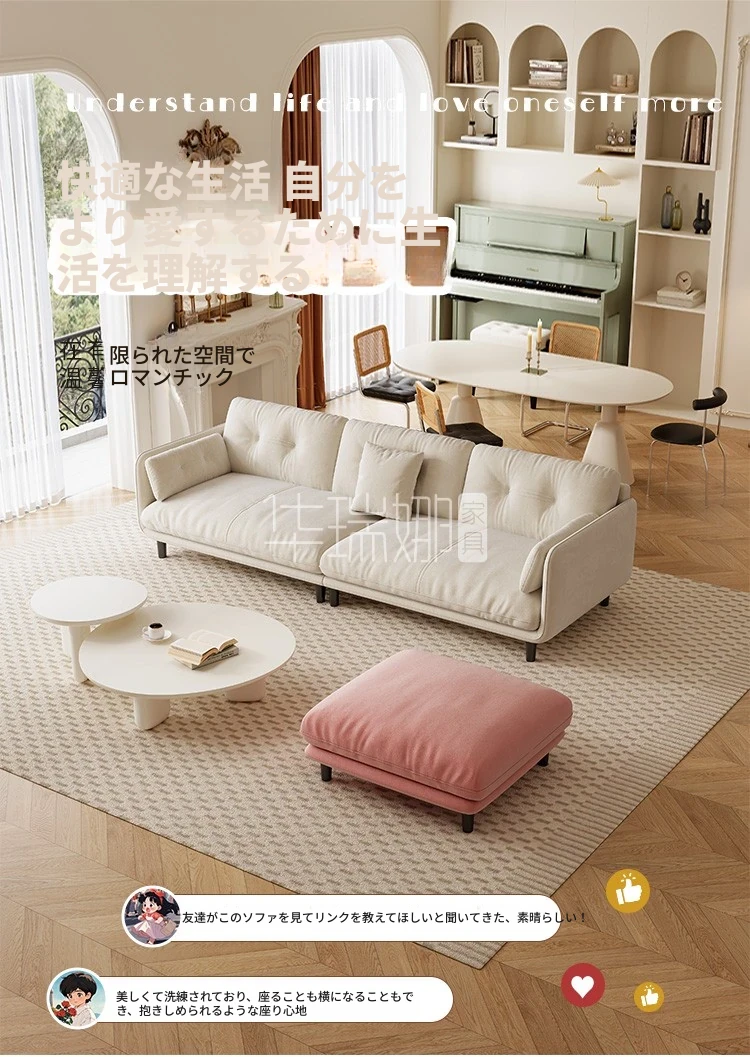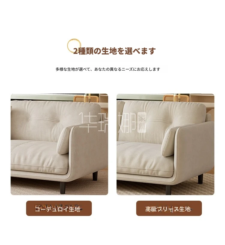 クリーミーな風合いの新作!トレンディなファブリックソファ【モダン&シンプル】小型リビングに最適な3人掛け・4人掛け直排ソファで、快適な空間を演出。あなたのリビングにぴったりのスタイルを!