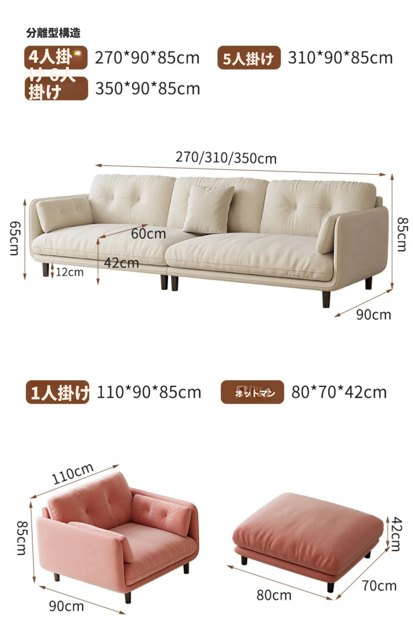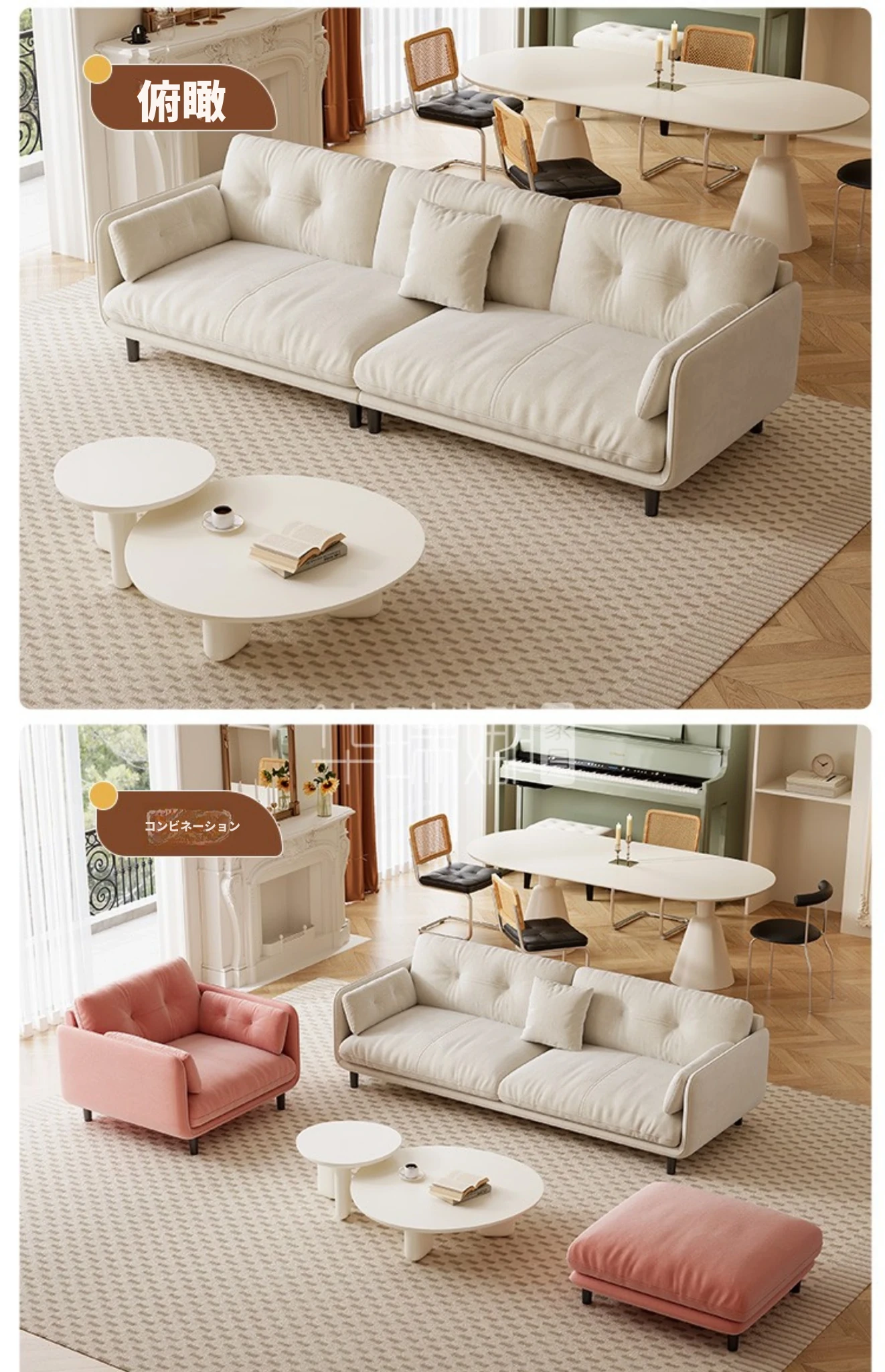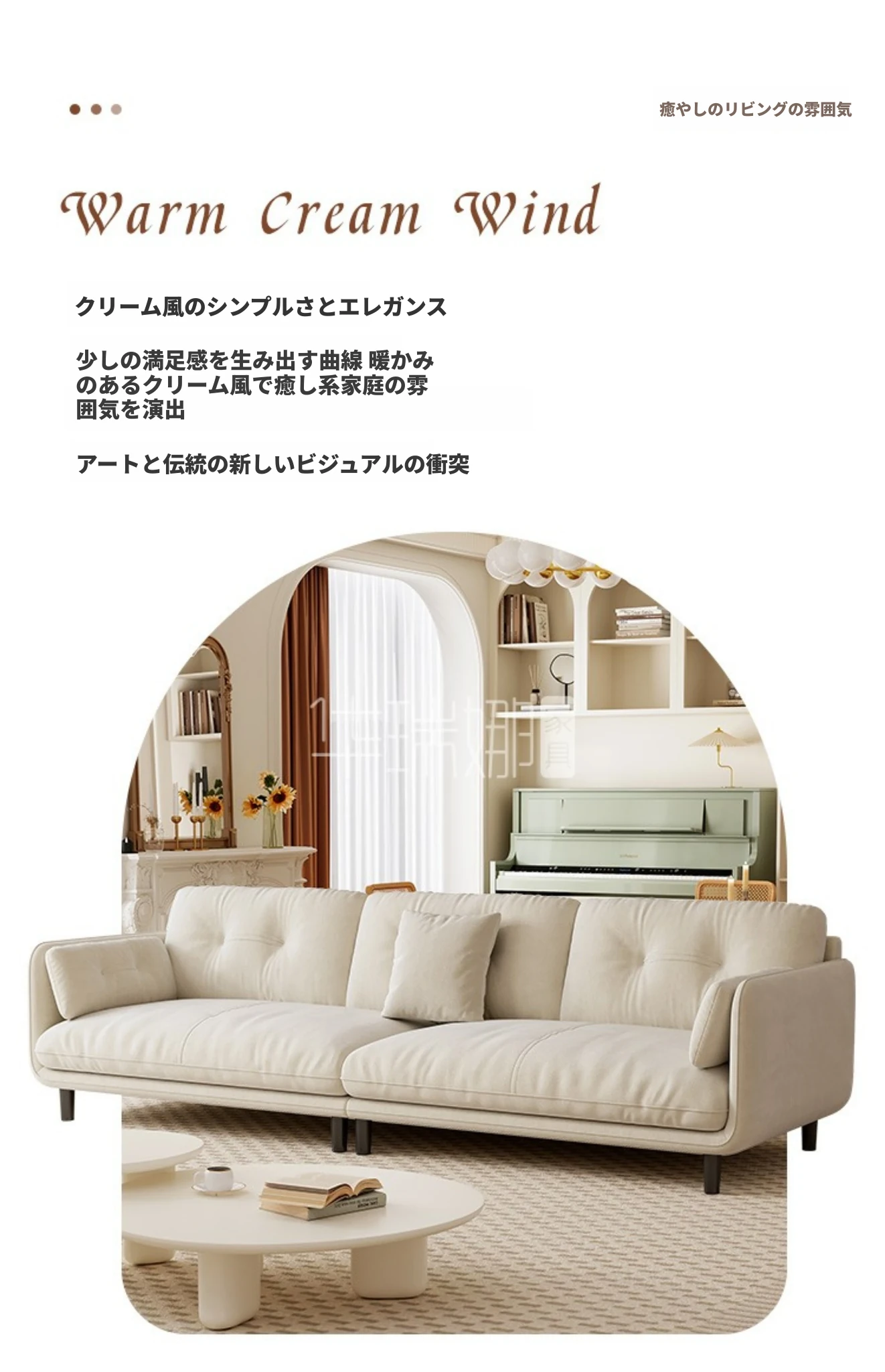 クリーミーな風合いの新作!トレンディなファブリックソファ【モダン&シンプル】小型リビングに最適な3人掛け・4人掛け直排ソファで、快適な空間を演出。あなたのリビングにぴったりのスタイルを!