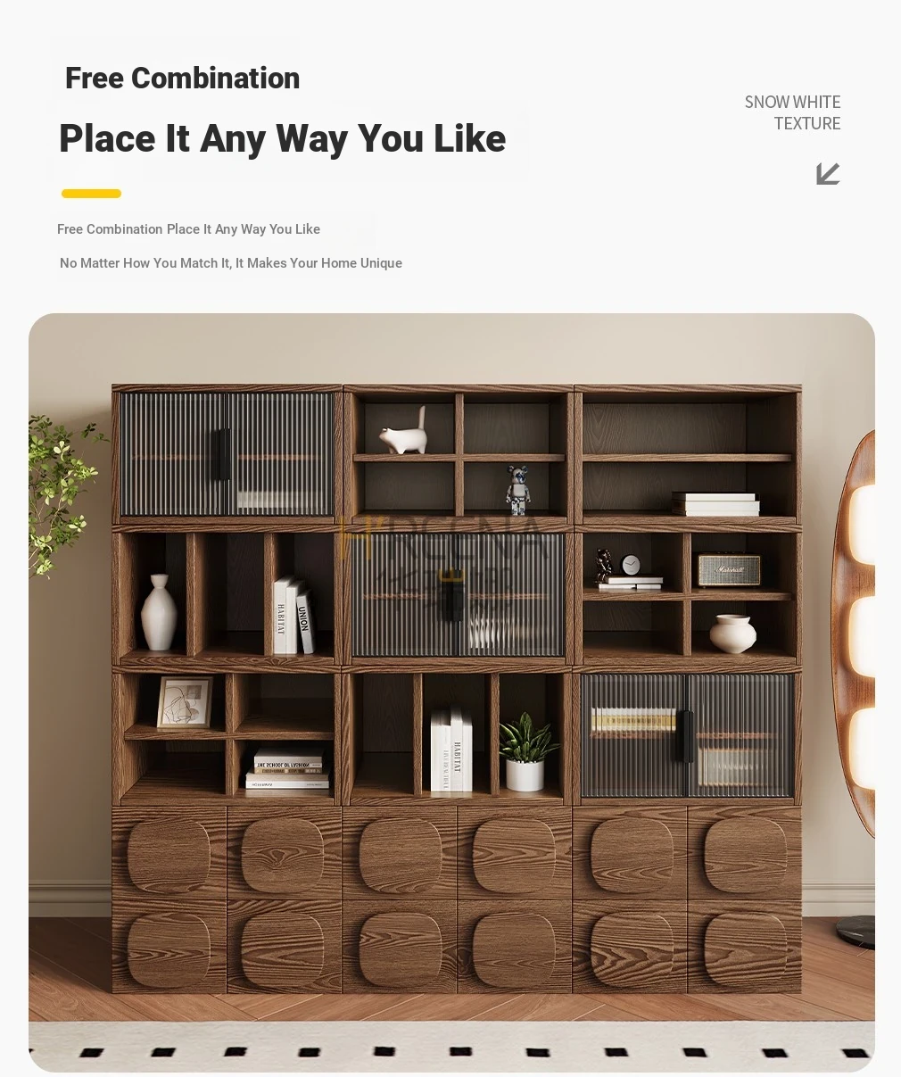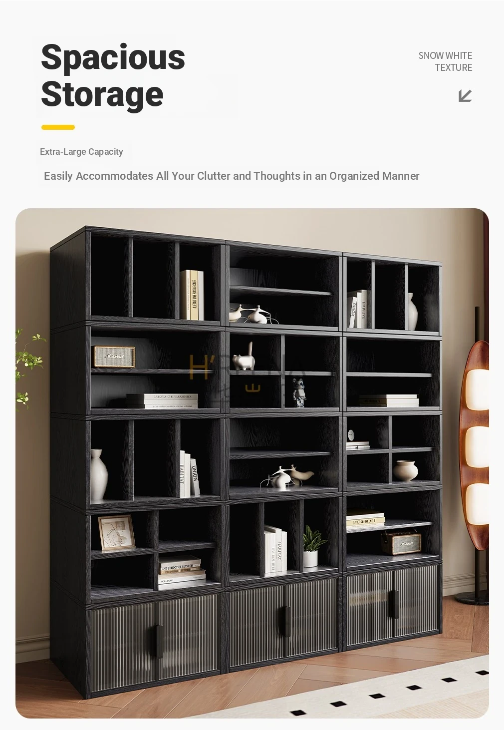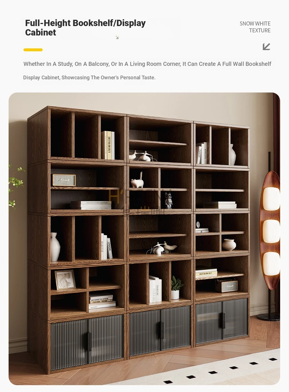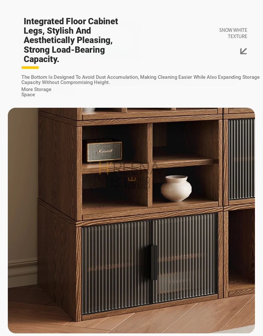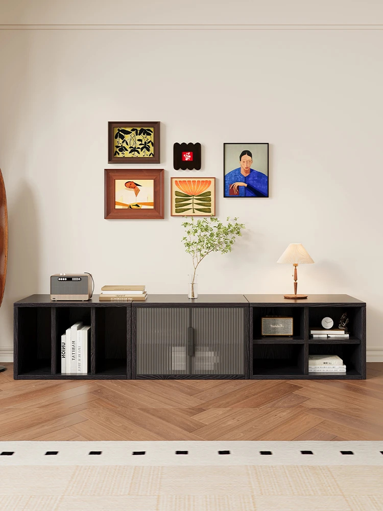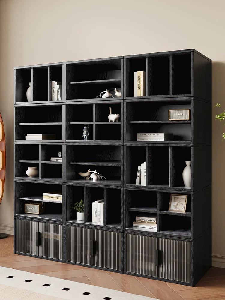 Vintage Black Walnut Modular Display Cabinet - Versatile Solid Wood Living Room TV Stand and Bookshelf with Floor-mounted Design and Stylish Card Door