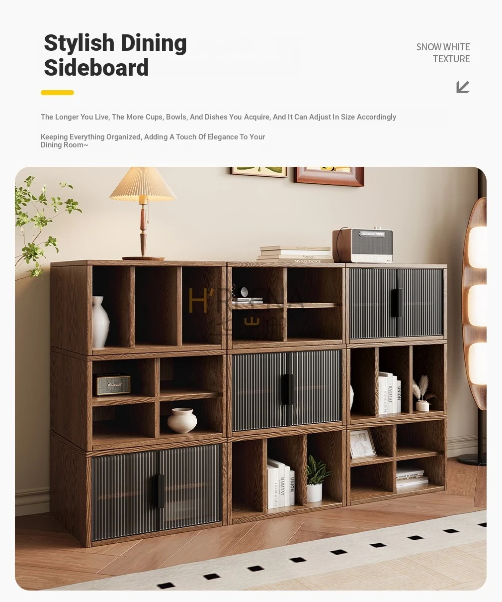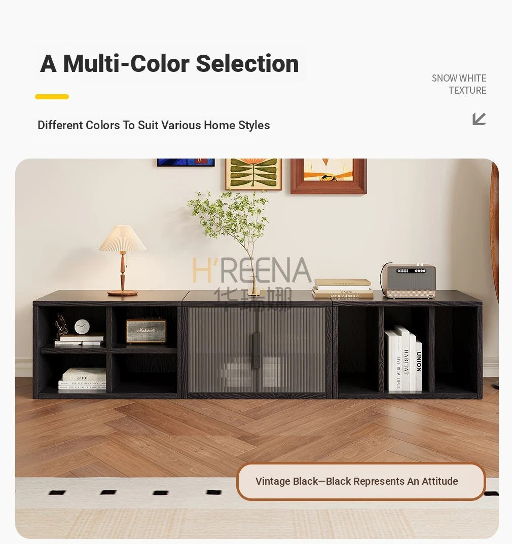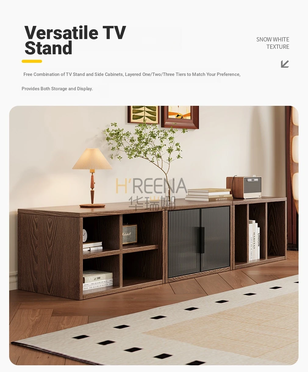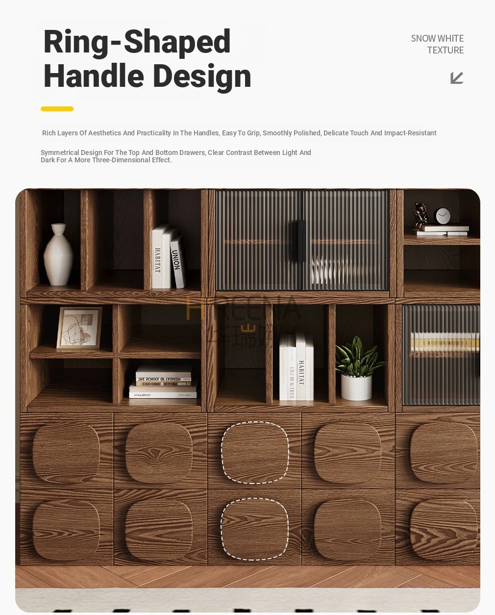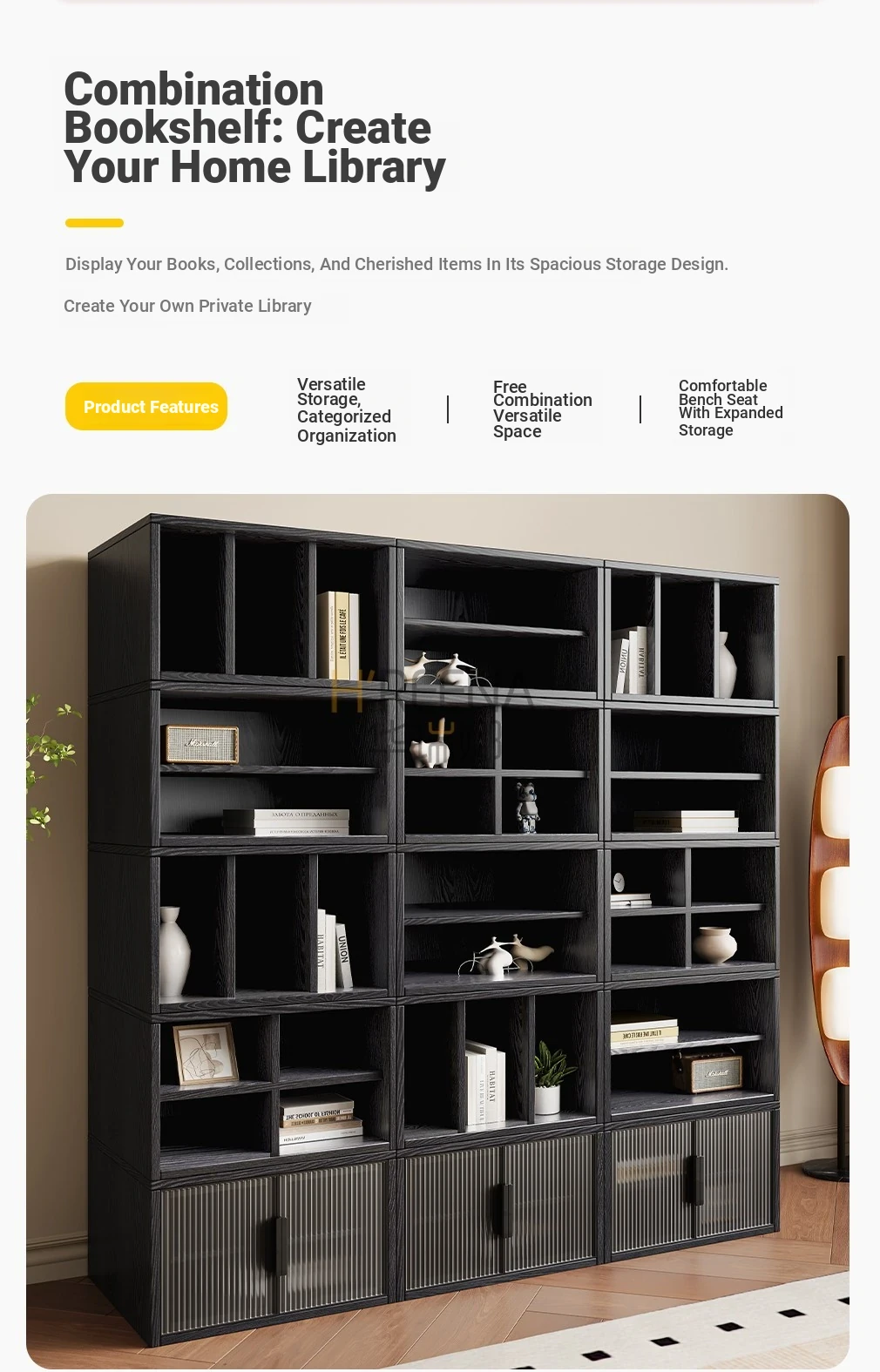 Vintage Black Walnut Modular Display Cabinet - Versatile Solid Wood Living Room TV Stand and Bookshelf with Floor-mounted Design and Stylish Card Door