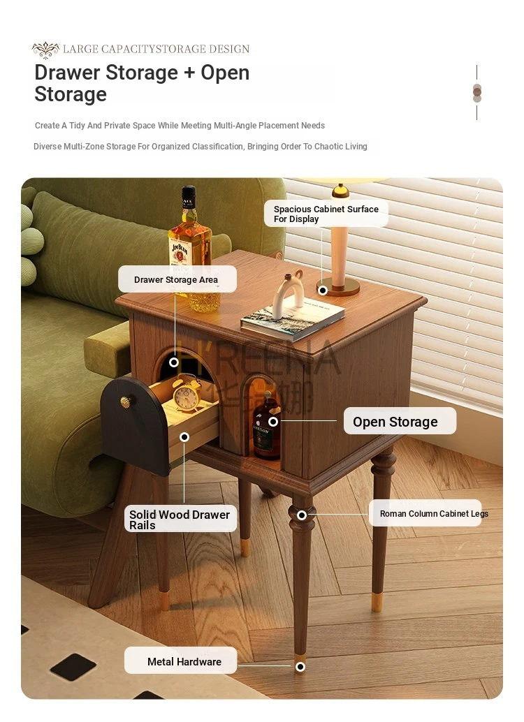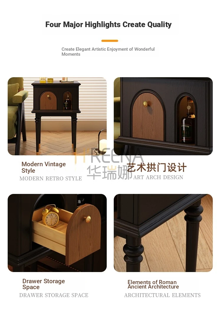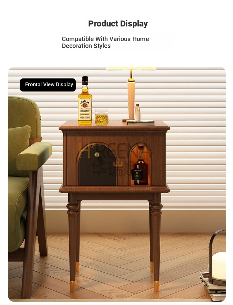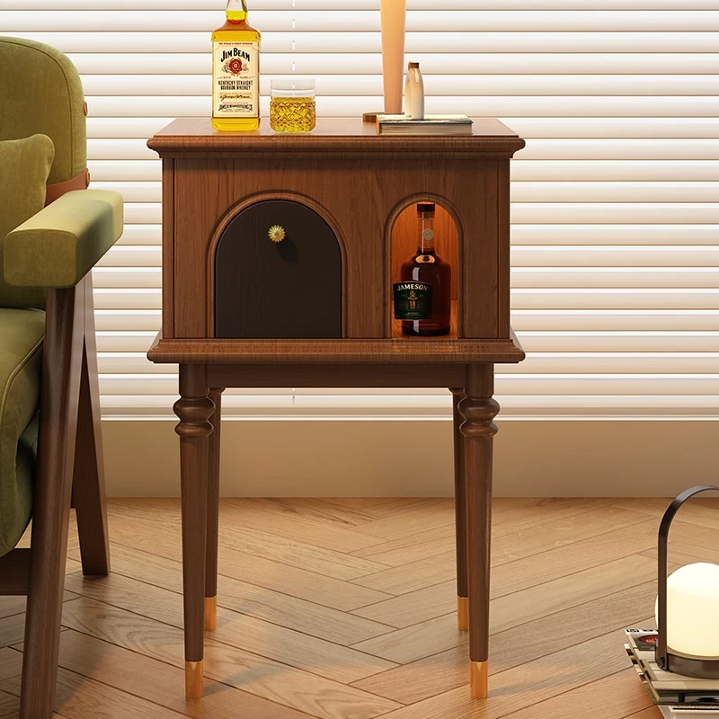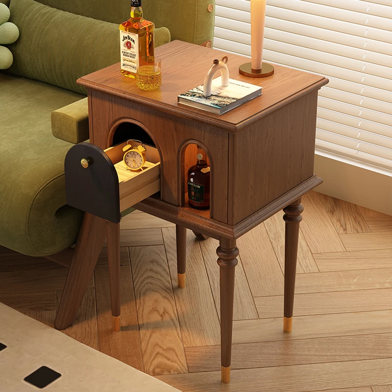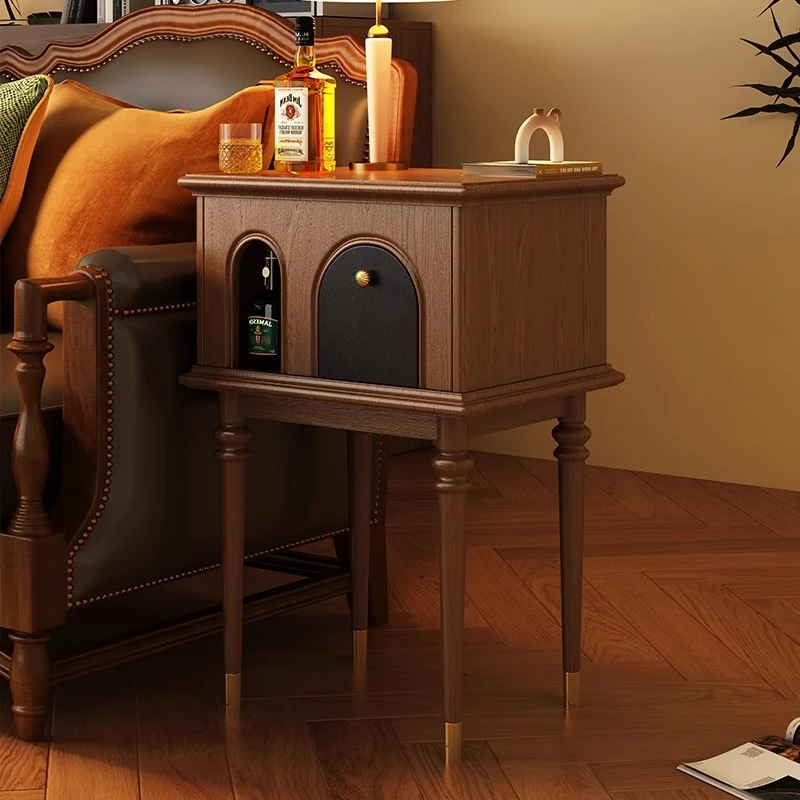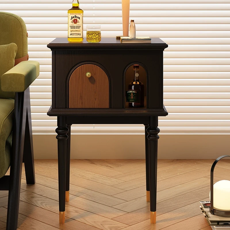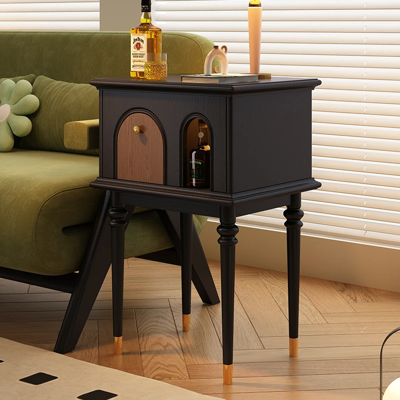 Vintage Style Solid Wood Sofa Side Table - Retro American Black Narrow Cabinet for Small Living Rooms - Stylish Bedside Storage Rack