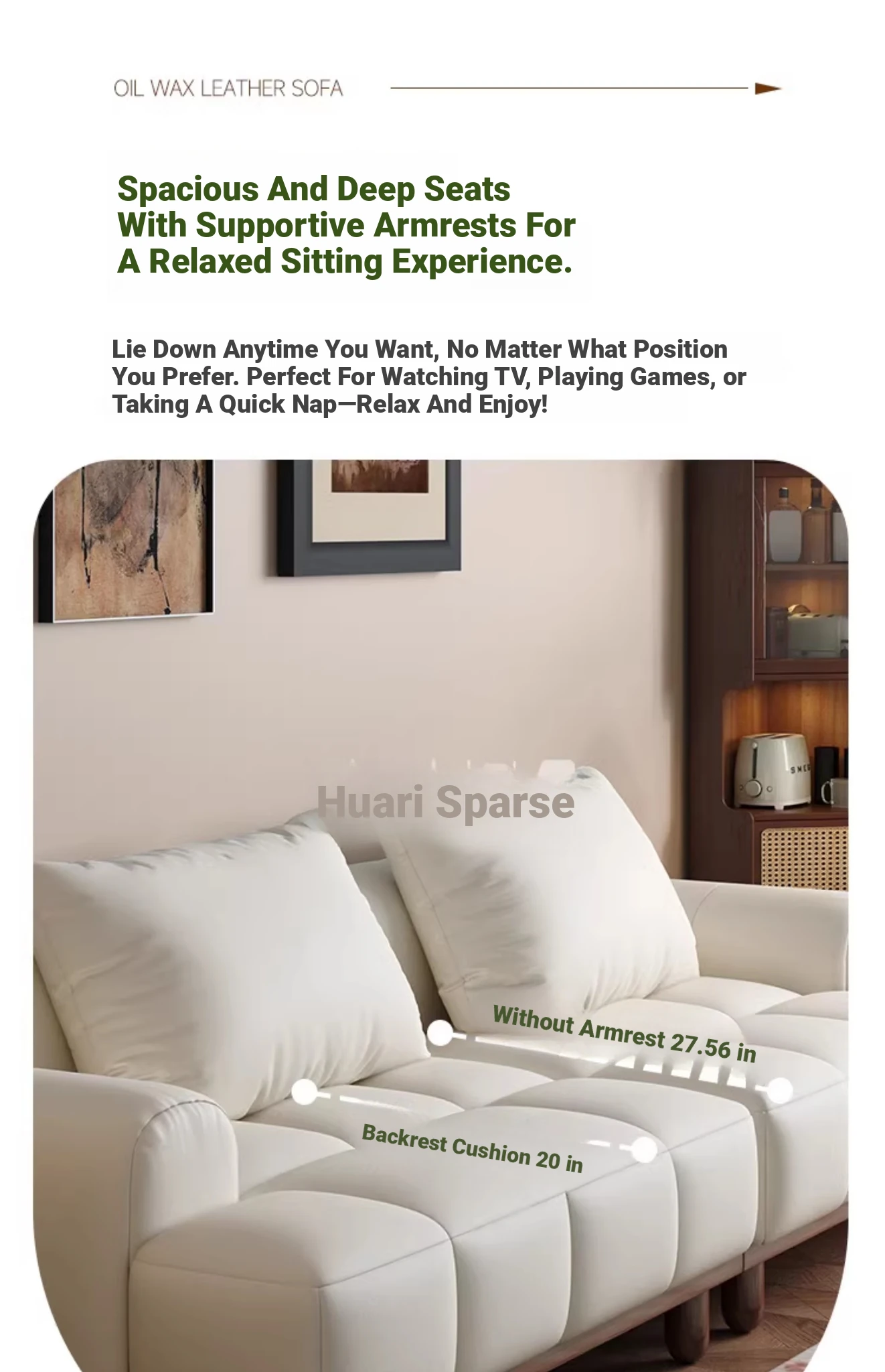 Big three seats 86.61 ins [soft waxy sitting feeling-breathable moisture] natural washed LaTeX + high density rebound cushion