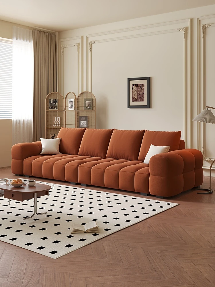 フランス風クリーム猫爪布製リビング用ポフマシュマロソファー、シンプルな小型住宅にぴったり!雲のような直排デザインで、居心地の良い空間を演出します。
